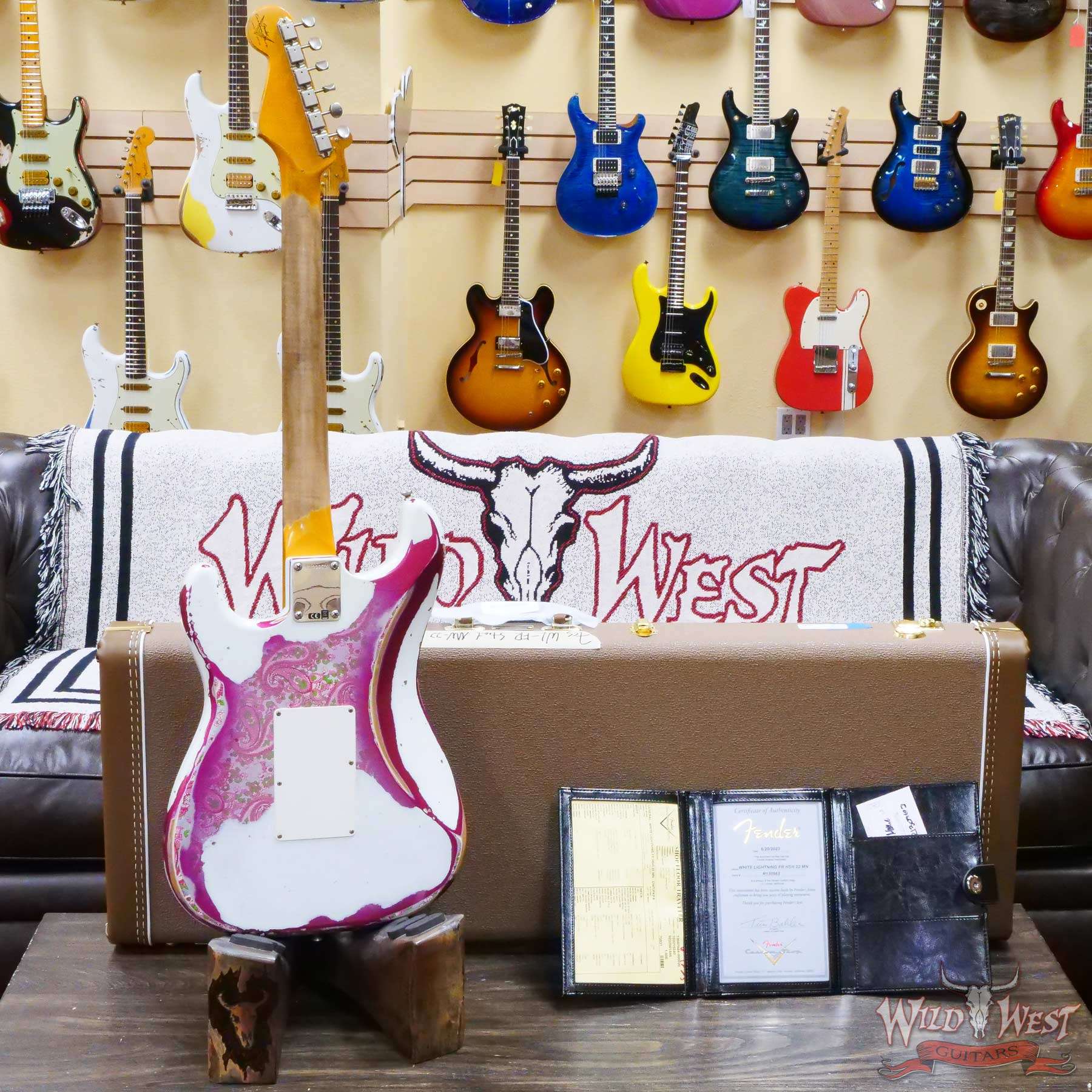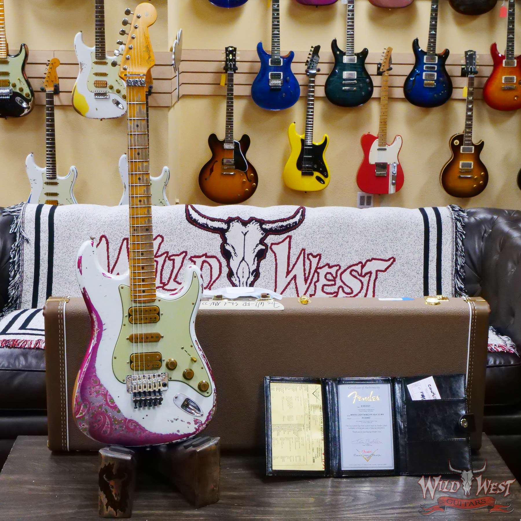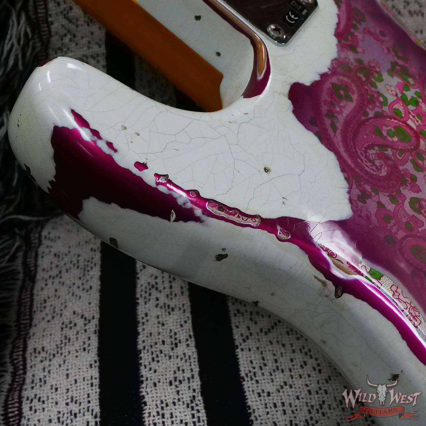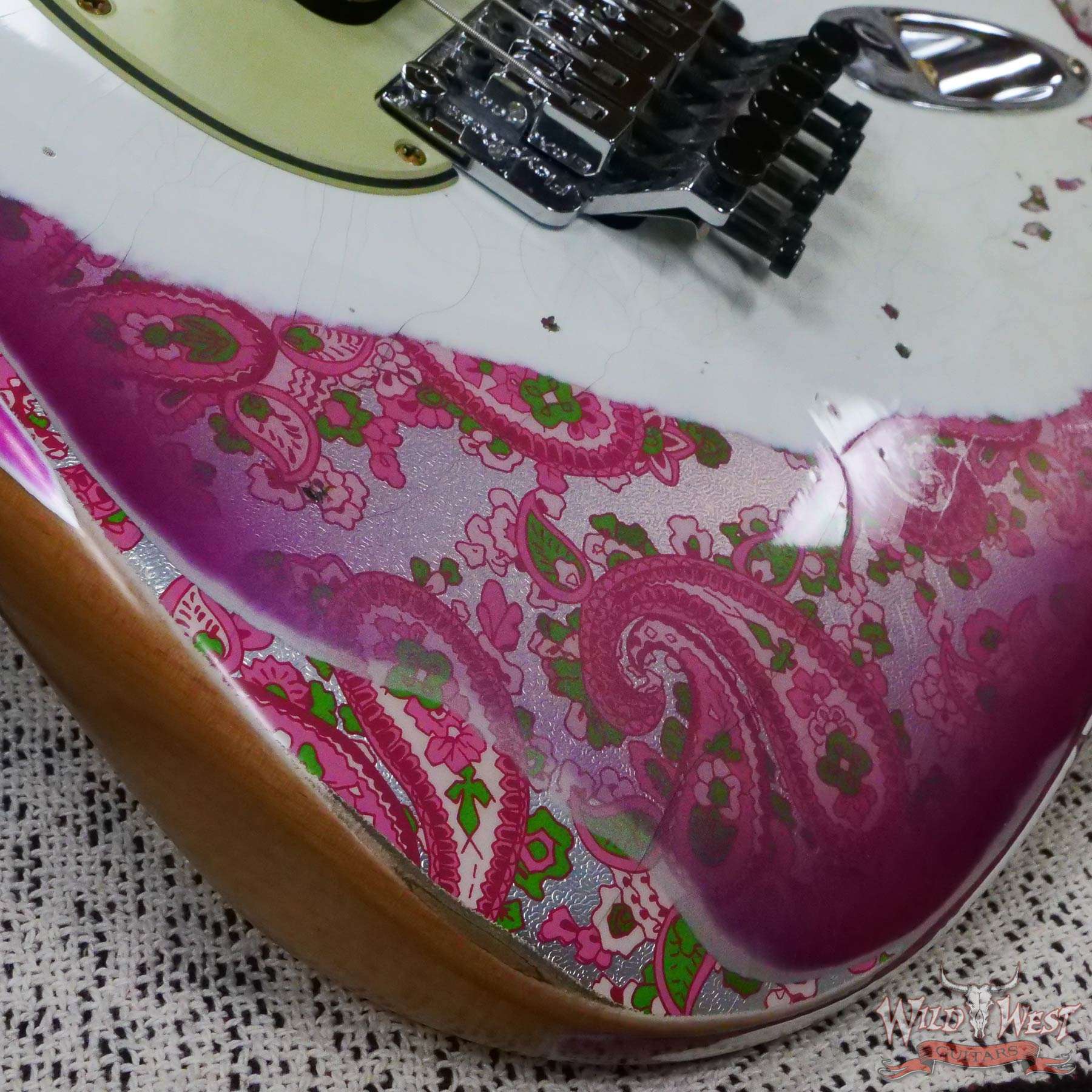 Fender Custom Shop Wild West White Lightning Stratocaster HSH Floyd Rose Maple Board 22 Frets Heavy Relic Pink Paisley