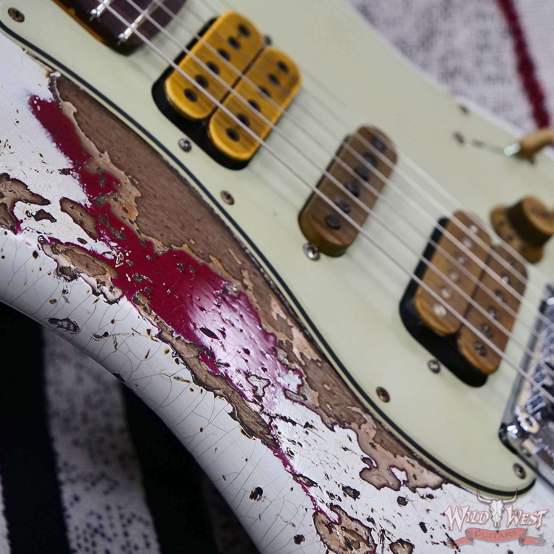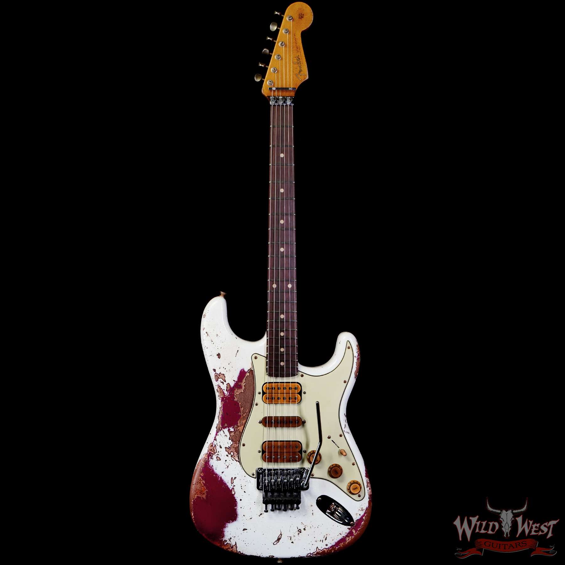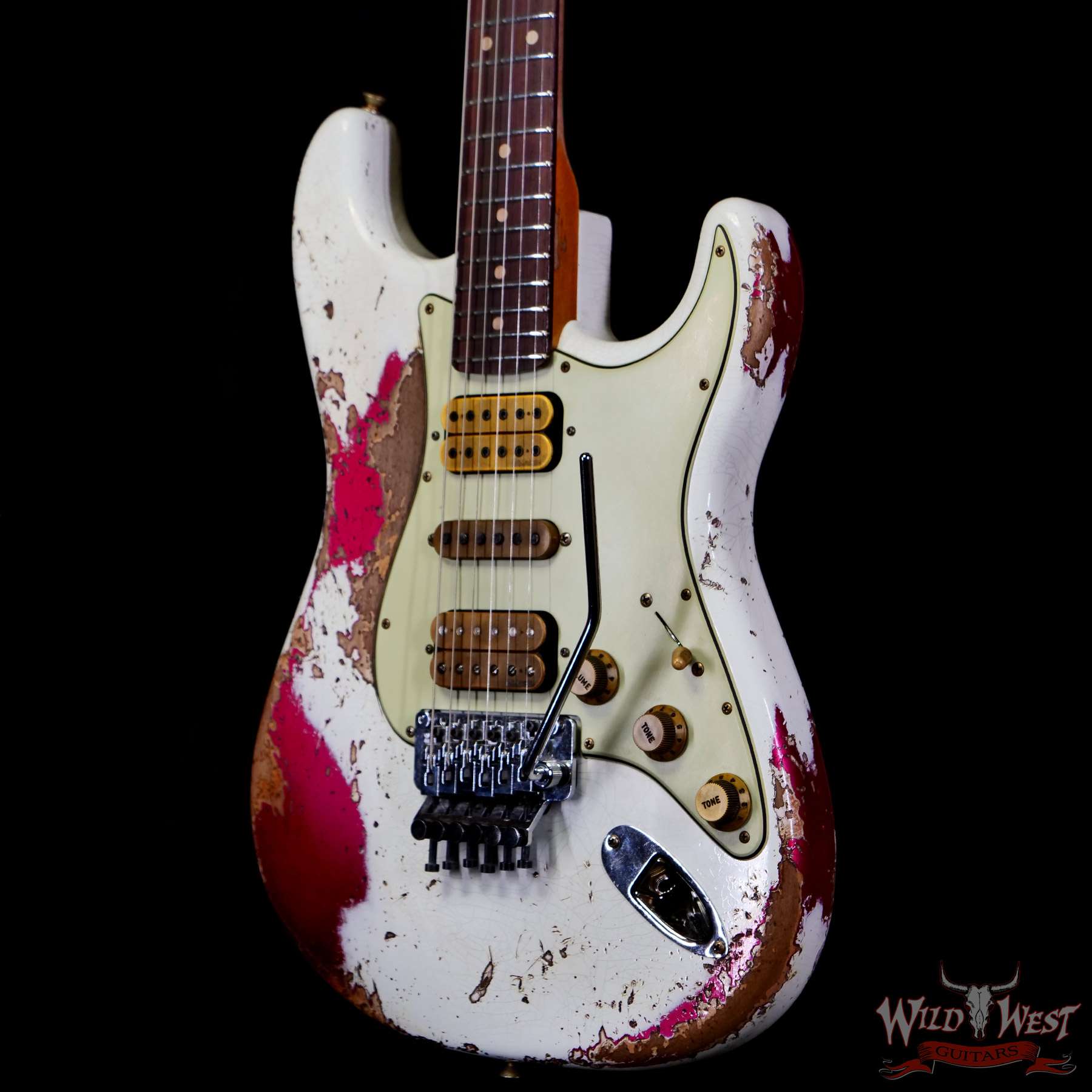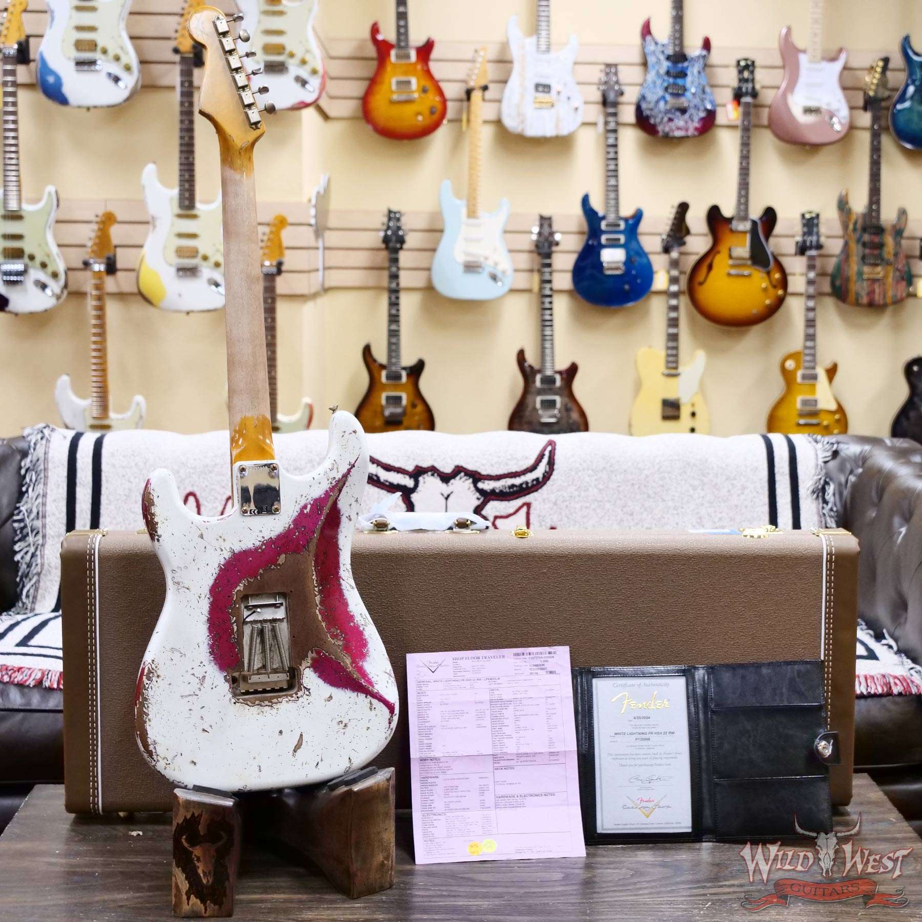 Fender Custom Shop Wild West White Lightning Stratocaster HSH Floyd Rose Rosewood Board 22 Frets Heavy Relic Lipstick Pink Metallic 8.20 LBS
