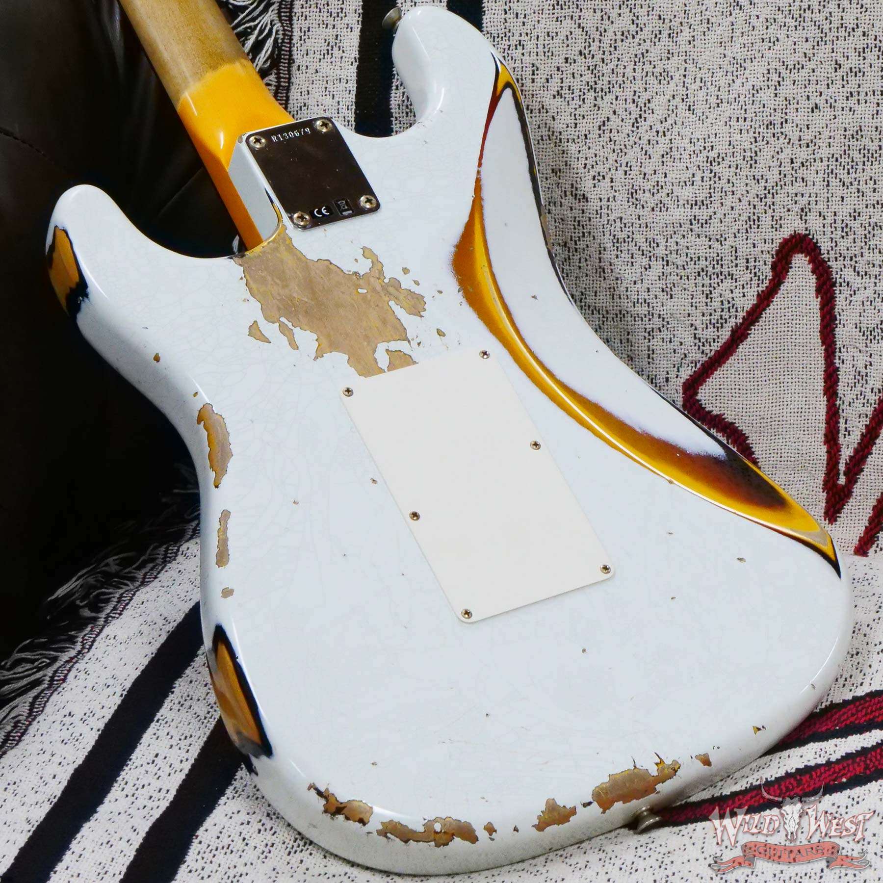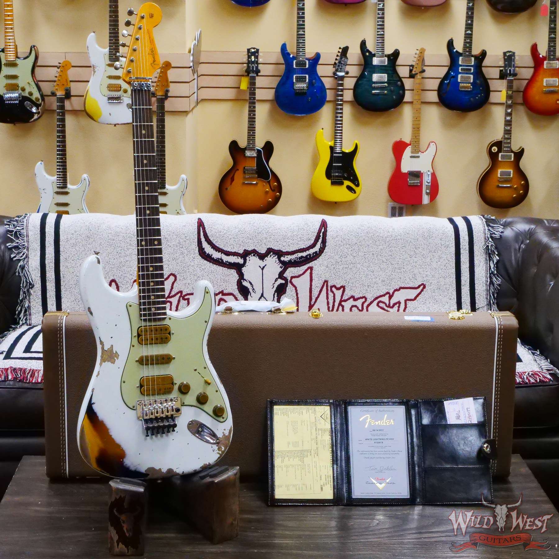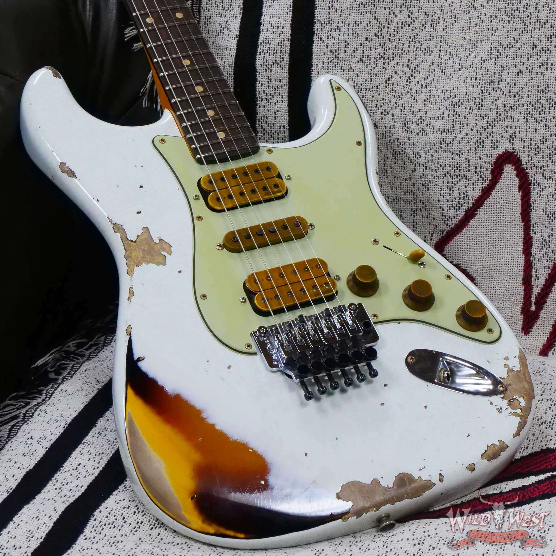 Fender Custom Shop Wild West White Lightning Stratocaster HSH Floyd Rose Rosewood Board Heavy Relic Olympic White over 3 Tone Sunburst