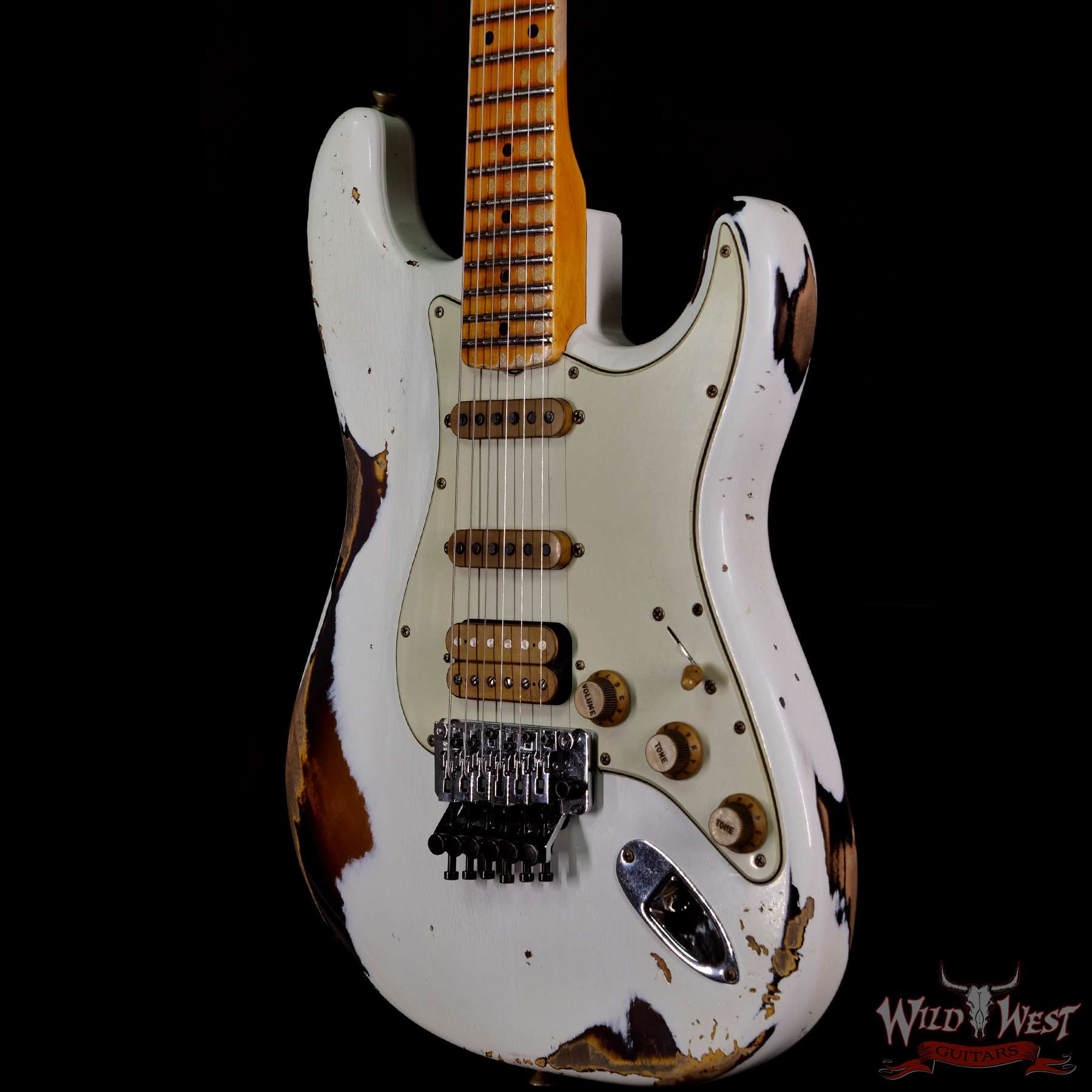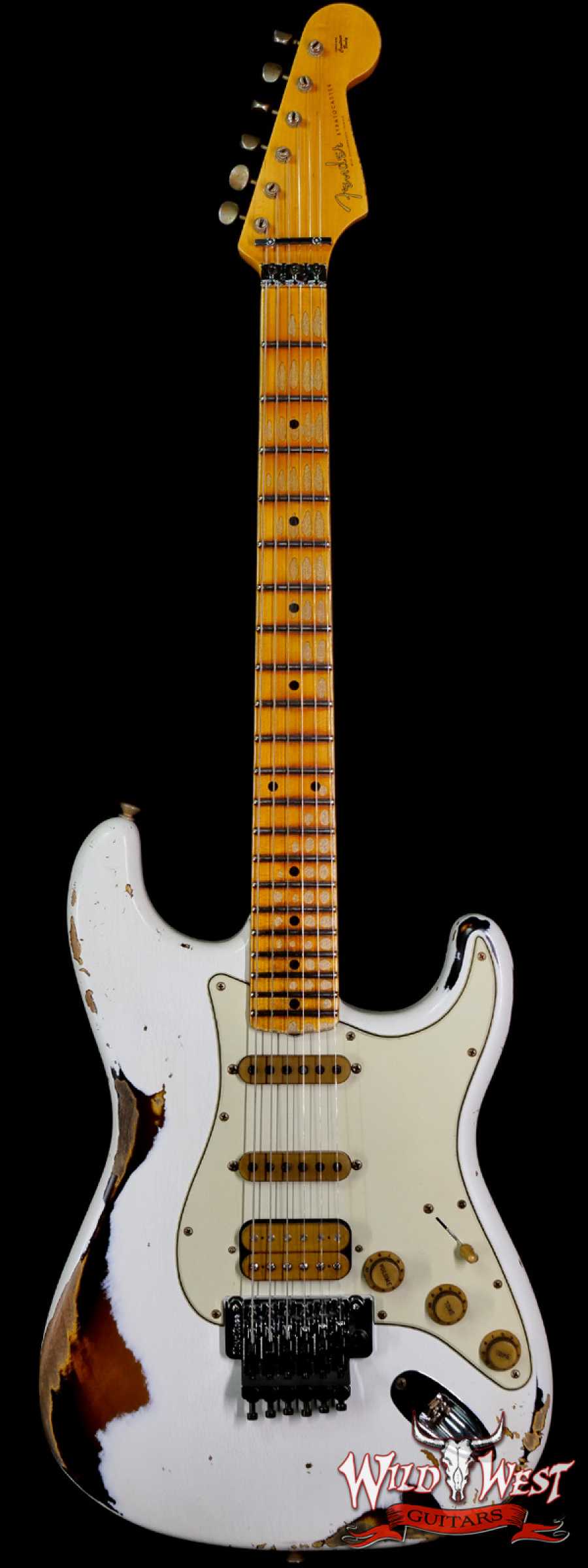 Fender Custom Shop Wild West White Lightning Stratocaster HSS Floyd Rose Maple Board 21 Frets Heavy Relic 2 Tone Sunburst
