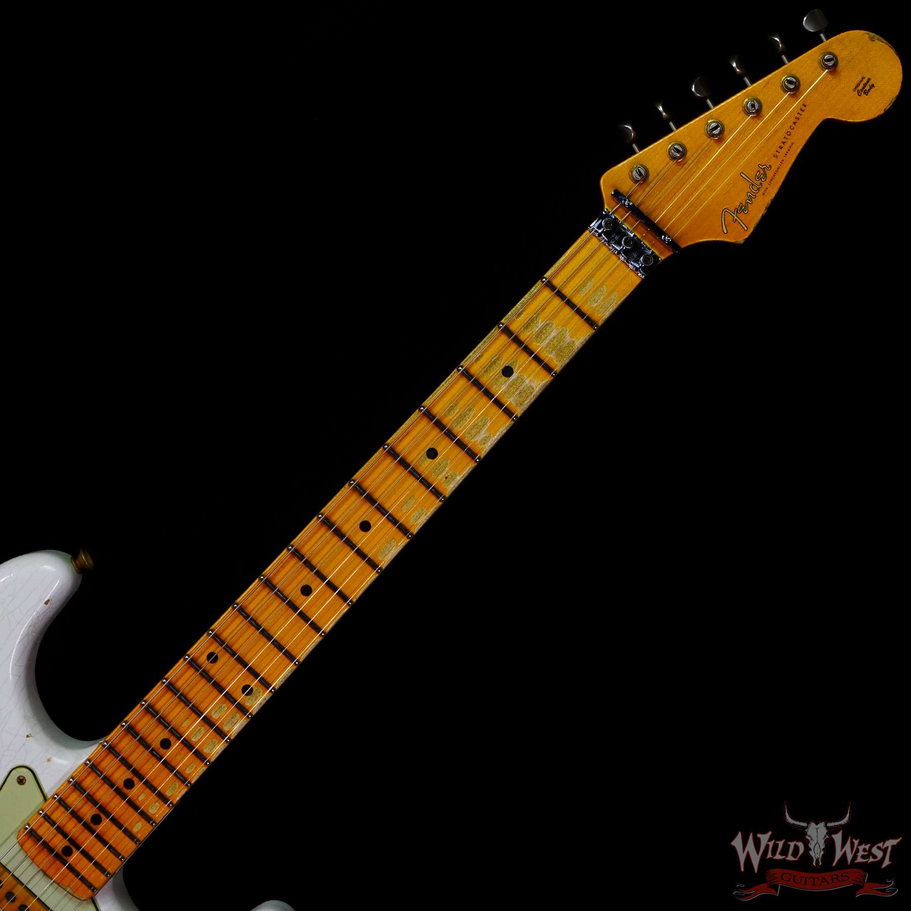 White Lightning(Black Lightning) Strikes The Dusty Plains of The Wild West! White Lightning rips all day n’ rocks all night with traditional Fender tremolo system firepower. The molten Wild West Fender Custom Shop Exclusive Heavy Relic Dirty Neck monster rules the rock n’ roll wastelands, packing a pair of Fat 50s relic single coils and a killer DiMarzio Tone Zone humbucker in the bridge position.