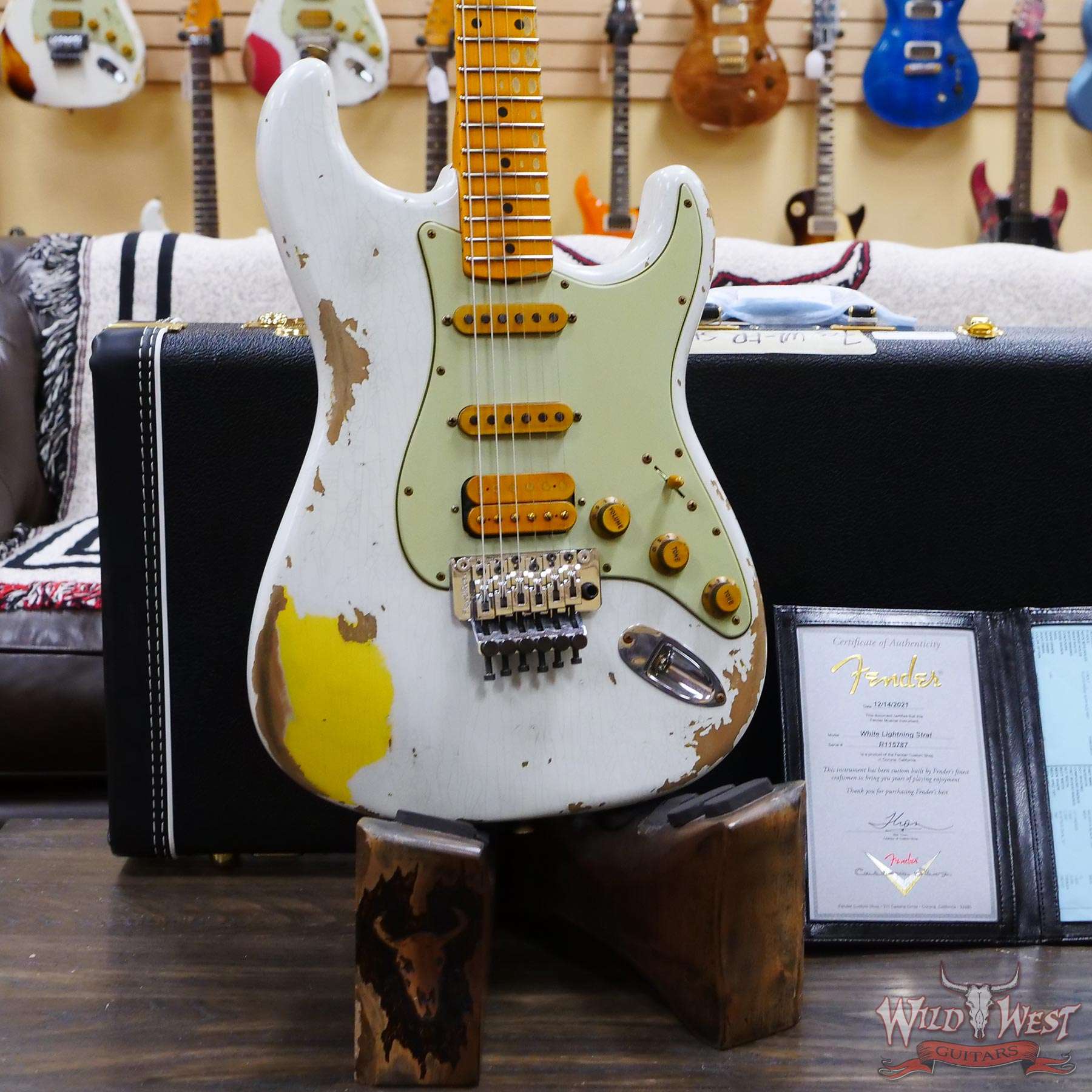 Fender Custom Shop Wild West White Lightning Stratocaster HSS Floyd Rose Maple Board 21 Frets Heavy Relic Graffiti Yellow
