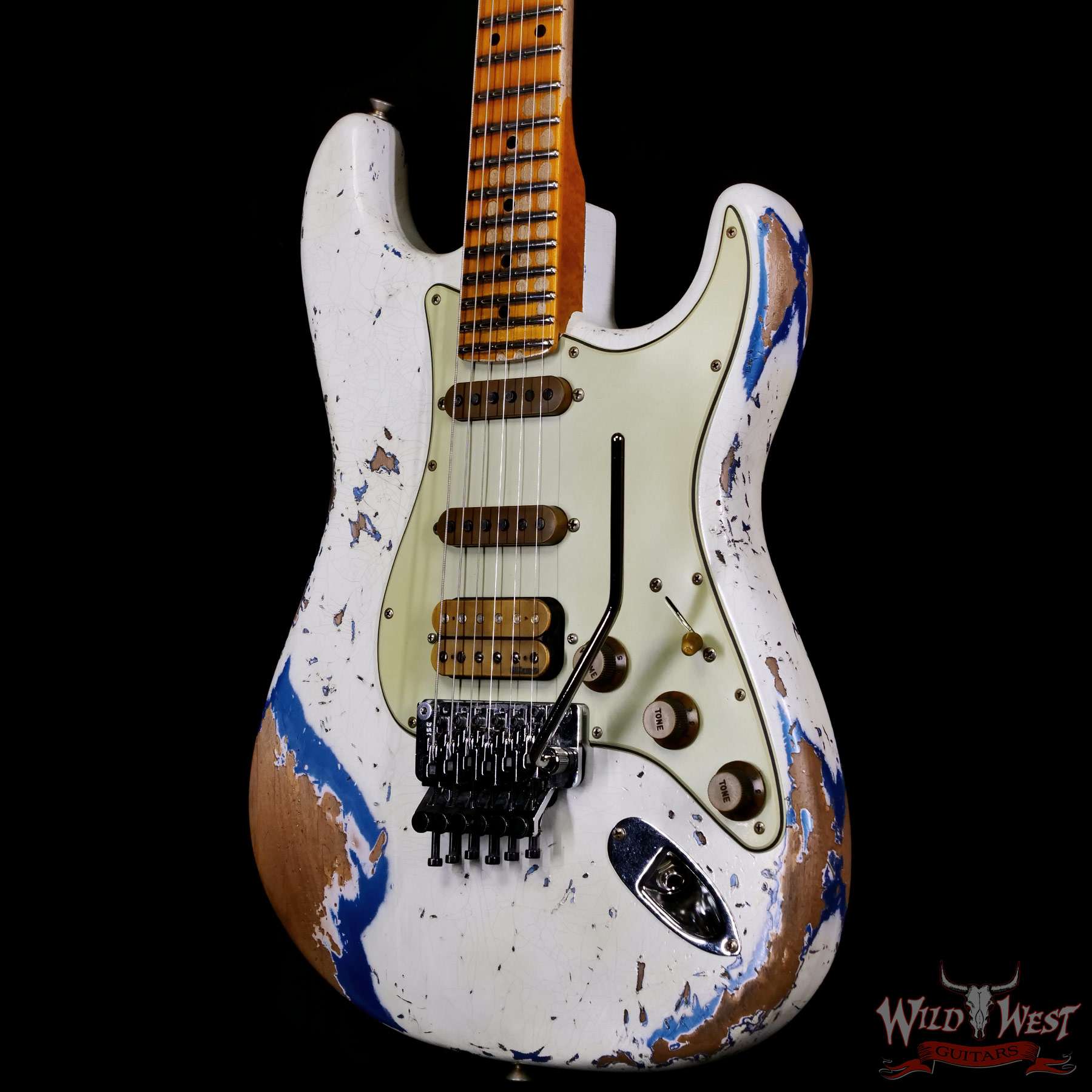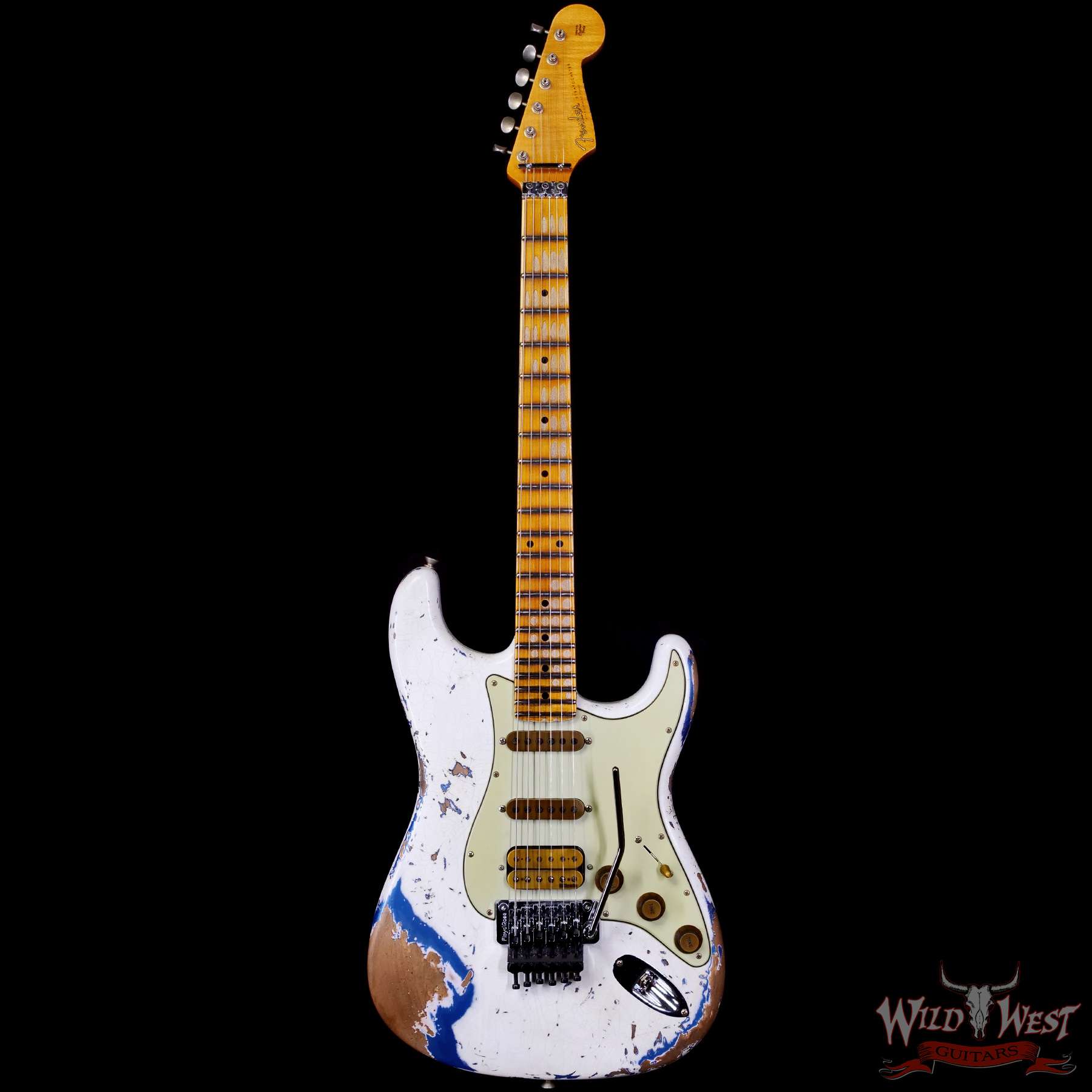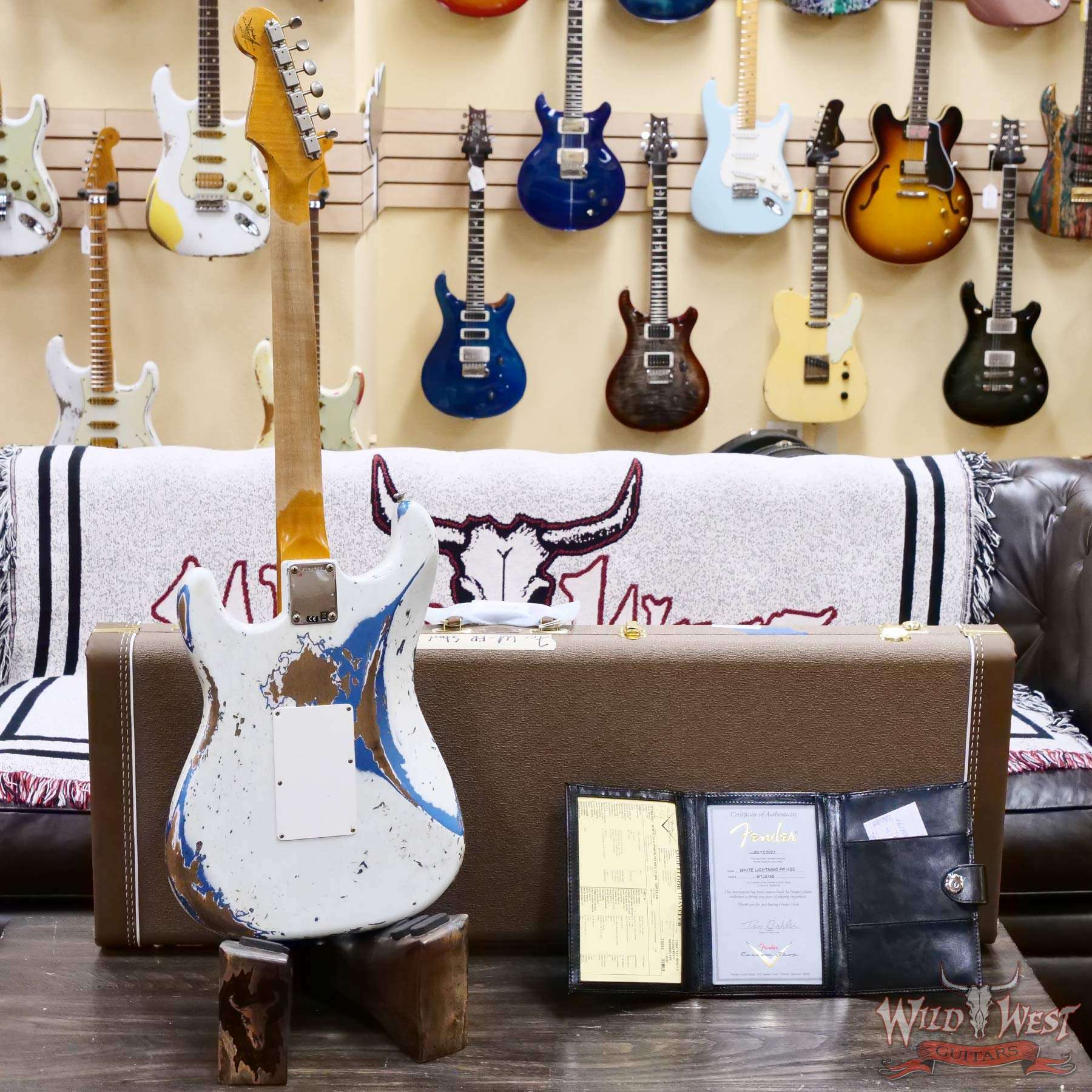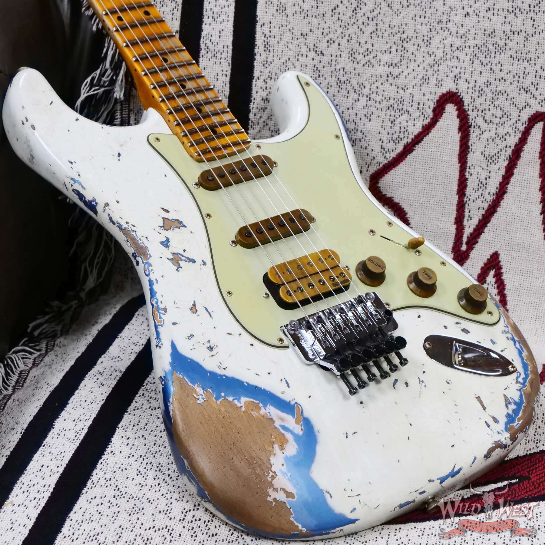 Fender Custom Shop Wild West White Lightning Stratocaster HSS Floyd Rose Maple Board 22 Frets Heavy Relic Lake Placid Blue 8.05 LBS