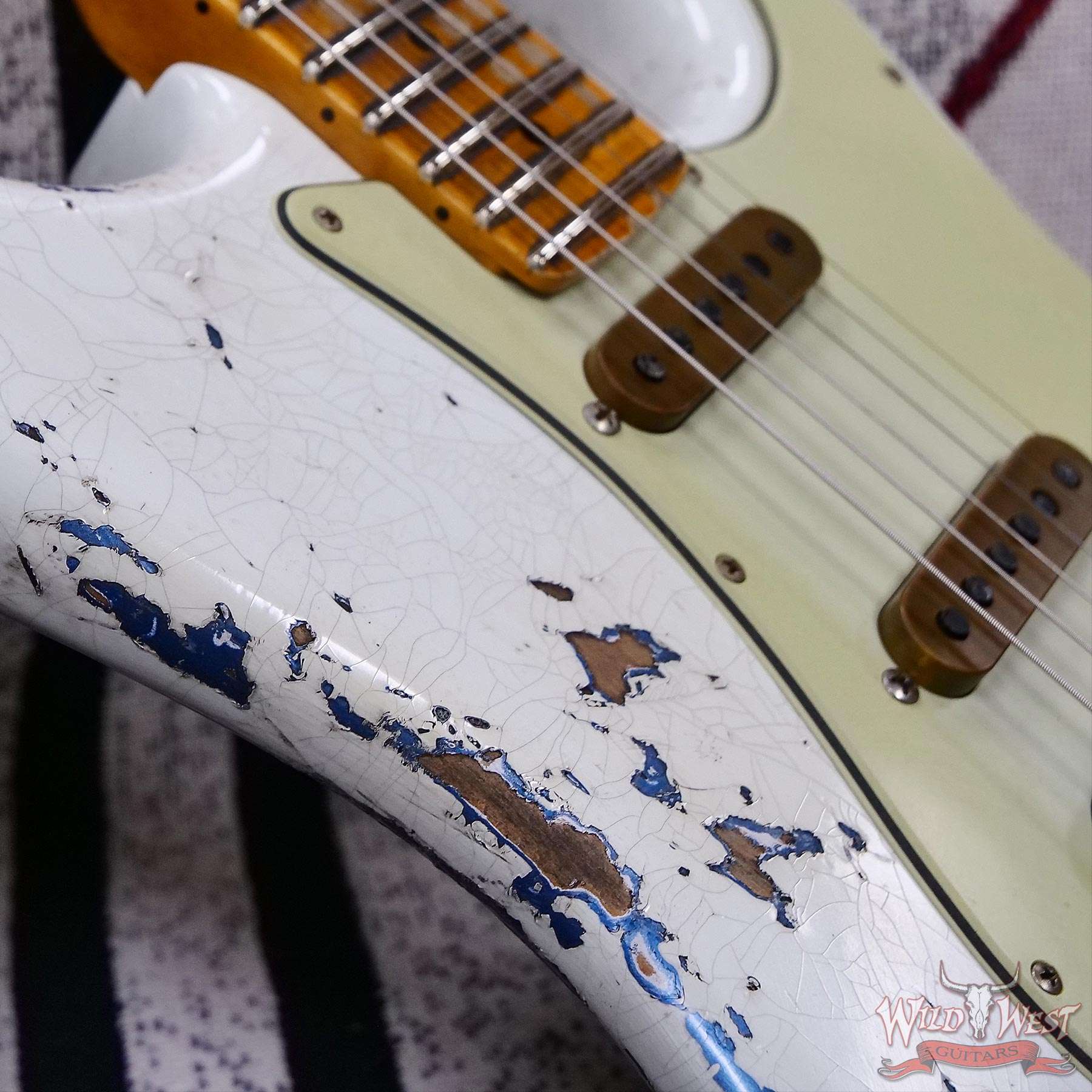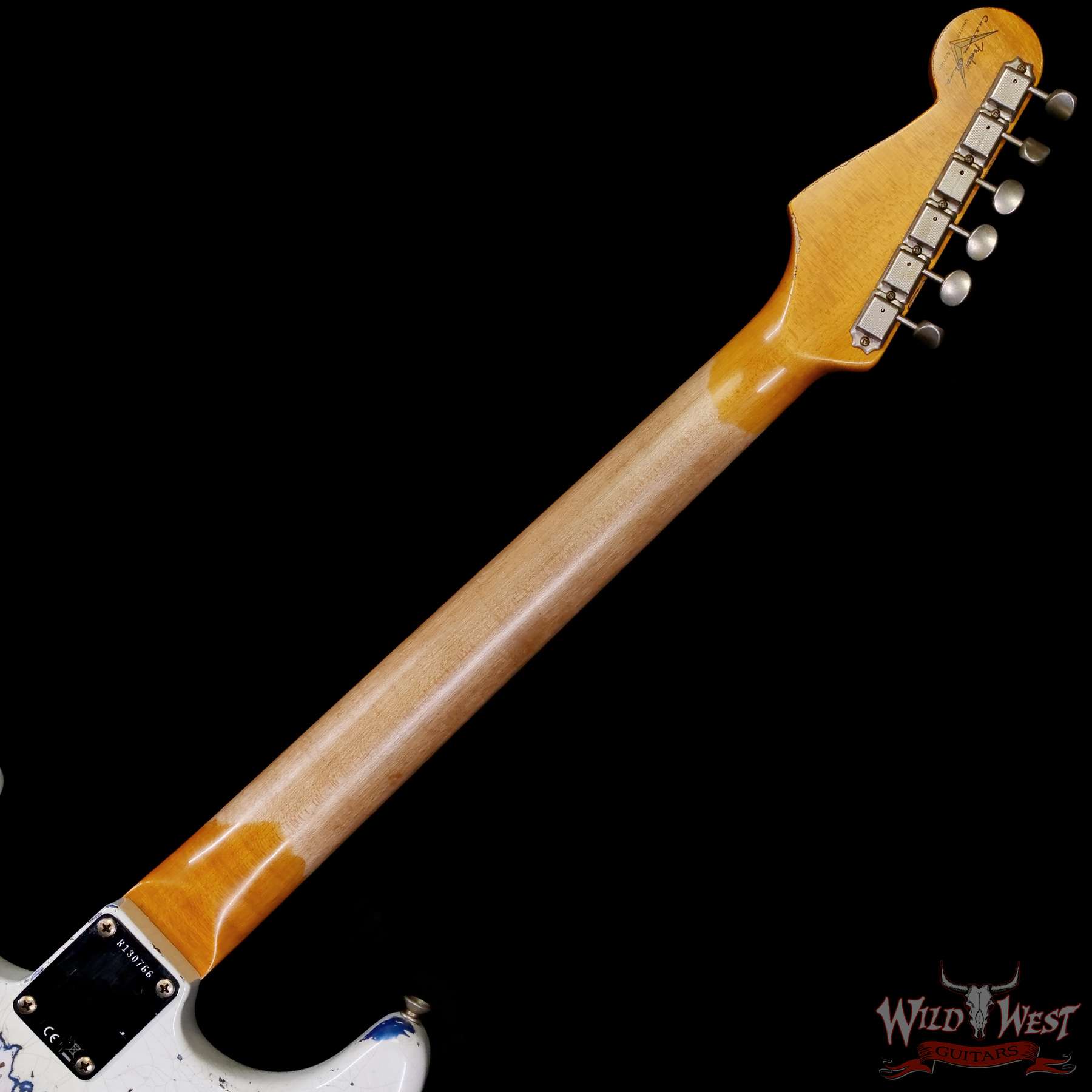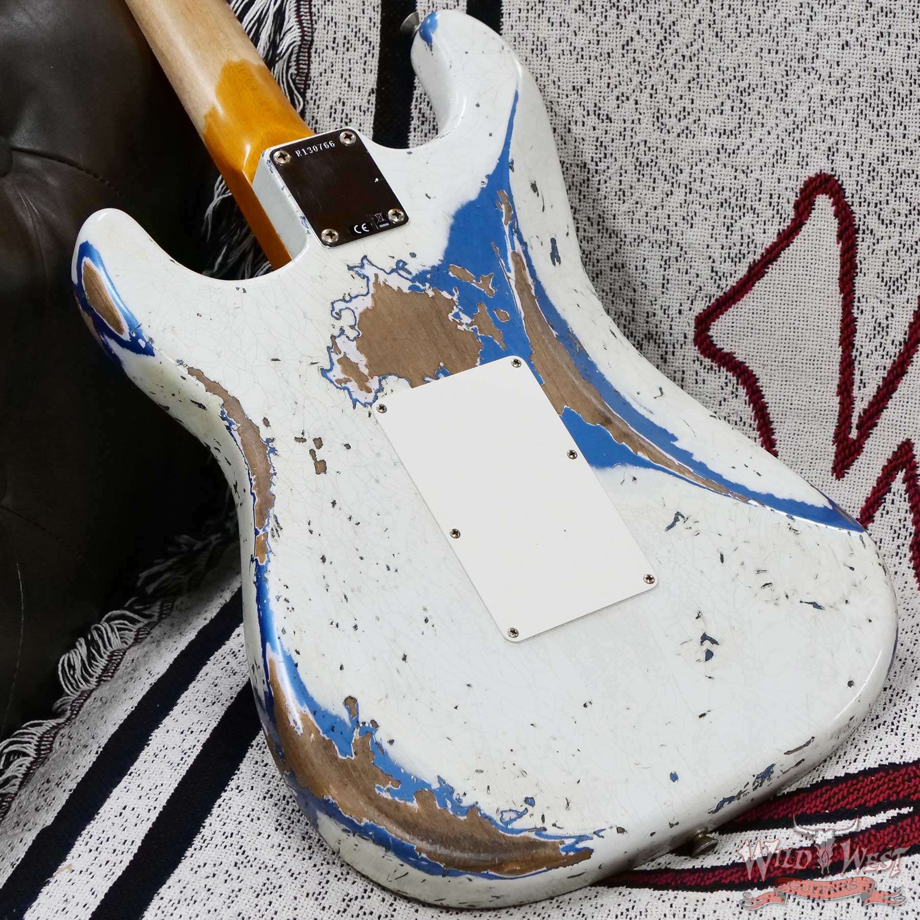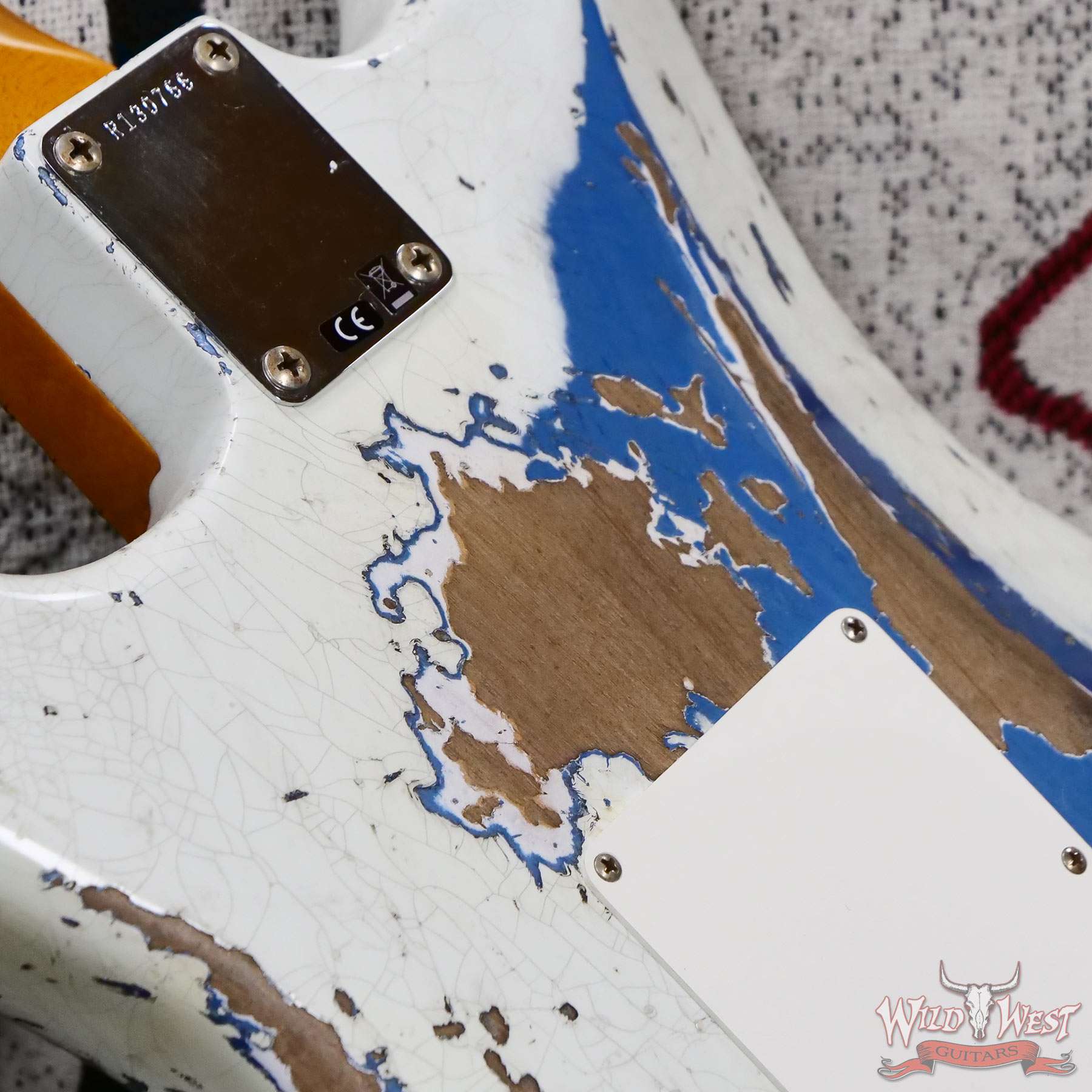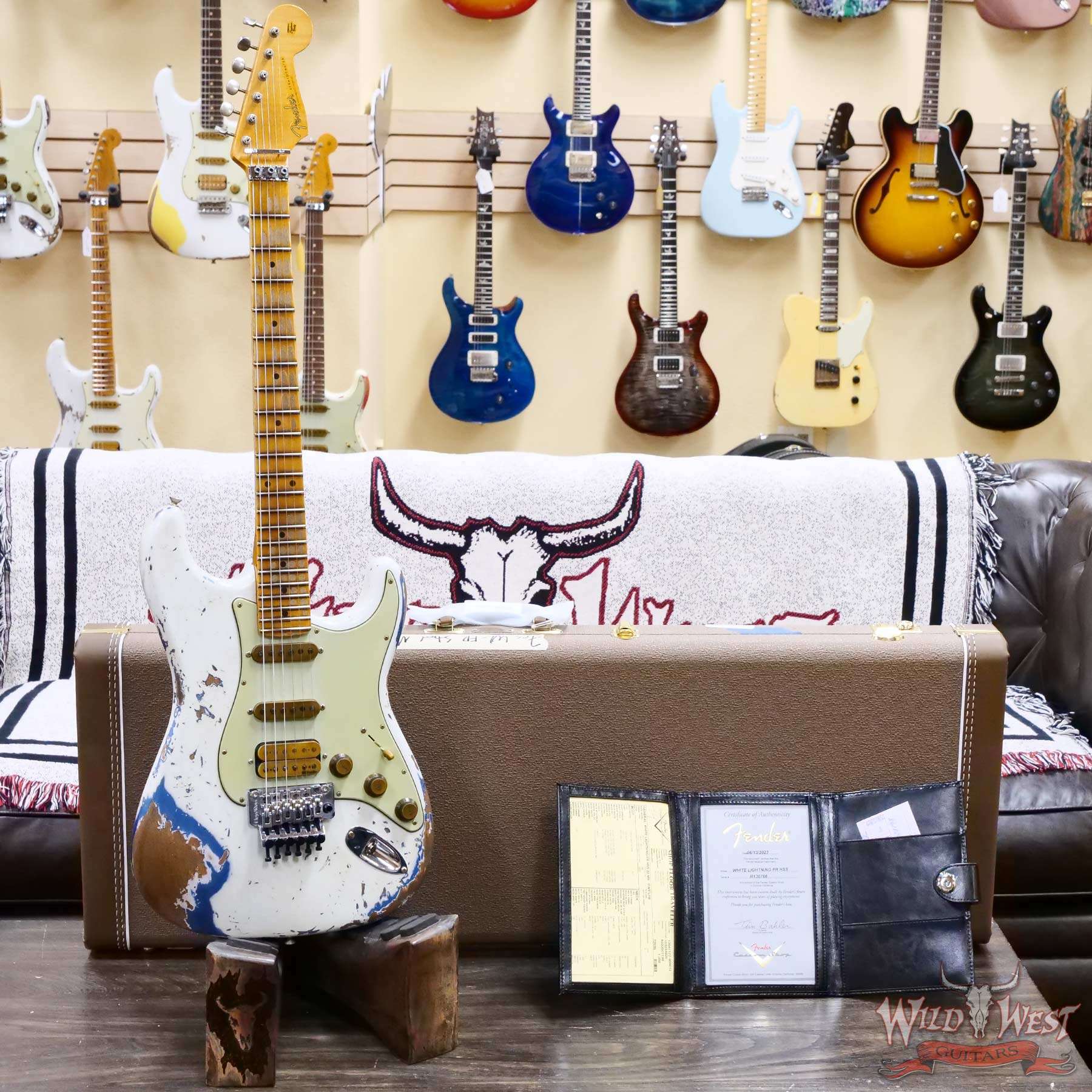 Fender Custom Shop Wild West White Lightning Stratocaster HSS Floyd Rose Maple Board 22 Frets Heavy Relic Lake Placid Blue 8.05 LBS