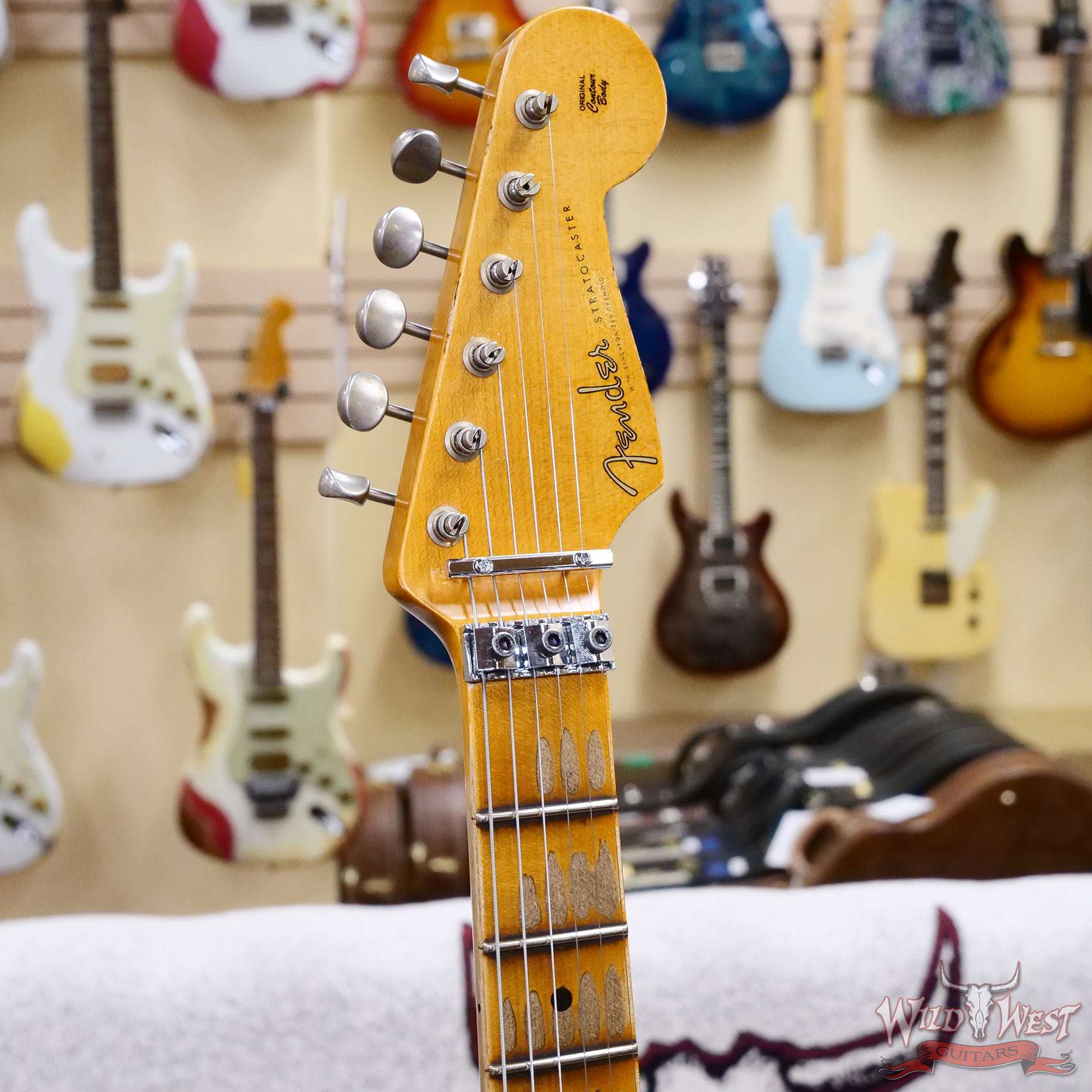 White Lightning(Black Lightning) Strikes The Dusty Plains of The Wild West! White Lightning rips all day n’ rocks all night with traditional Fender tremolo system firepower. The molten Wild West Fender Custom Shop Exclusive Heavy Relic Dirty Neck monster rules the rock n’ roll wastelands, packing a pair of Fat 50s relic single coils and a killer DiMarzio Tone Zone humbucker in the bridge position.