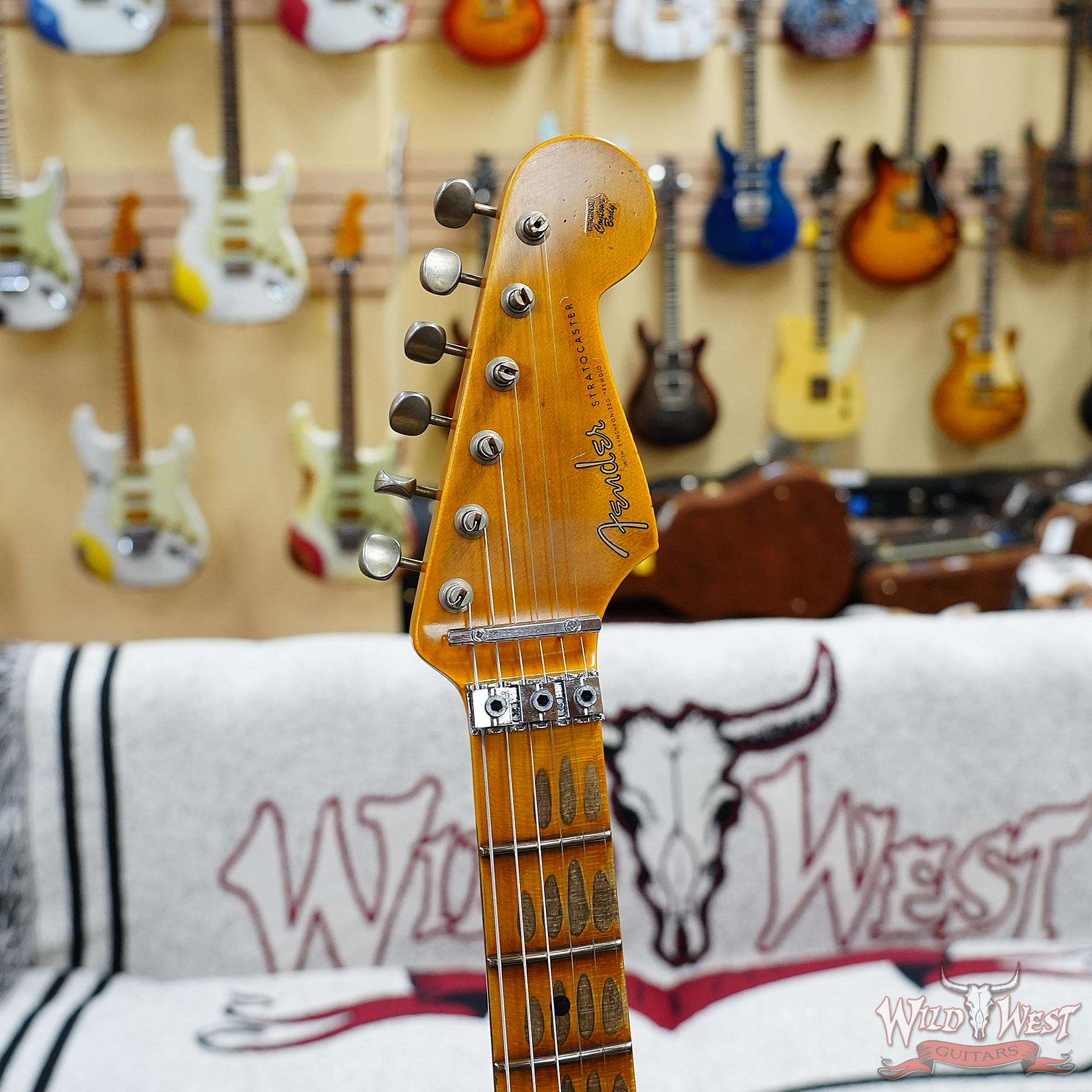White Lightning(Black Lightning) Strikes The Dusty Plains of The Wild West! White Lightning rips all day n’ rocks all night with traditional Fender tremolo system firepower. The molten Wild West Fender Custom Shop Exclusive Heavy Relic Dirty Neck monster rules the rock n’ roll wastelands, packing a pair of Fat 50s relic single coils and a killer DiMarzio Tone Zone humbucker in the bridge position.
