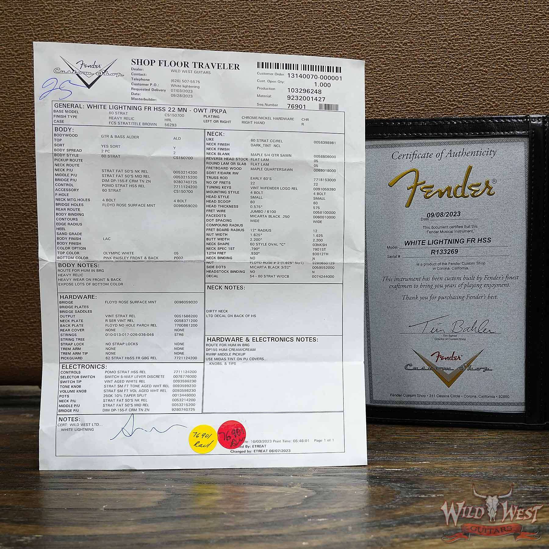 Fender Custom Shop Wild West White Lightning Stratocaster HSS Floyd Rose Maple Board 22 Frets Heavy Relic Pink Paisley 7.90 LBS