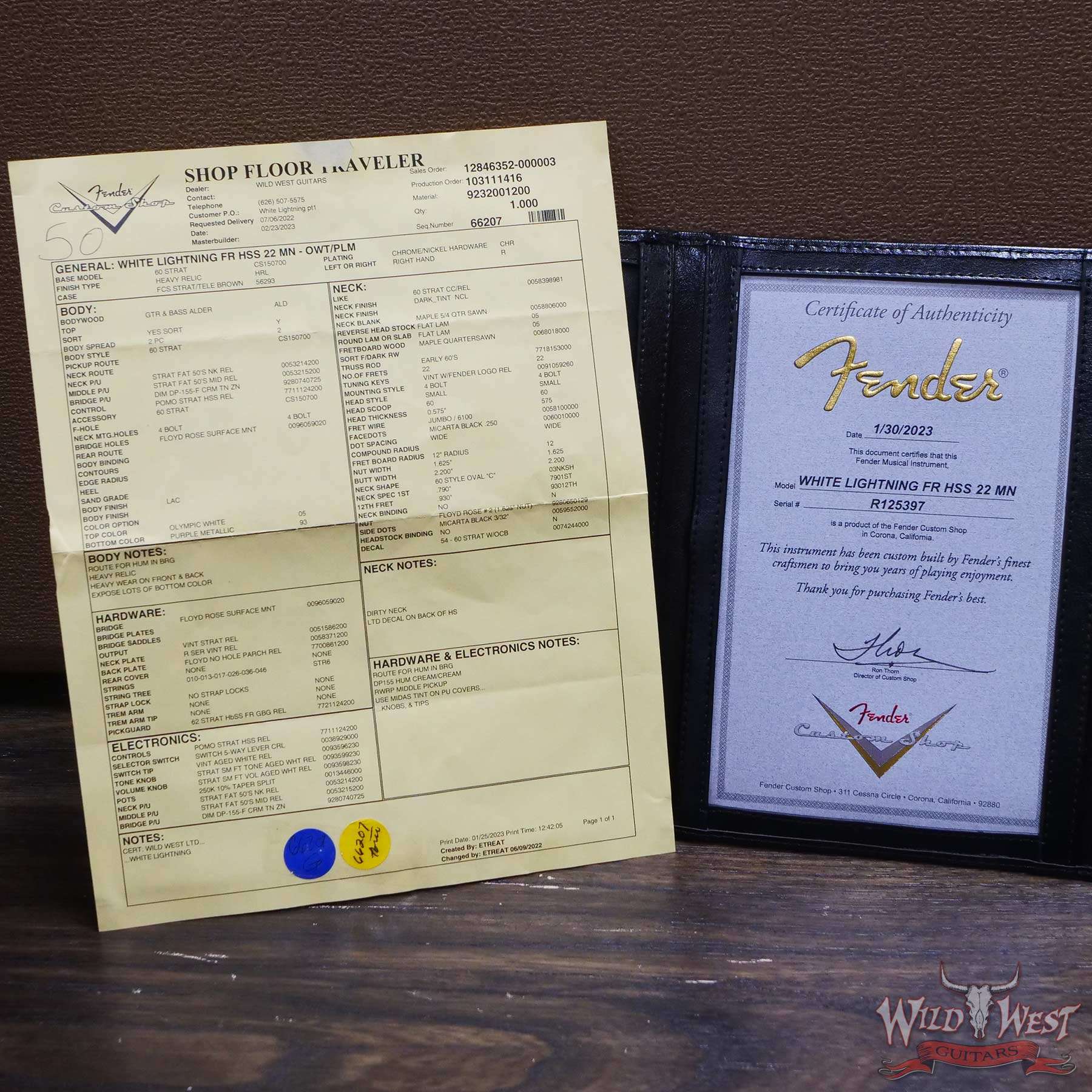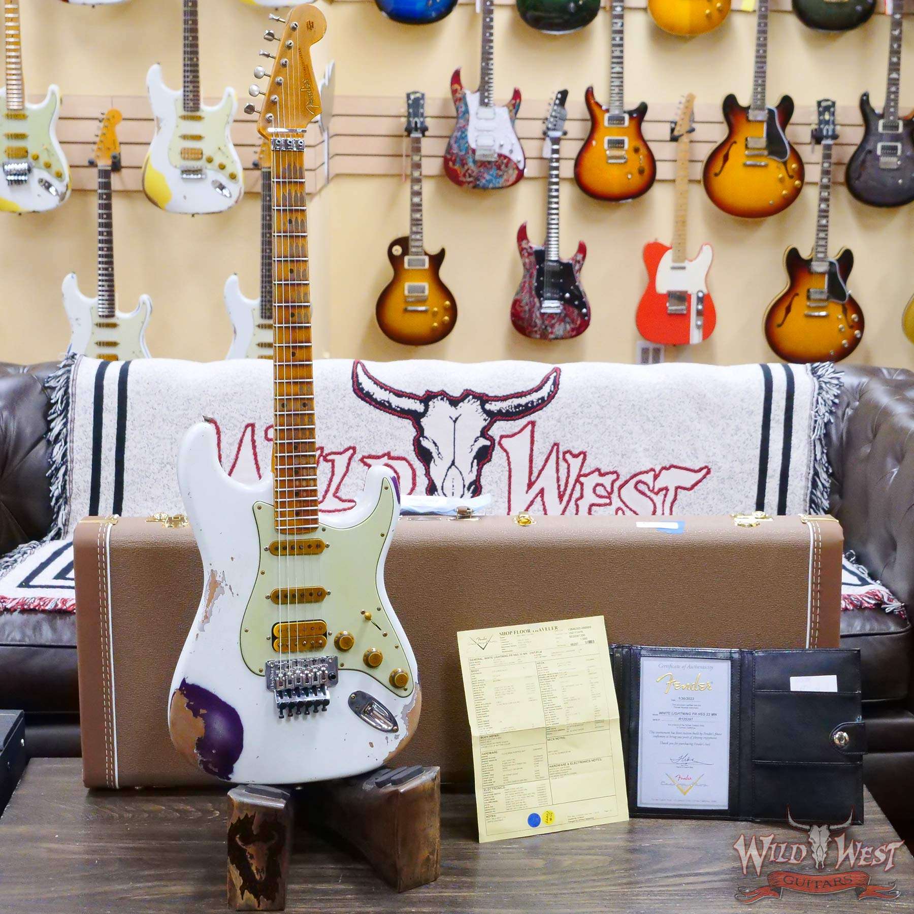 Fender Custom Shop Wild West White Lightning Stratocaster HSS Floyd Rose Maple Board 22 Frets Heavy Relic Purple Metallic