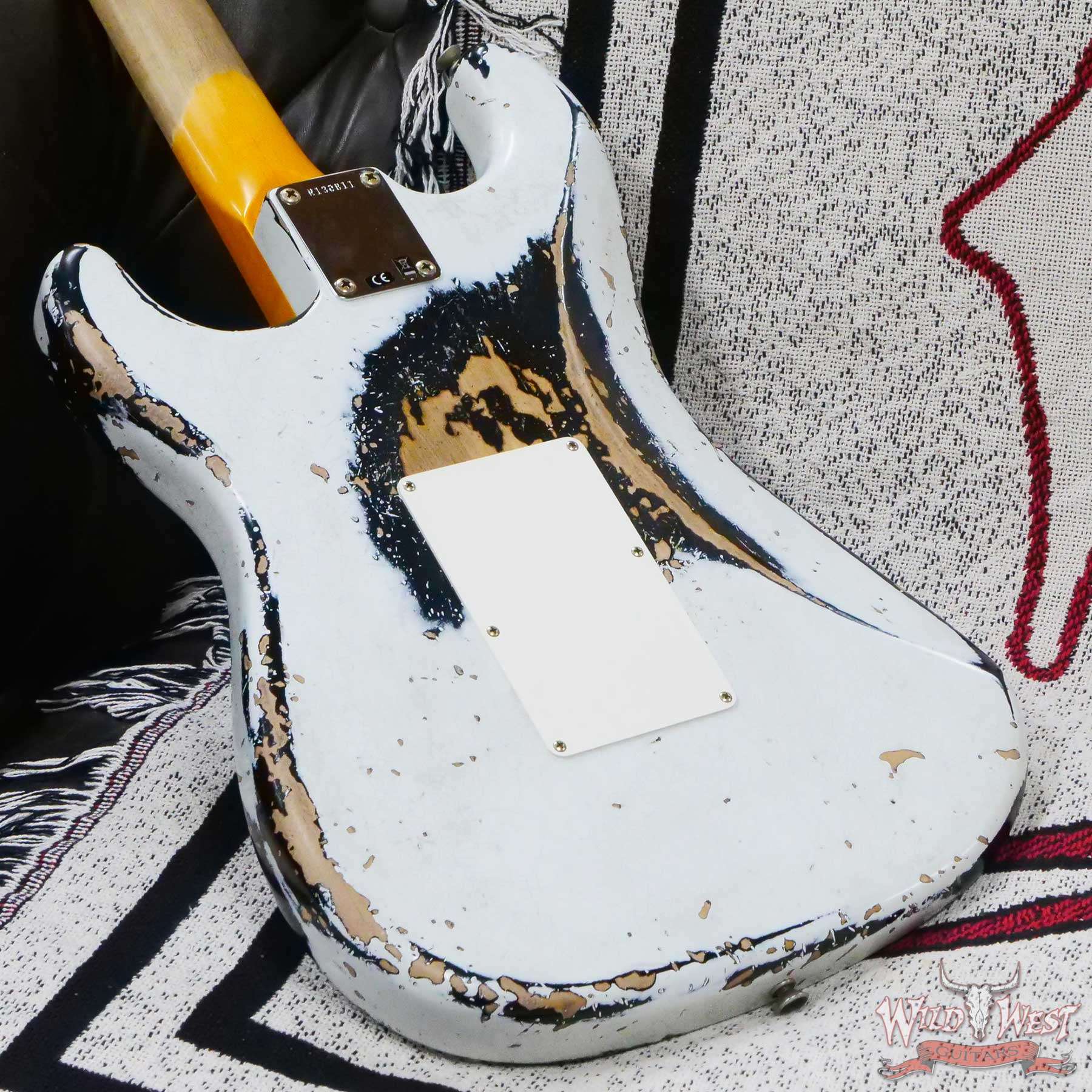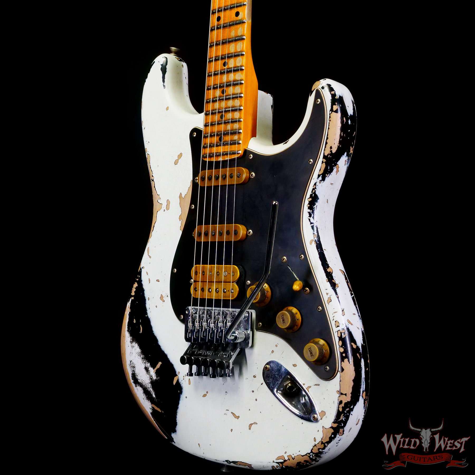 Fender Custom Shop Wild West White Lightning Stratocaster HSS Floyd Rose Maple Fingerboard Black Pickguard Heavy Relic Olympic White over Black