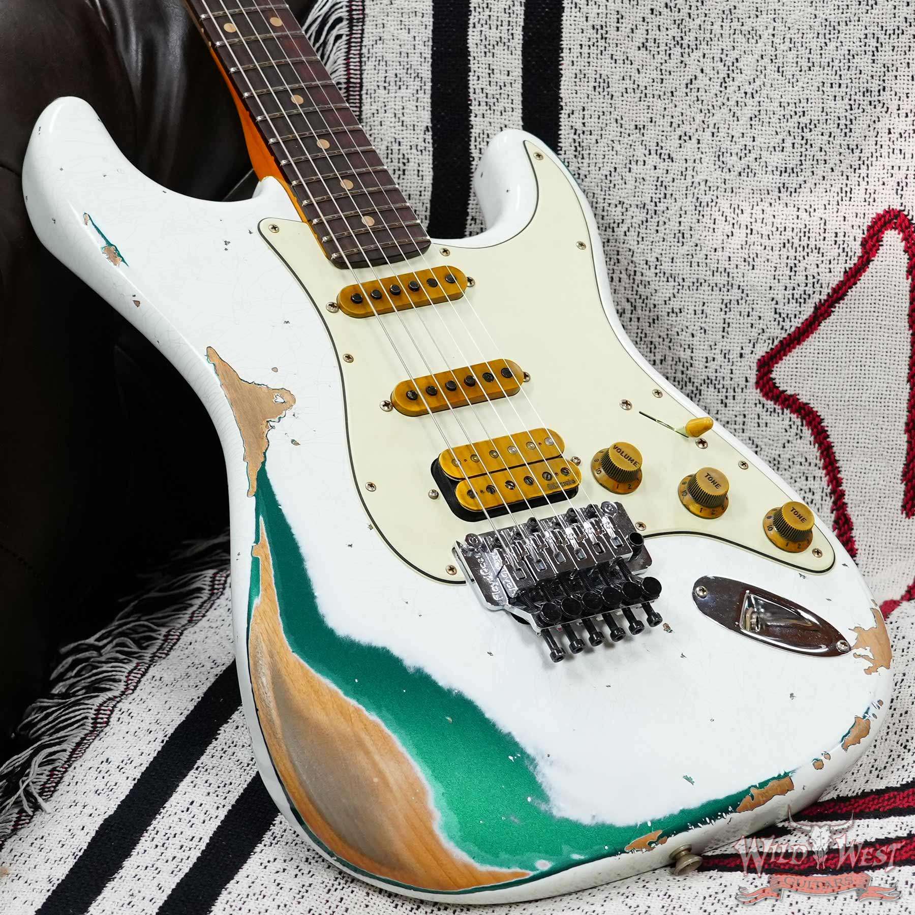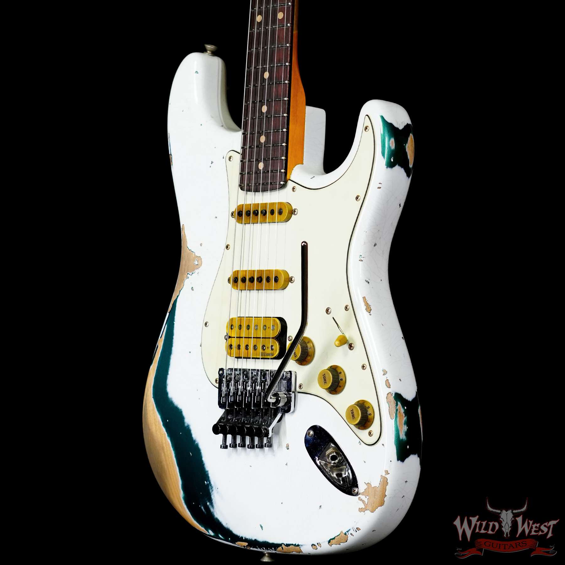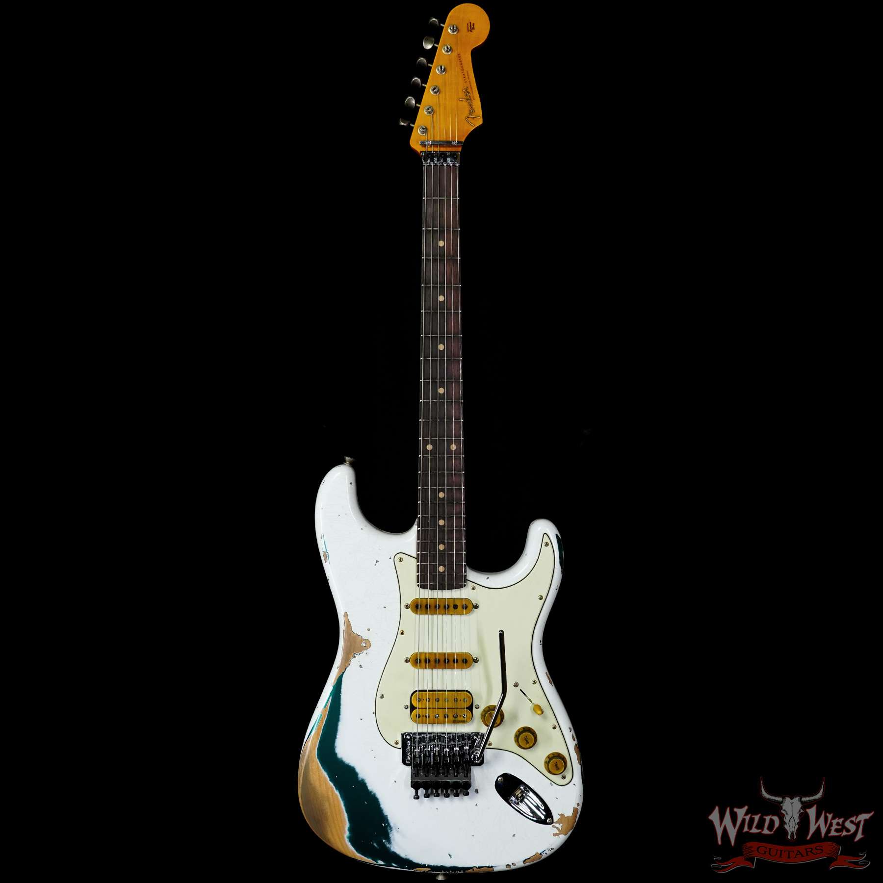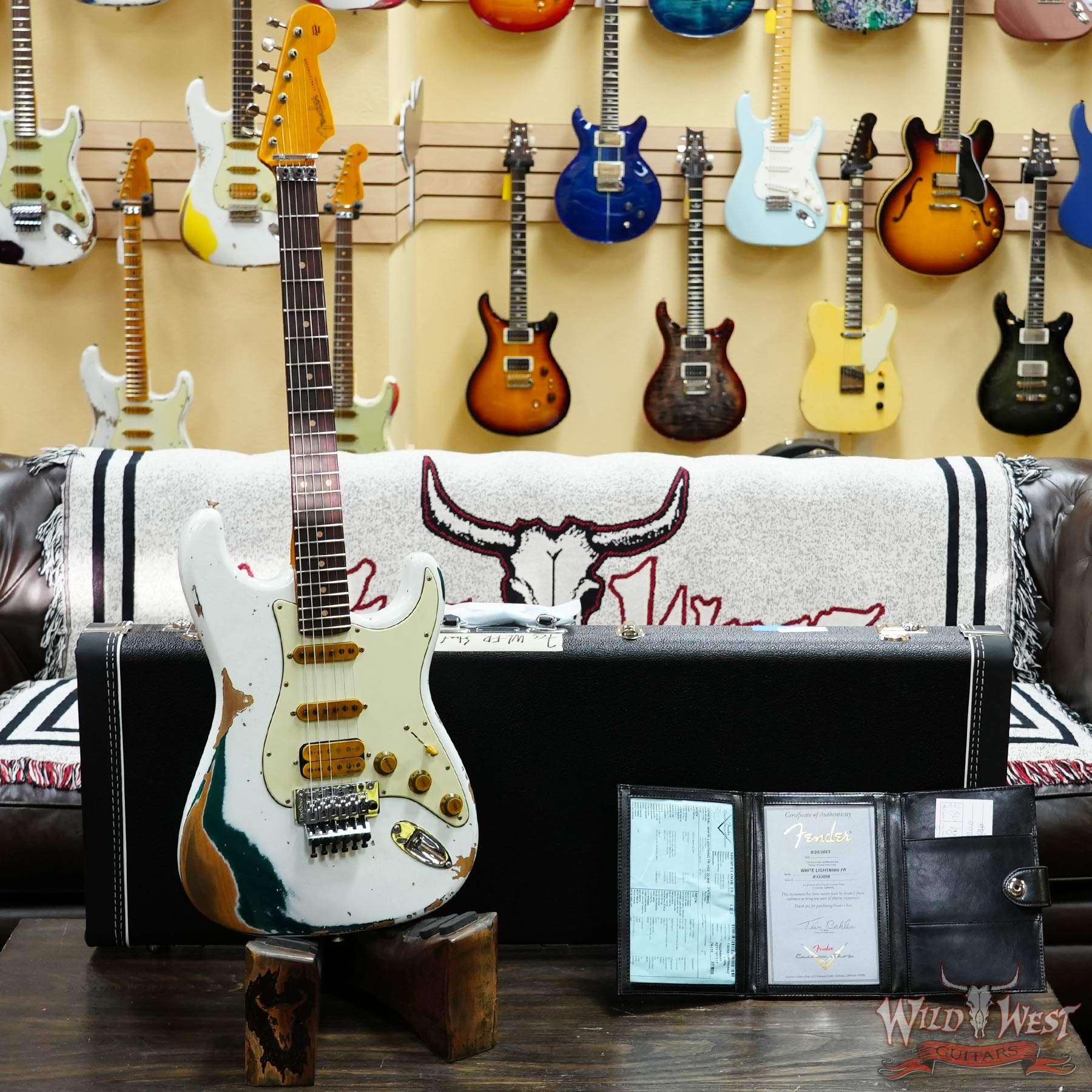 Fender Custom Shop Wild West White Lightning Stratocaster HSS Floyd Rose Rosewood Board 22 Frets Heavy Relic British Racing Green 8.20 LBS
