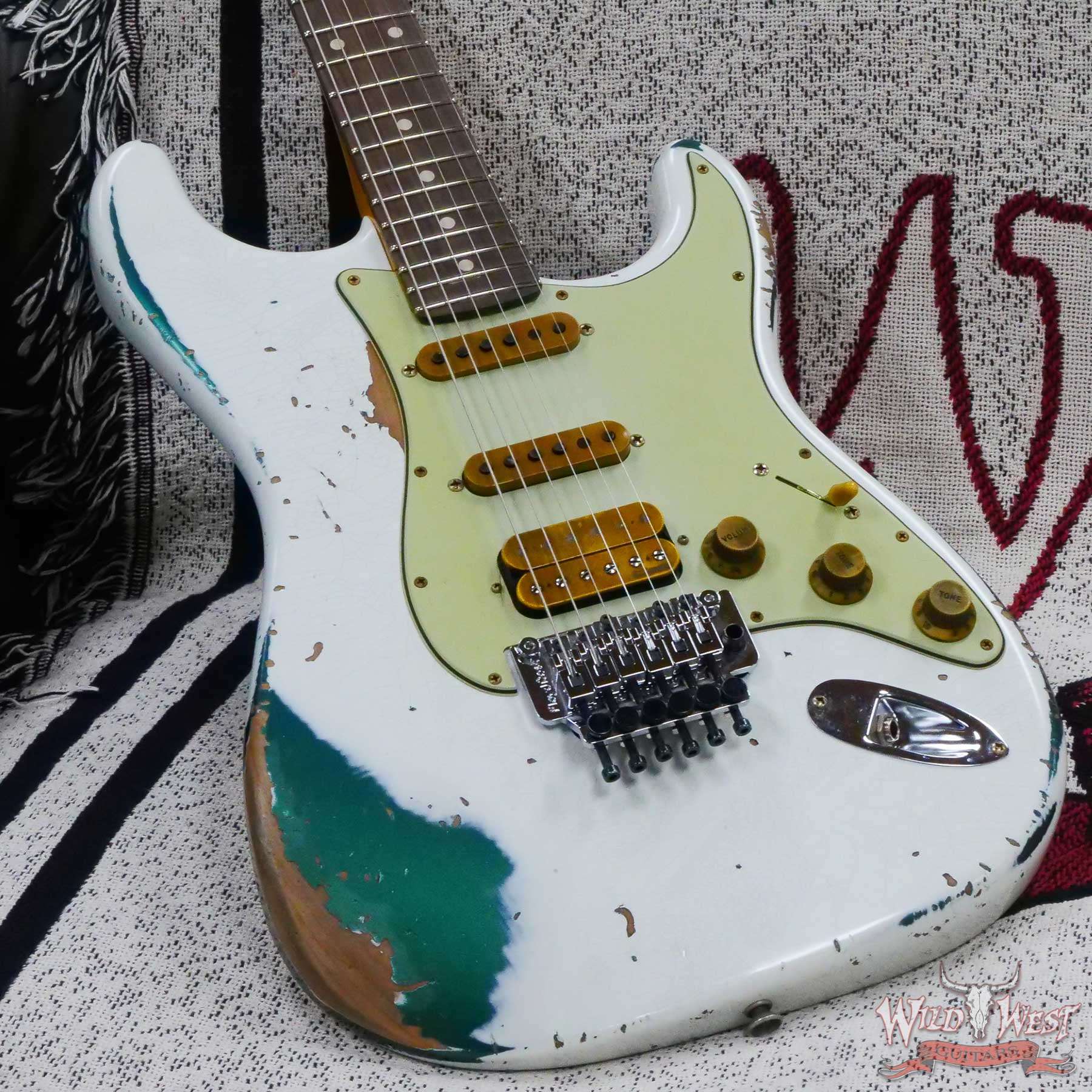 Fender Custom Shop Wild West White Lightning Stratocaster HSS Floyd Rose Rosewood Board 22 Frets Heavy Relic British Racing Green