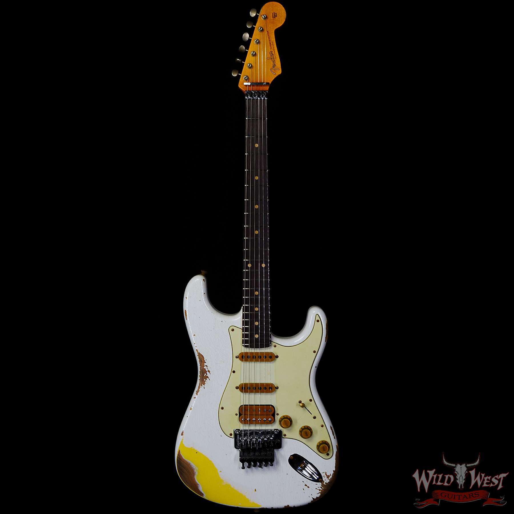 Fender Custom Shop Wild West White Lightning Stratocaster HSS Floyd Rose Rosewood Board 22 Frets Heavy Relic Graffiti Yellow