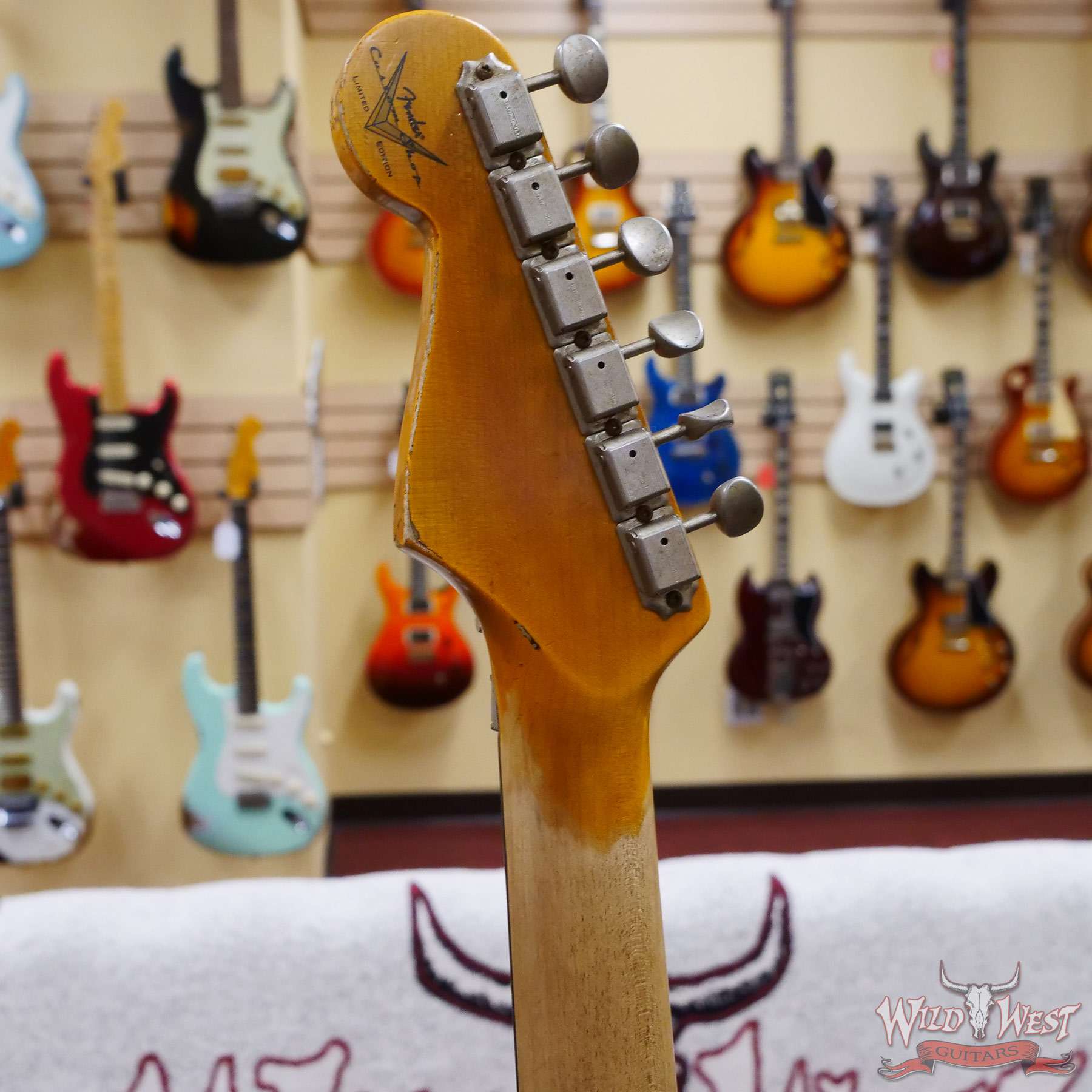 White Lightning(Black Lightning) Strikes The Dusty Plains of The Wild West! White Lightning rips all day n’ rocks all night with traditional Fender tremolo system firepower. The molten Wild West Fender Custom Shop Exclusive Heavy Relic Dirty Neck monster rules the rock n’ roll wastelands, packing a pair of Fat 50s relic single coils and a killer DiMarzio Tone Zone humbucker in the bridge position.
