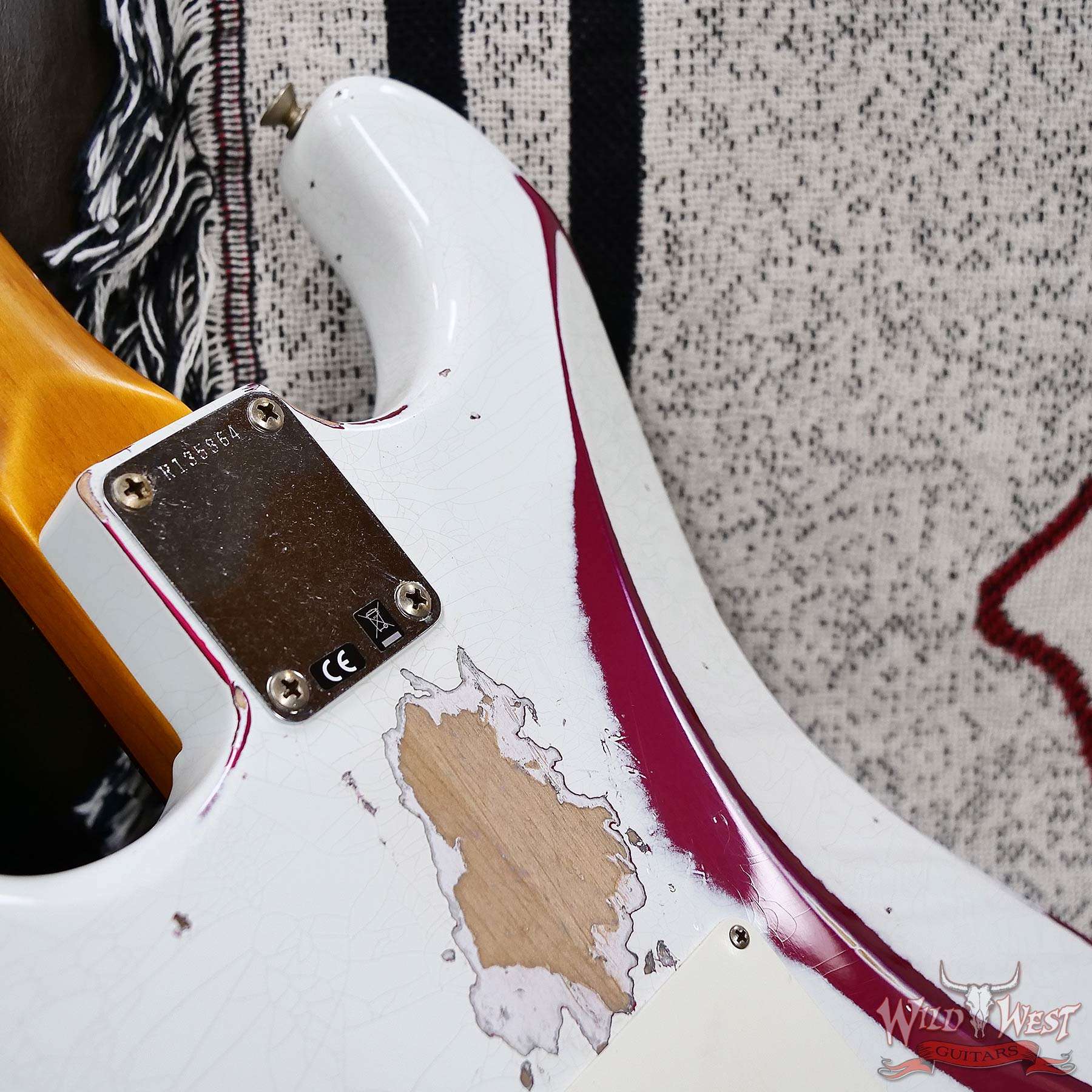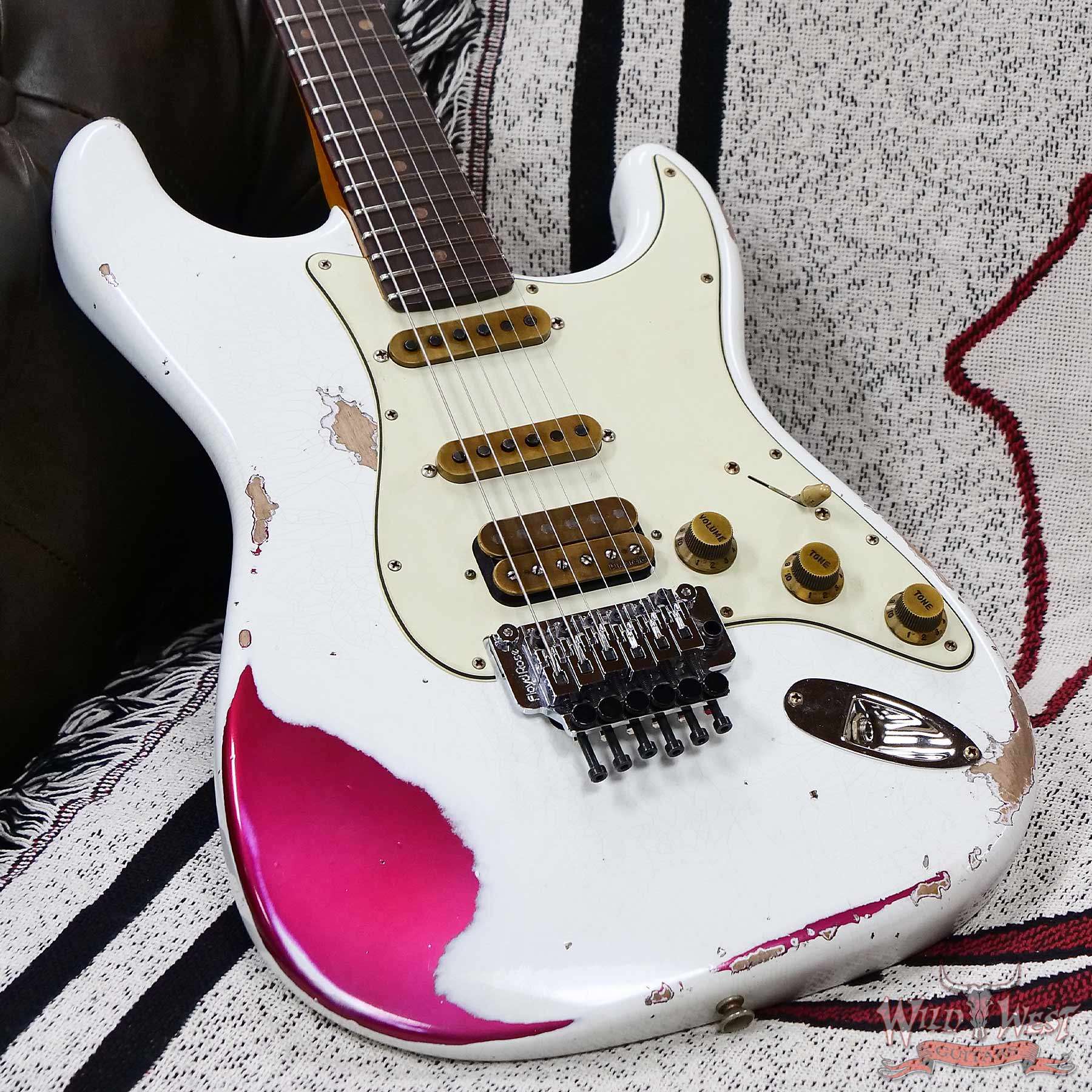 Fender Custom Shop Wild West White Lightning Stratocaster HSS Floyd Rose Rosewood Board 22 Frets Heavy Relic Lipstick Pink Metallic 8.05 LBS