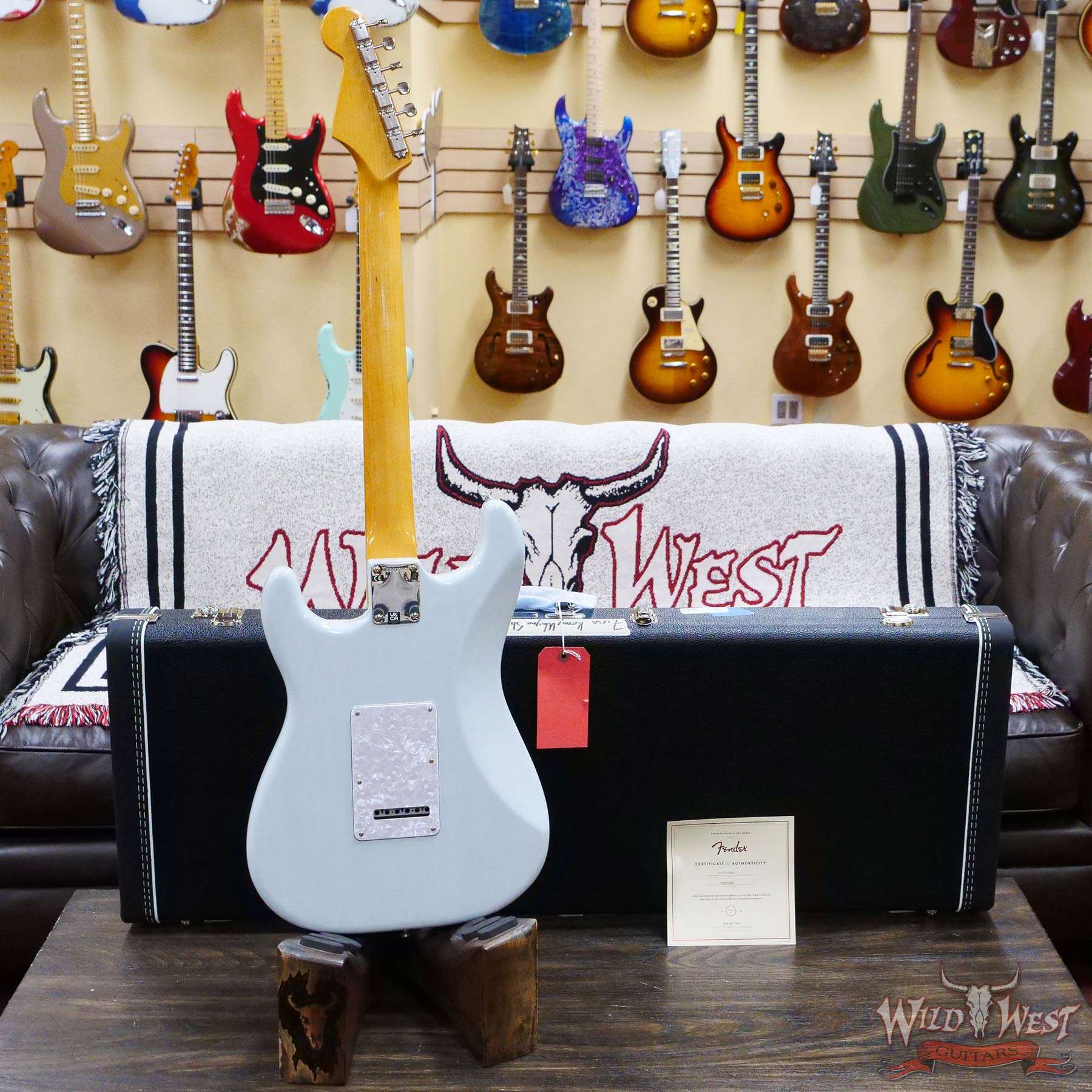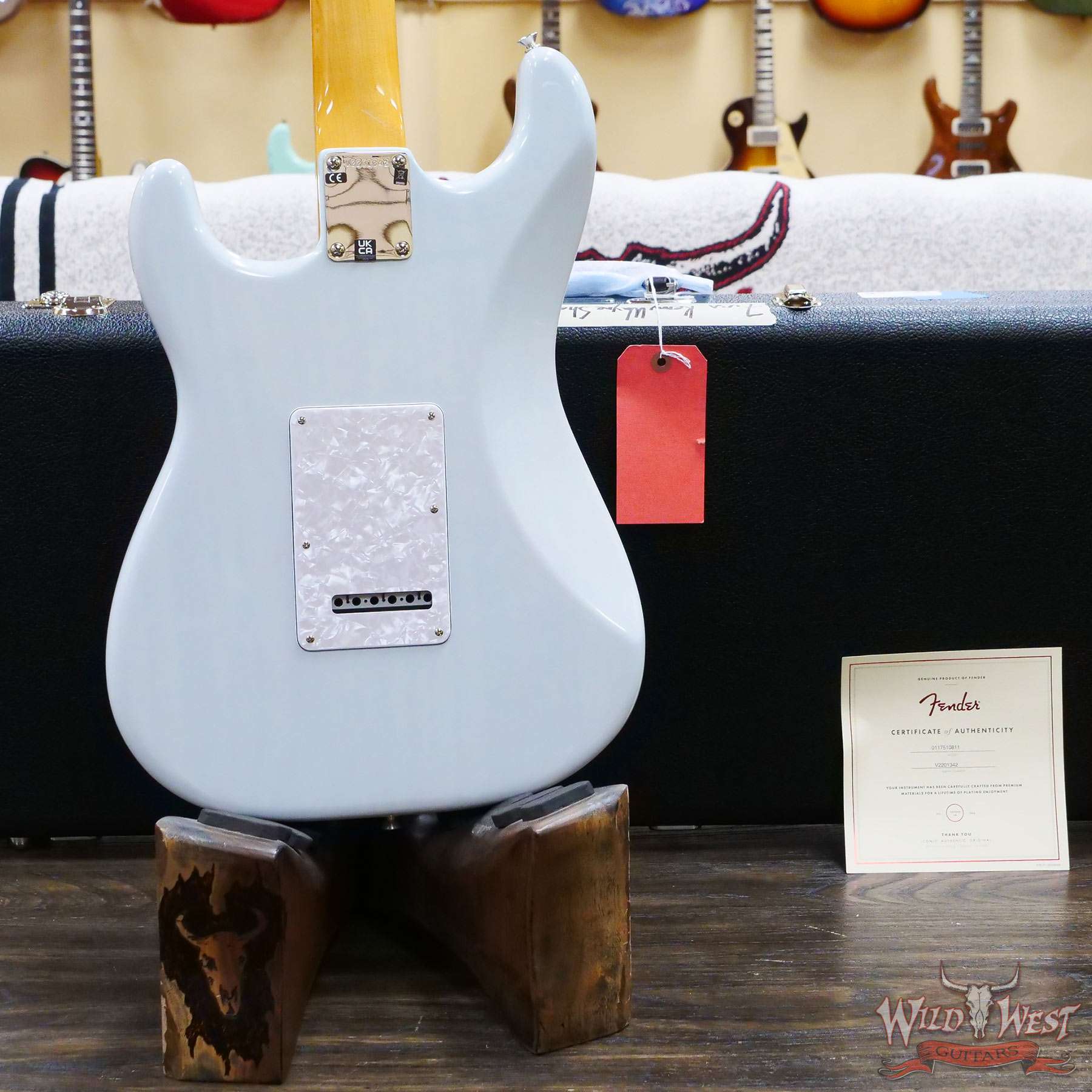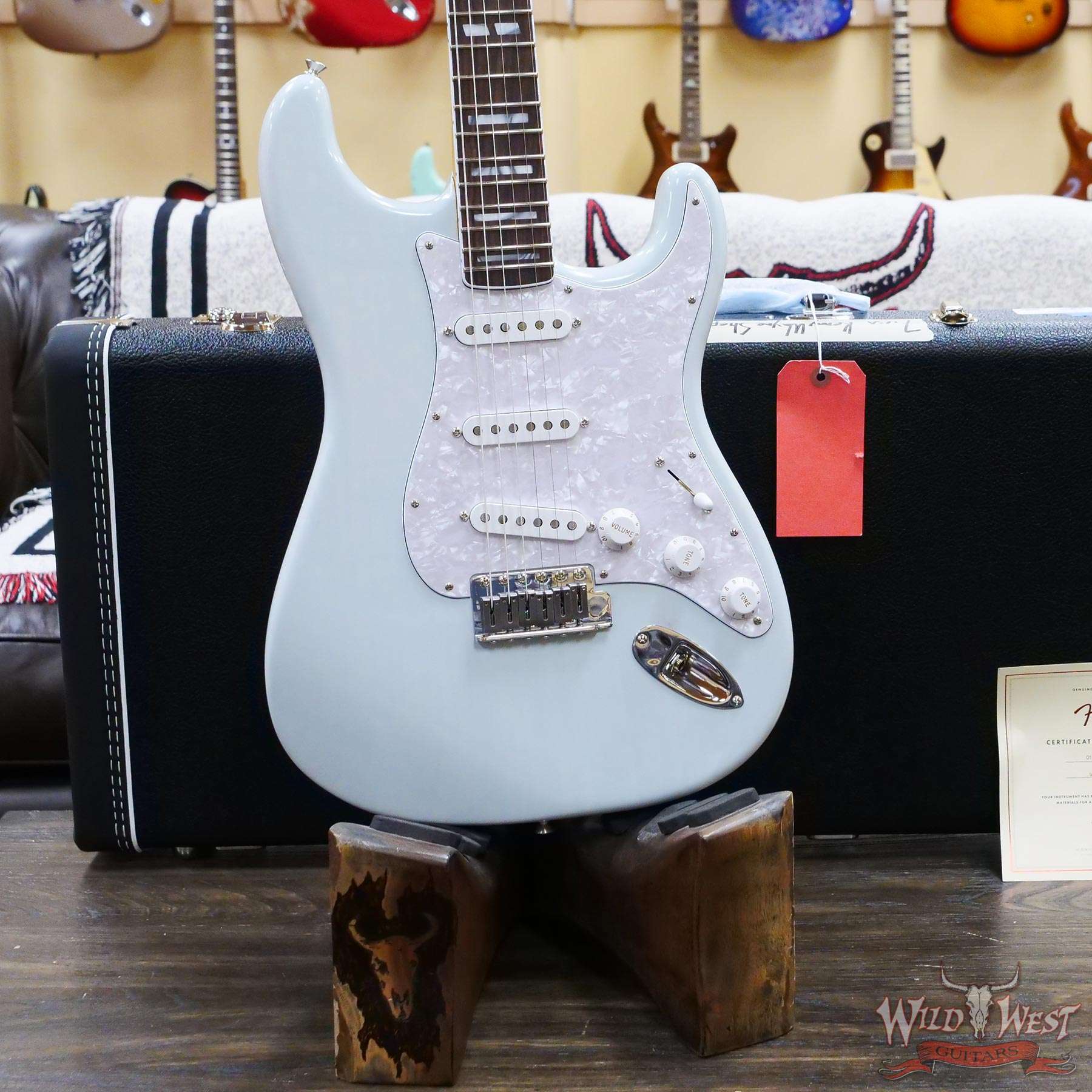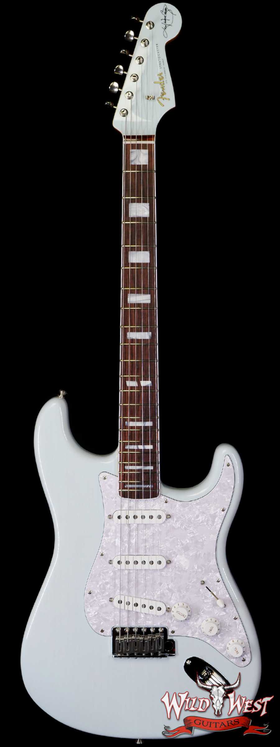 The Kenny Wayne Shepherd Stratocaster features a chambered ash body for vibrant and resonant tone, while the Transparent Faded Sonic Blue lacquer finish highlights the beautiful ash grain. The early ‘60s inspired “C”-shaped maple neck and bound rosewood fingerboard—with a 7.25” radius—offer comfort and playability straight out of Fender’s golden age. Loaded with three Kenny Wayne Shepherd custom pickups, this guitar delivers punchy and full-throated Strat tones.