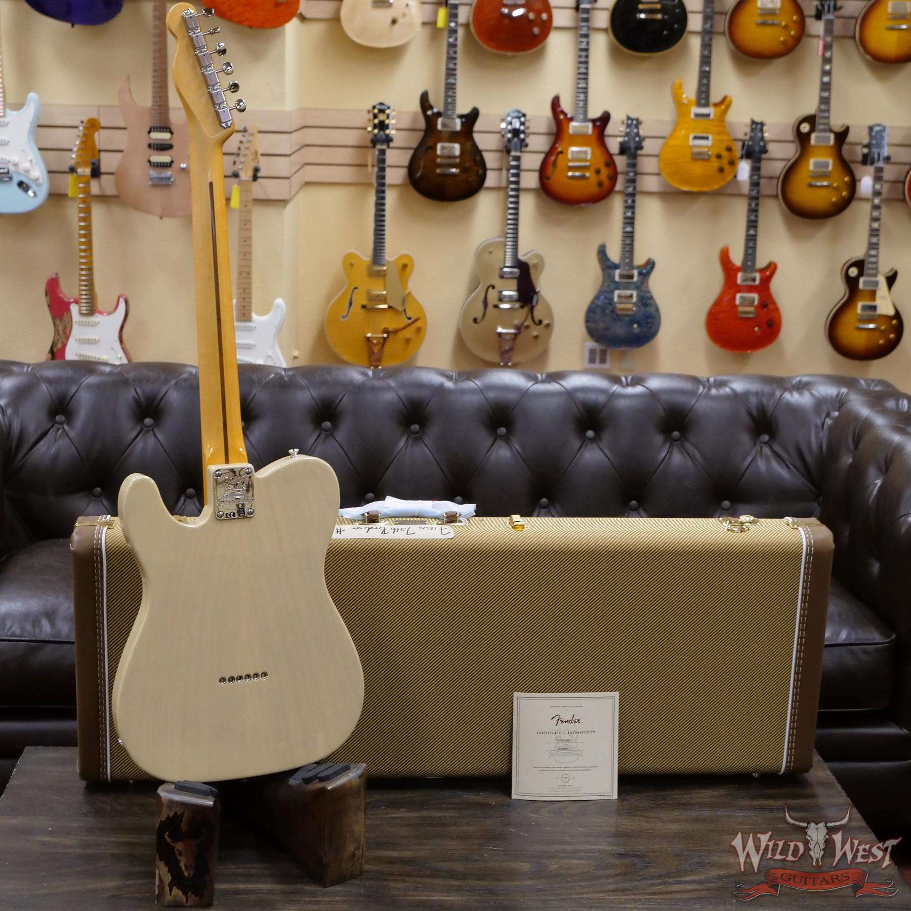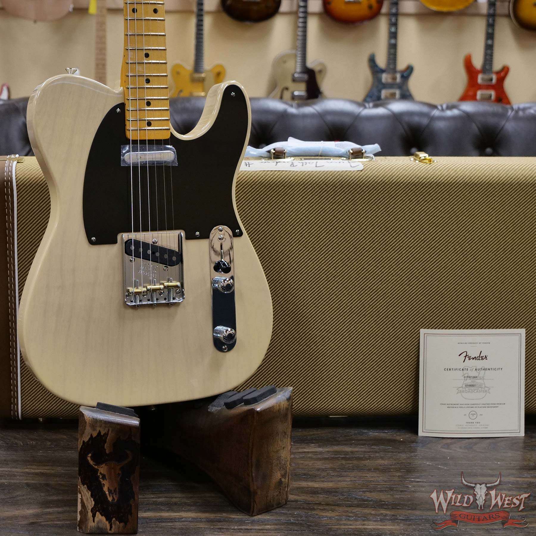 In the fall of 1950, the world of guitar and popular music changed forever with the introduction of the Broadcaster®, Fender’s first solid body electric guitar with a truss rod and two pickups. A few short months later, a telegram from Gretsch®, owner of the BroadKaster® trademark, ended Fender’s use of the name. For a short time, the word “Broadcaster” was simply clipped off the headstock decal – these guitars are known as “Nocaster®s.” Thereafter, this revolutionary guitar was dubbed the Telecaster®. Original Broadcaster models, of which only 250 are thought to have been produced, have become highly collectible.