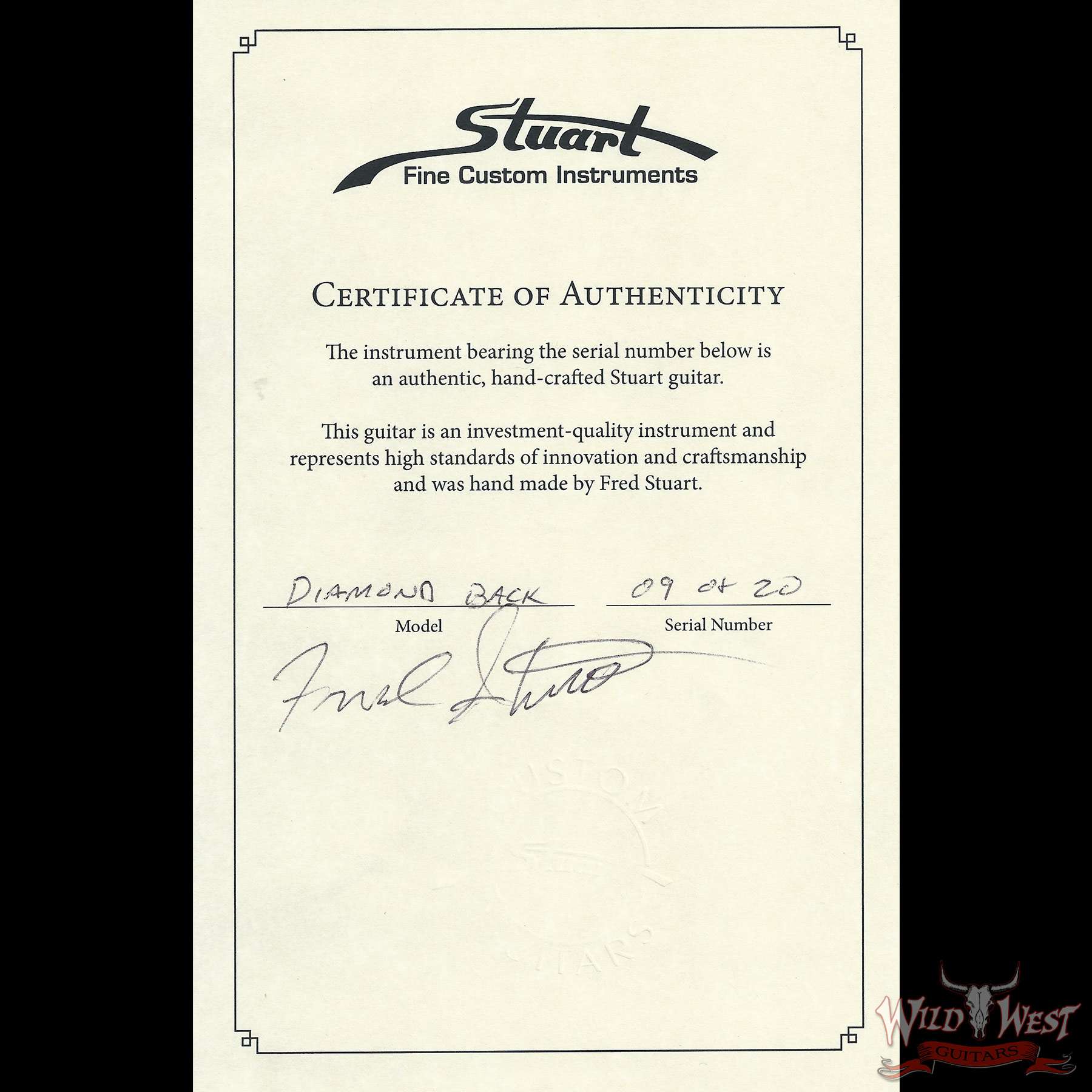 | Model | Fred Stuart Wild West 20th Anniversary Diamond Back Snake Head Guitar |