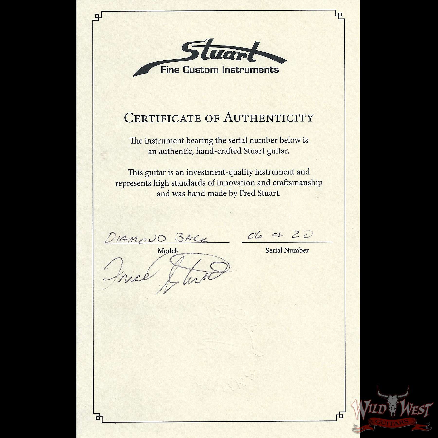 Model | Fred Stuart Wild West 20th Anniversary Diamond Back Snake Head Guitar |