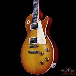 MODEL: LPR58PSL22406 Gibson Custom Shop Dealer Selec t 2025 “Greatest Hits” 1958 Les Paul Standard BOTB (Beauty of the Burst) Page 153 Murphy Lab Heavy Aged 8.90 lbsThe Gibson Custom Shop Dealer Select 1958 Les Paul Standard Beauty of the Burst Page 153 brings to life the vintage classic featured on page 153 of Beauty of the Burst. Built with meticulous attention to detail and aged by the Murphy Lab, it delivers the worn-in look, feel, and character of a late-’50s Burst that’s seen decades of honest play.A hand-selected plain maple top graces the lightweight solid mahogany body, producing the resonance and tonal depth that define the 1958 Les Paul. The solid mahogany neck features the larger ’58 C profile (.900”–1.00”), paired with a rosewood fingerboard and period-correct cellulose trapezoid inlays for authentic feel and playability.Tone comes from a pair of Custom Bucker Alnico 3 humbuckers, carefully voiced for warmth, clarity, and dynamic range. Just like the original Page 153 Burst, this recreation offers the singing sustain and articulate response that made the late-’50s Les Pauls legendary.Vintage-accurate details include single-line/double-ring Kluson tuners, an ABR-1 bridge with lightweight aluminum stop bar, True Historic cream binding, gold top-hat knobs, reissue cream pickguard, and historically correct strap button placement.Weighing in at only 8.90 lbs, this instrument balances collector appeal with stage-ready performance. It comes complete with a Gibson Custom Shop hardshell case and certificate of authenticity, making it both a tribute to an iconic Burst and a tool for creating new history.