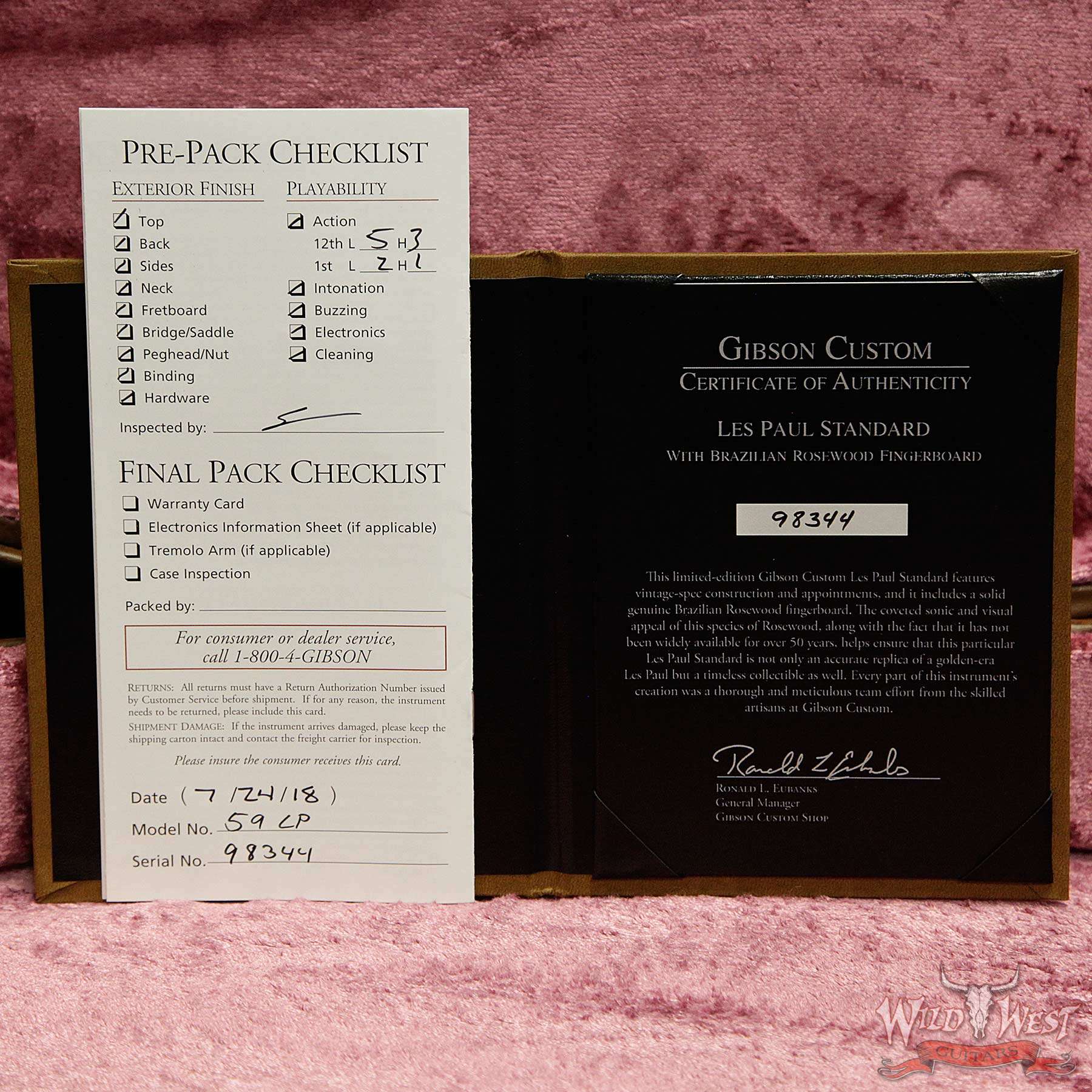 2018 Gibson Custom Shop Historic 1959 Les Paul VOS Hand Selected Killer Top Brazilian Rosewood Board Dirty Lemon 8.90 Pounds