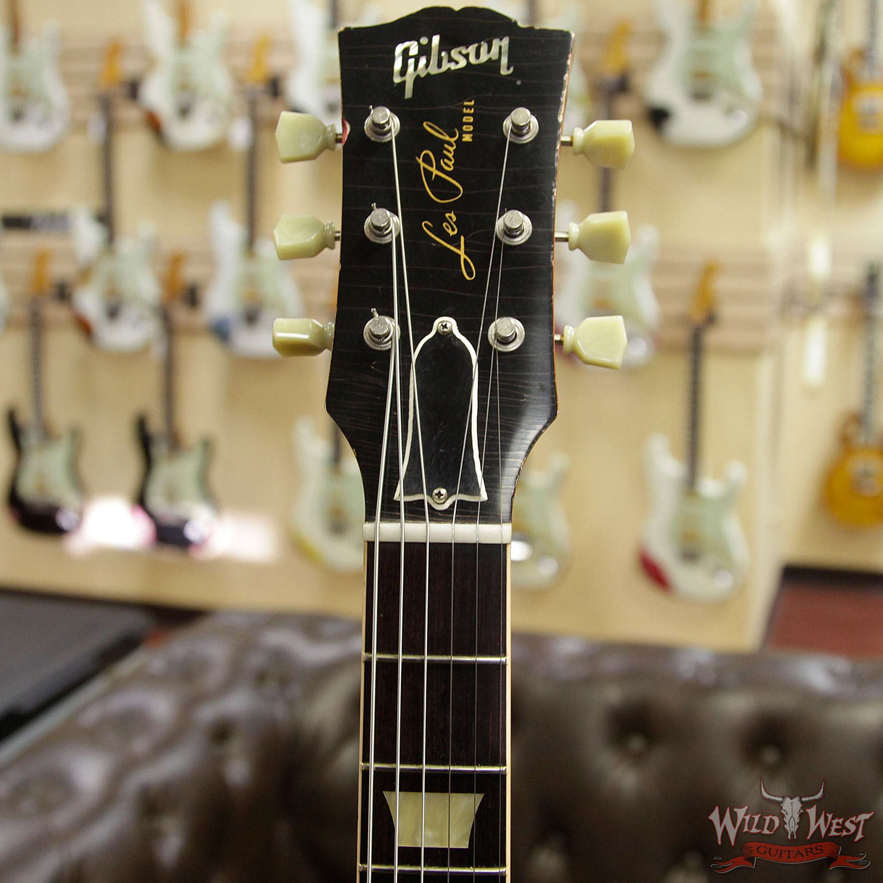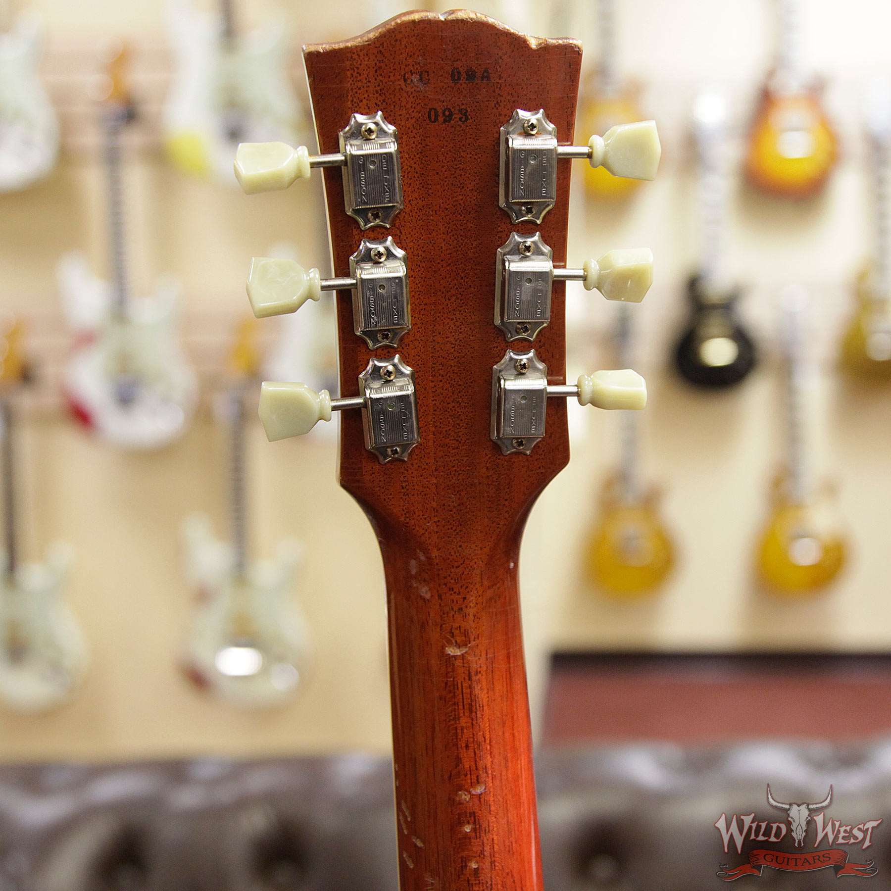 “Goldie” is an exciting opportunity not only because it is such a gorgeous Les Paul, but also because its ownership is extremely well documented, with only the first few years of its existence after heading from Gibson’s Kalamazoo factory to its first owner near Deer Park, Texas, remaining slightly hazy. Having resurfaced in the early 80’s at one of the first Dallas guitar shows, “Goldie” has graced the collections of several noted burst aficionados including Vic Da Pra and Tom Wittrock, the guitar is currently in the care of an anonymous collector and on loan to Gibson Custom. The guitar has also been extremely well cared for in its 52 years on this planet, suffering some of the minor nicks and dings that all well-played instruments experience in half a century of use-all precisely recreated by Tom Murphy’s hand aging-but no breaks, repairs, or modifications. Also, this ‘59 Les Paul Standard’s finish has naturally mellowed to a sweet, rich, golden “unburst,” a luscious deep “green lemon” amber tone at the center with just a hint of darkening around the edges, giving it a look that many collectors adore. To precisely recreate the appearance of the original in the top of Collector’s Choice #2 9-0629 aka “Goldie” Gibson Custom has hand selected figured maple with a broad, elegant flame and “slip matched” the two pieces to present the same degrees of depth and dimension. Hand-finished in nitrocellulose lacquer and hand aged, this top is partnered by a light one-piece mahogany back which has faded to match the original’s soft, mellow reddish-brown.