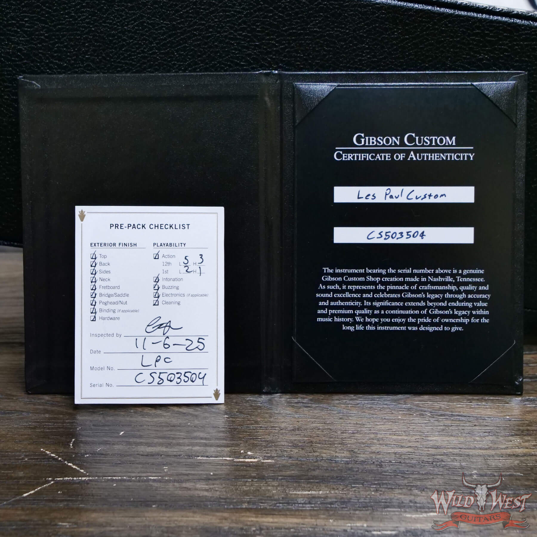 As the flagship model from Gibson Custom, the Les Paul Custom lives up to the high standards set by its 1950s archetype while evolving to a level of tone and performance more suited to today’s musical demands. Beneath the layers of its “tuxedo” appointments lies the crisp, edgy voice of a matched 490/498 humbucker set, a solid Ebony fingerboard, a long neck tenon for maximum sustain and a two-piece maple top over a solid mahogany body which adds the perfect amount of sonic bite to everything from jazz to hard rock. It sounds as good as it looks, and it looks as good as it sounds!
