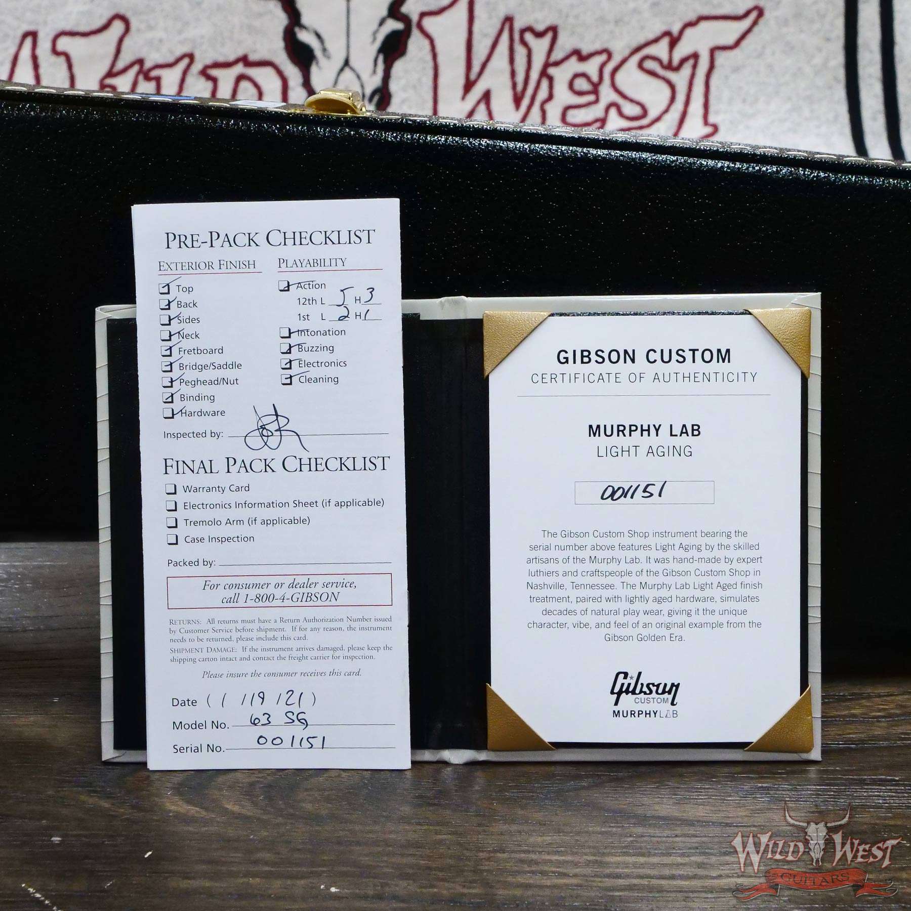 The last year of the “Les Paul™” moniker on the SG™ Custom was also the first year of the Maestro™ Vibrola…1963. Gibson Custom Shop has proudly recreated this desirable version of the SG Custom down to the original construction methods and contours. The result is a beautiful, versatile, and tremendous-sounding instrument that plays effortlessly. The solid ebony fingerboard and revamped vintage-style electronics help it attain new sonic heights with clarity and sustain. From the dimensions to the contours to the precise inlay patterns to the sonic experience, it’s the top of the line SG in every respect! It also features Light Aging by the skilled artisans of the Murphy Lab. The Murphy Lab Light Aged finish treatment, paired with lightly aged hardware, simulates decades of natural play wear, giving it the unique character, vibe, and feel of an original example from the Gibson Golden Era.