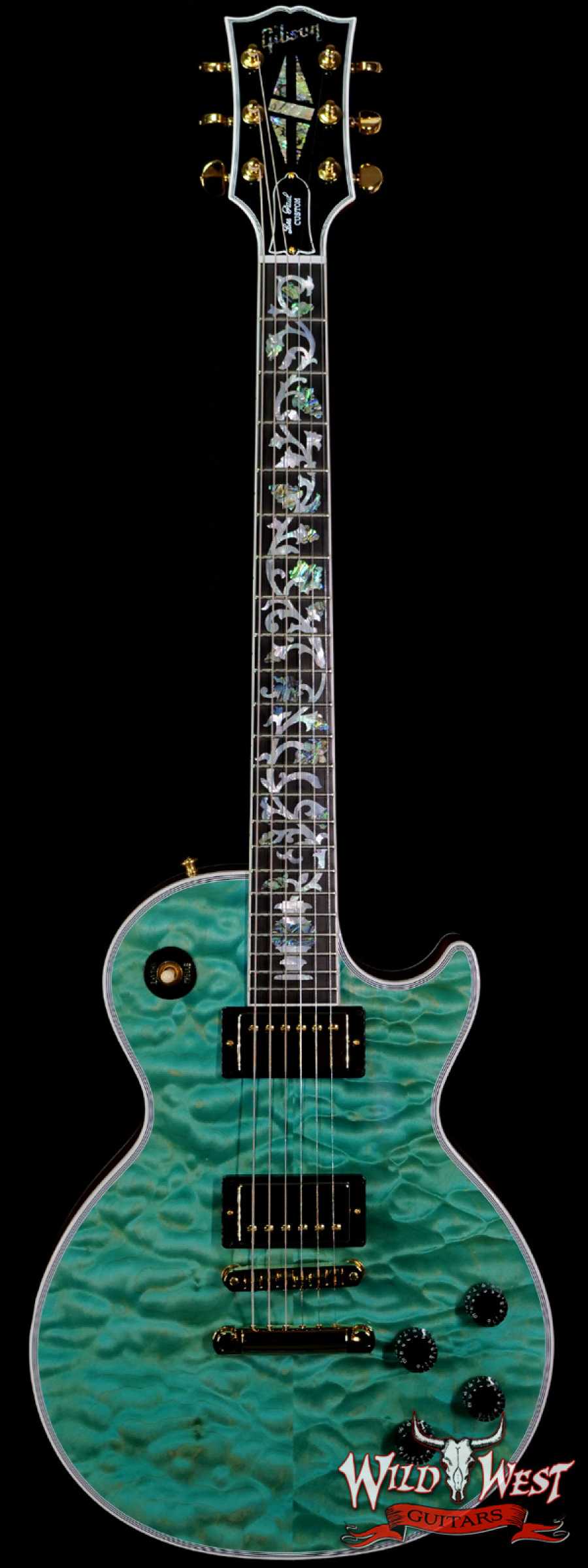Gibson Custom Shop M2M Hand Selected 5A Quilt Maple Top Les Paul Custom Ebony Board with Tree of Life Inlay Aqua Blue