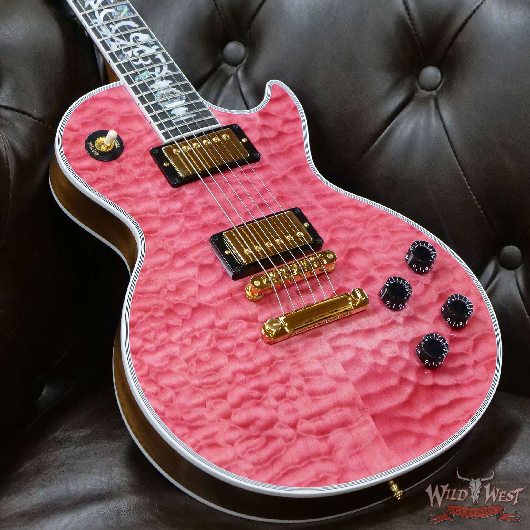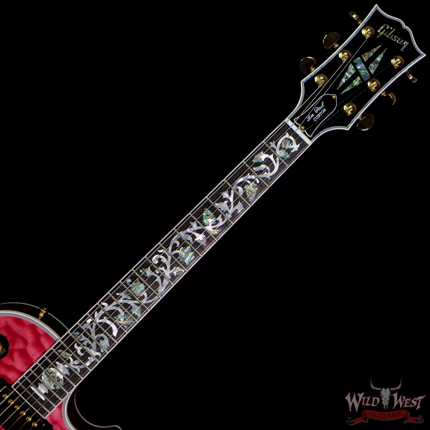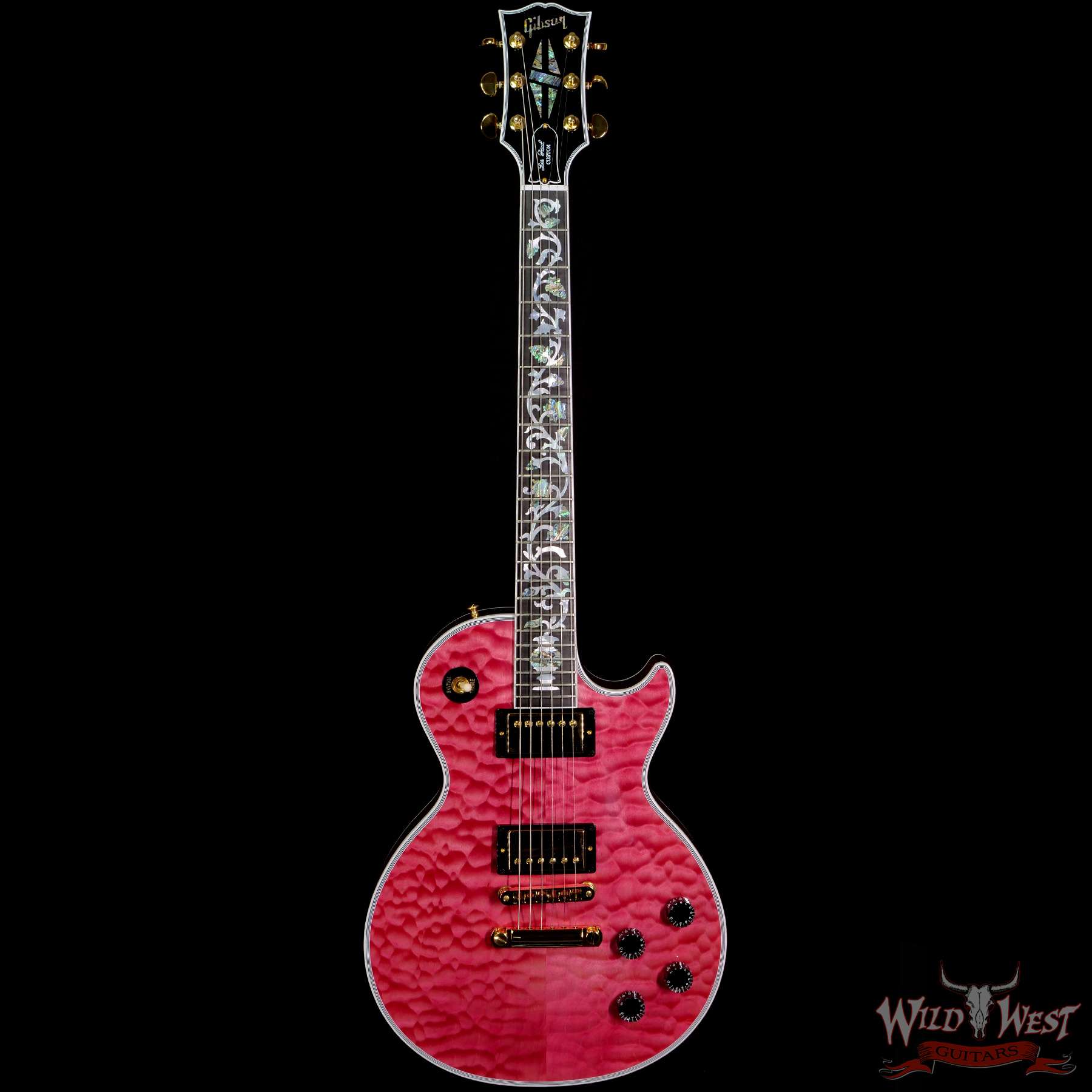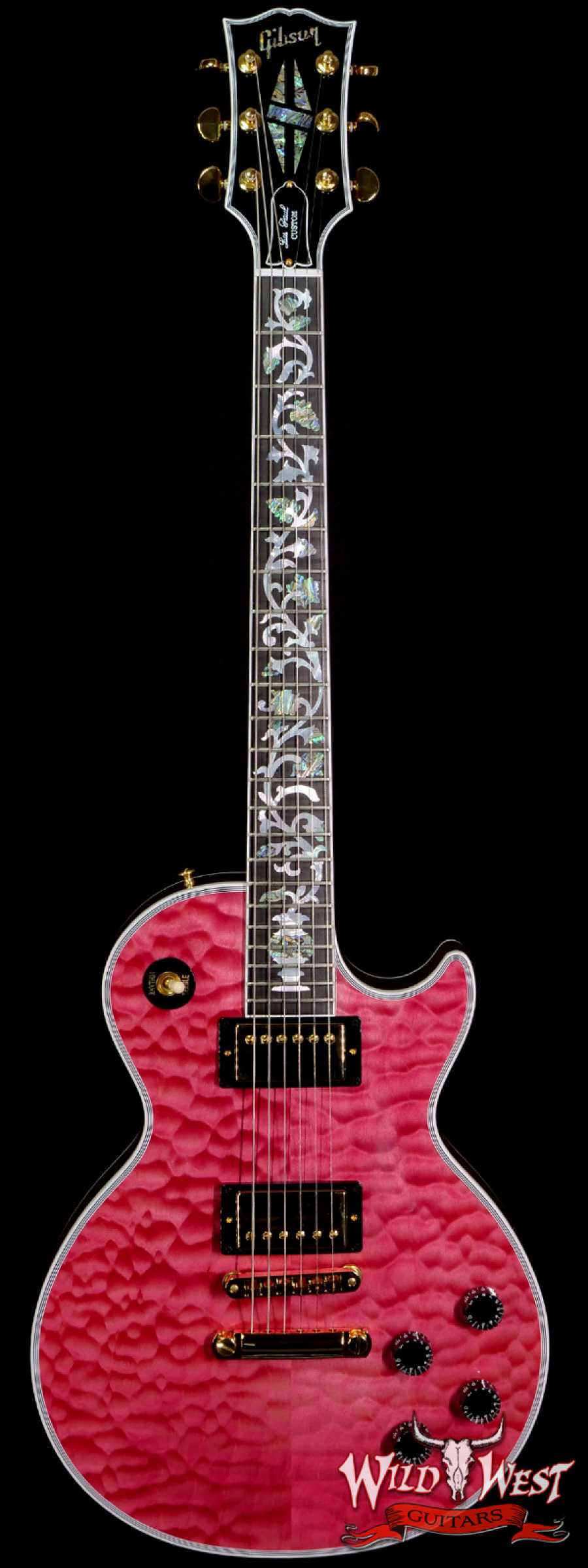 Gibson Custom Shop M2M Hand Selected 5A Quilt Maple Top Les Paul Custom Ebony Board with Tree of Life Inlay Chablis Pink