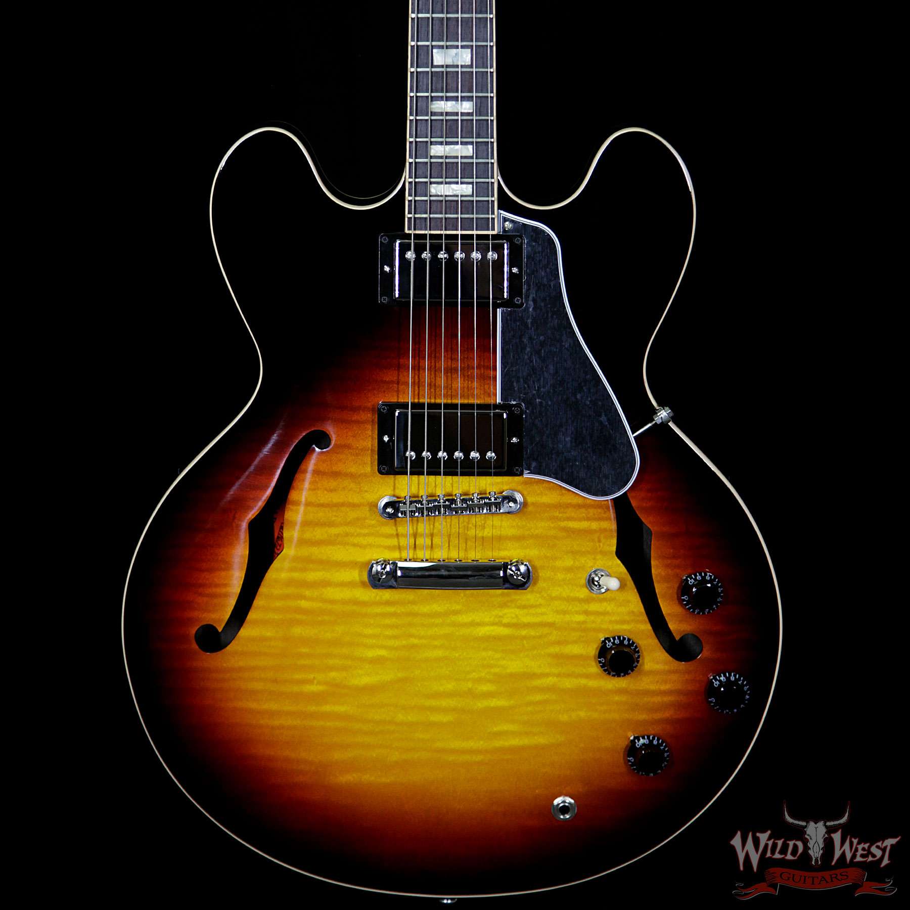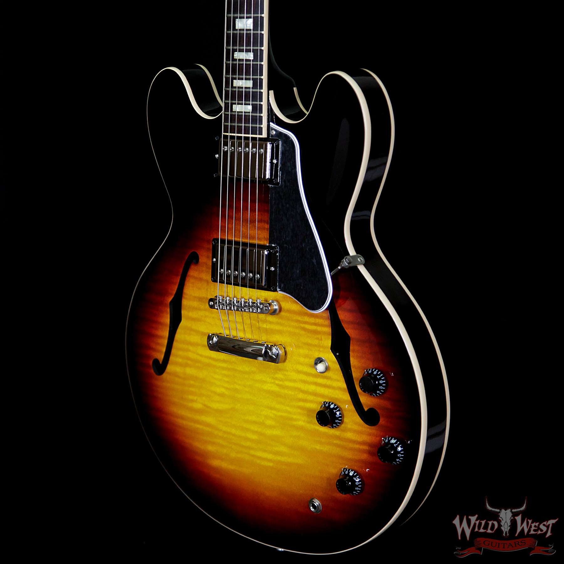 From its arrival in 1958 and throughout its glory years, few ES-335s were built with figured maple tops, and those that remain are highly prized. Our 2016 ES-335 Figured from Gibson Memphis capture this exotic-wood elegance in a great sounding and playing semi-acoustic. A tubeless Historic truss rod, PAF-style Burstbucker 1 & 2 pickups, a redesigned neck profile for increased strength and comfortable feel, and top-quality hardware including a new bridge with titanium saddles make this an outstanding semi by any standards.