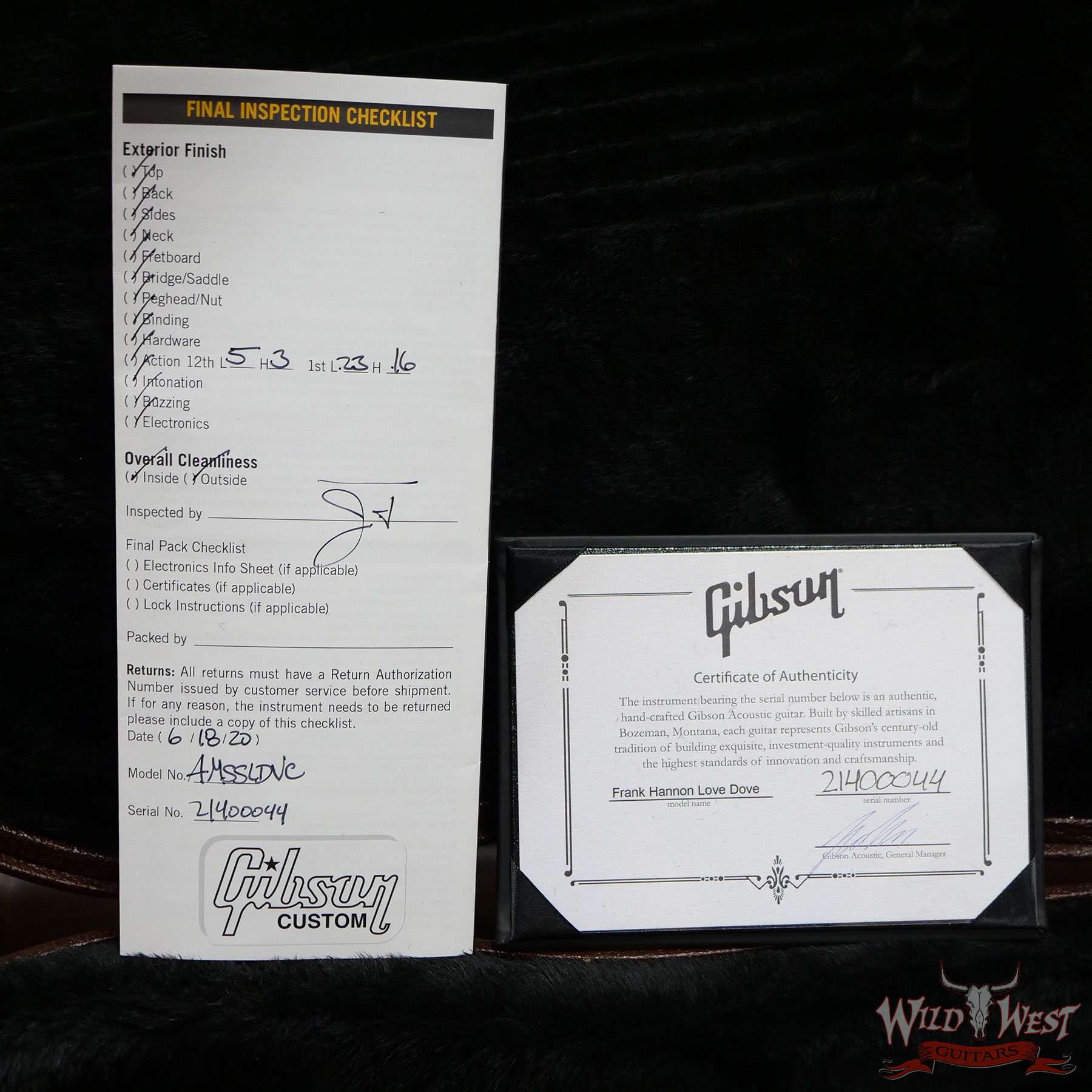 Gibson is proud to collaborate with Frank Hannon, guitarist, songwriter, and co-founder of the multi-platinum band Tesla, to build a highly customized signature Dove model. Frank used his 70s era Gibson Dove to write and record numerous hit songs, including the celebrated ballad “Love Song.” This new Love Dove is filled with love, power, and performance, just like Frank’s lyrical, vocal, and musical prowess. Custom features include a Thermally Aged Sitka spruce top married to maple back and sides, allowing for supreme response and resonance, a 70s era Dove bridge with scalloped wings, decorated with mother-of-pearl wing inlays, and the highly desirable Dove pick guard, featuring hand engraved and painted details. Each commemorated with a signed inside label by Frank Hannon and custom Love engraved truss cover.