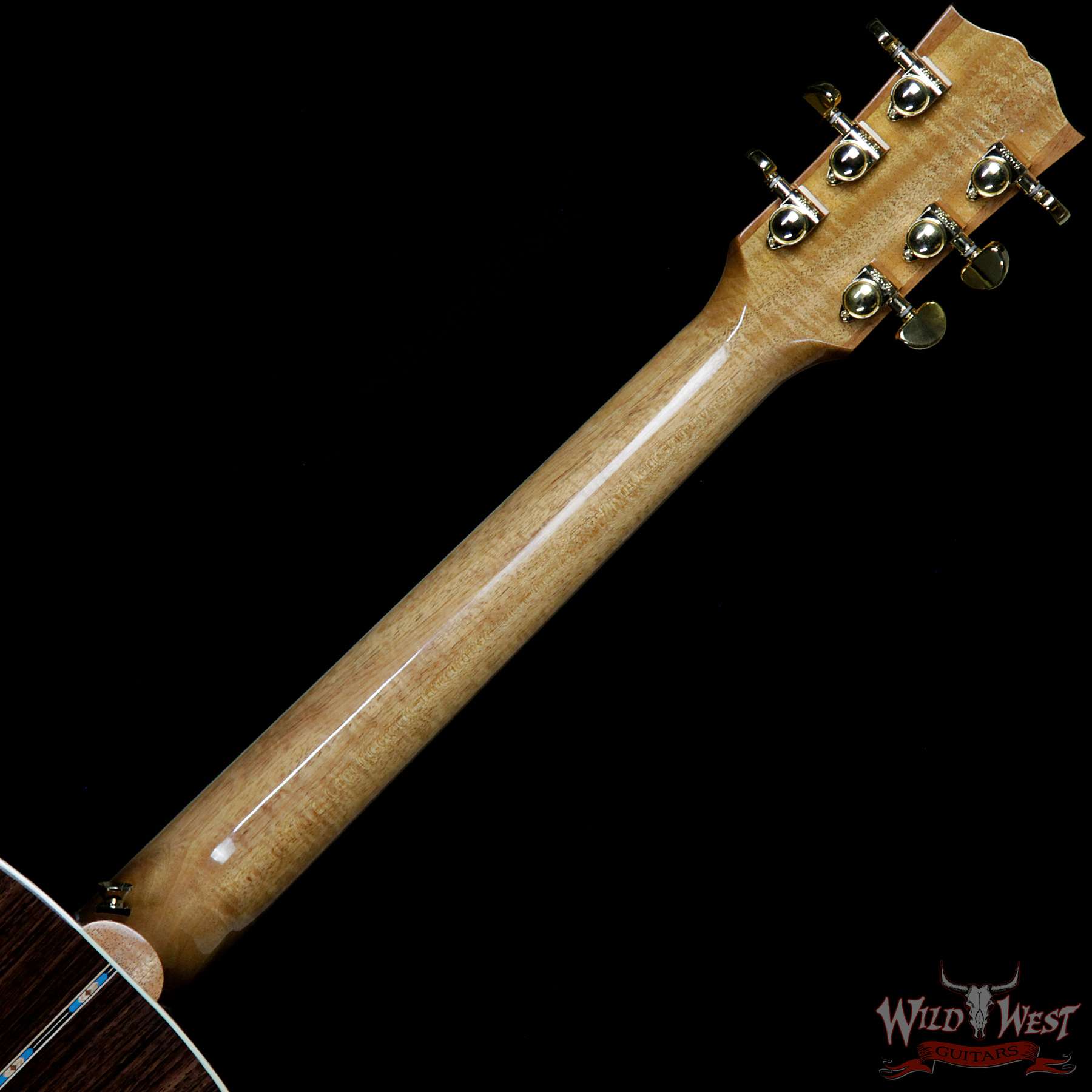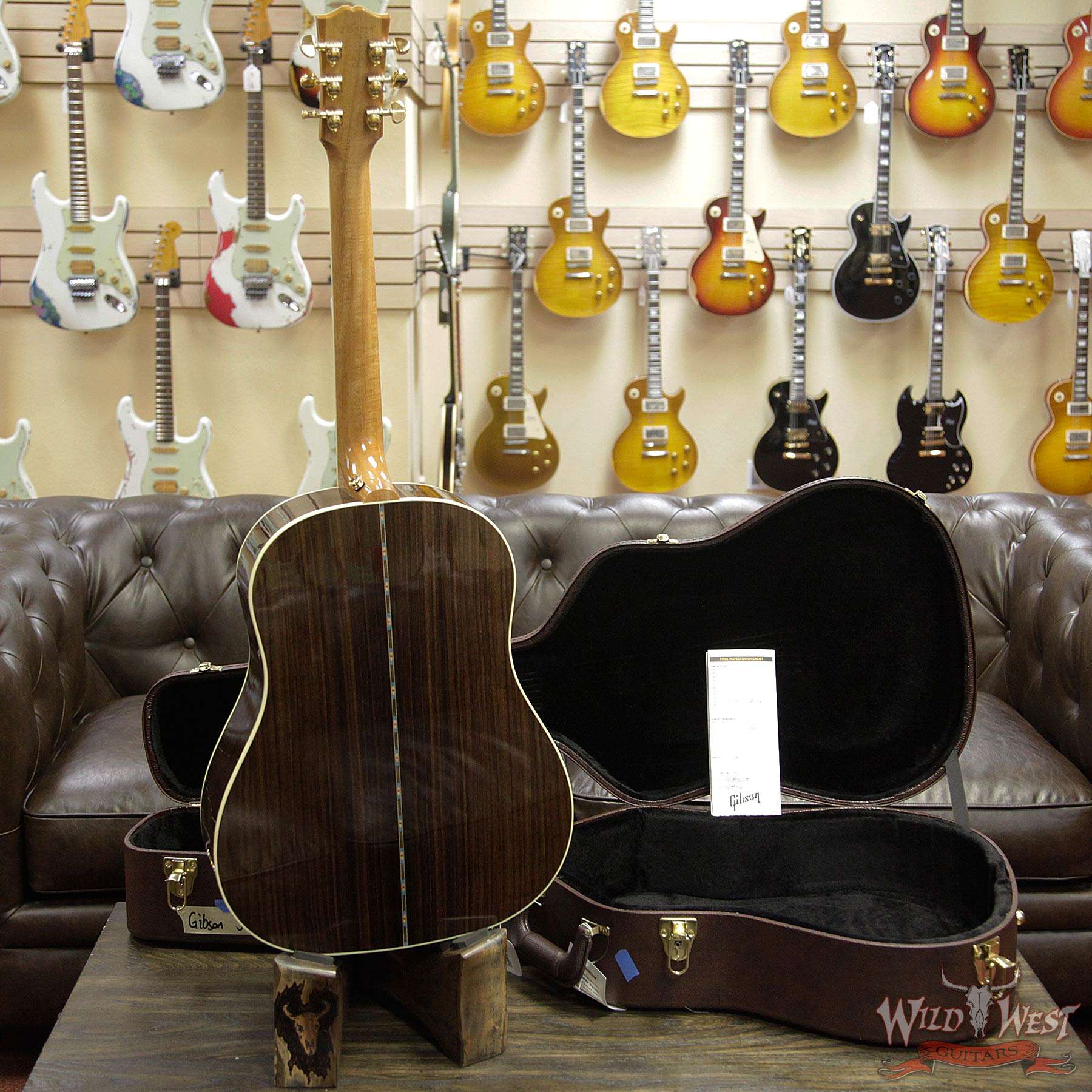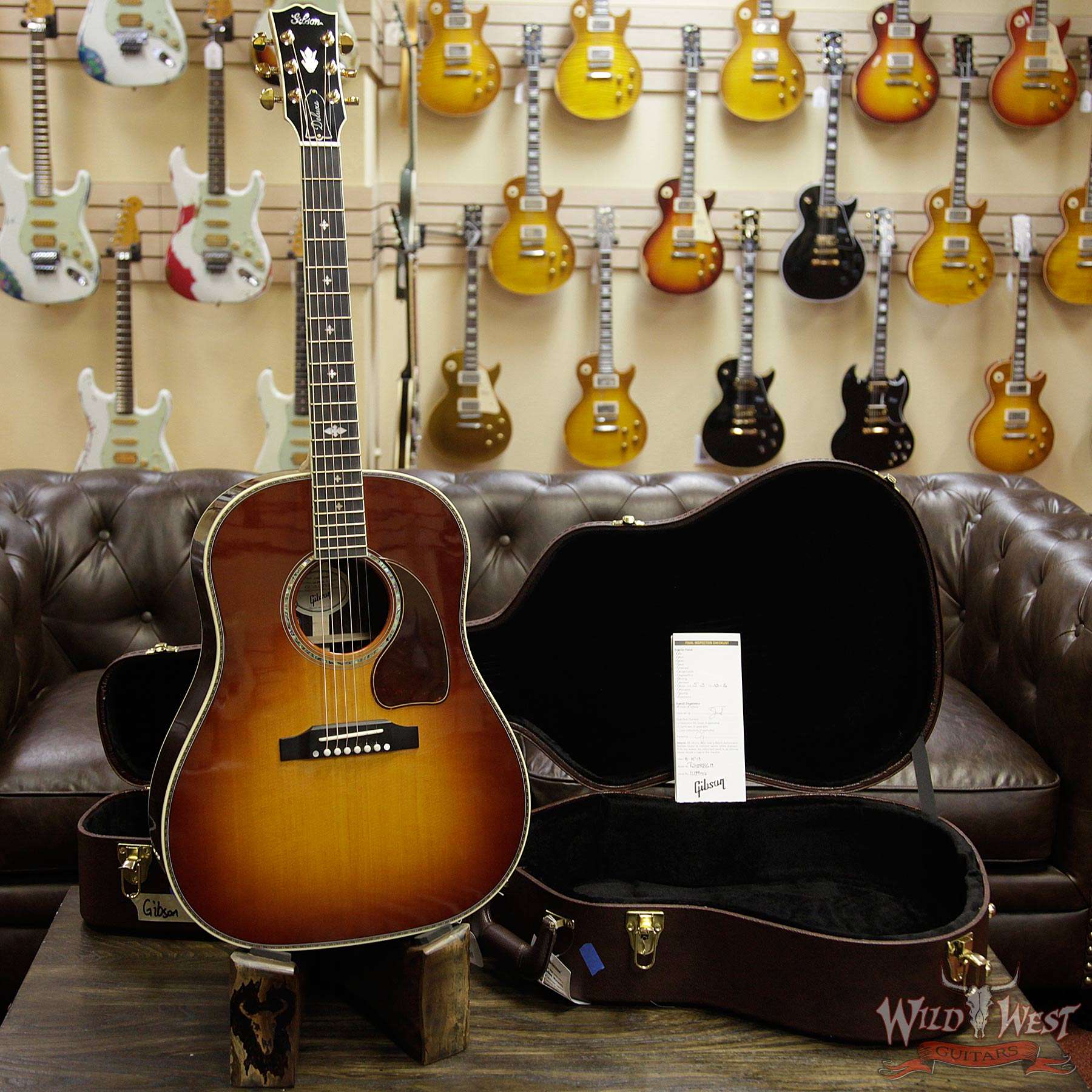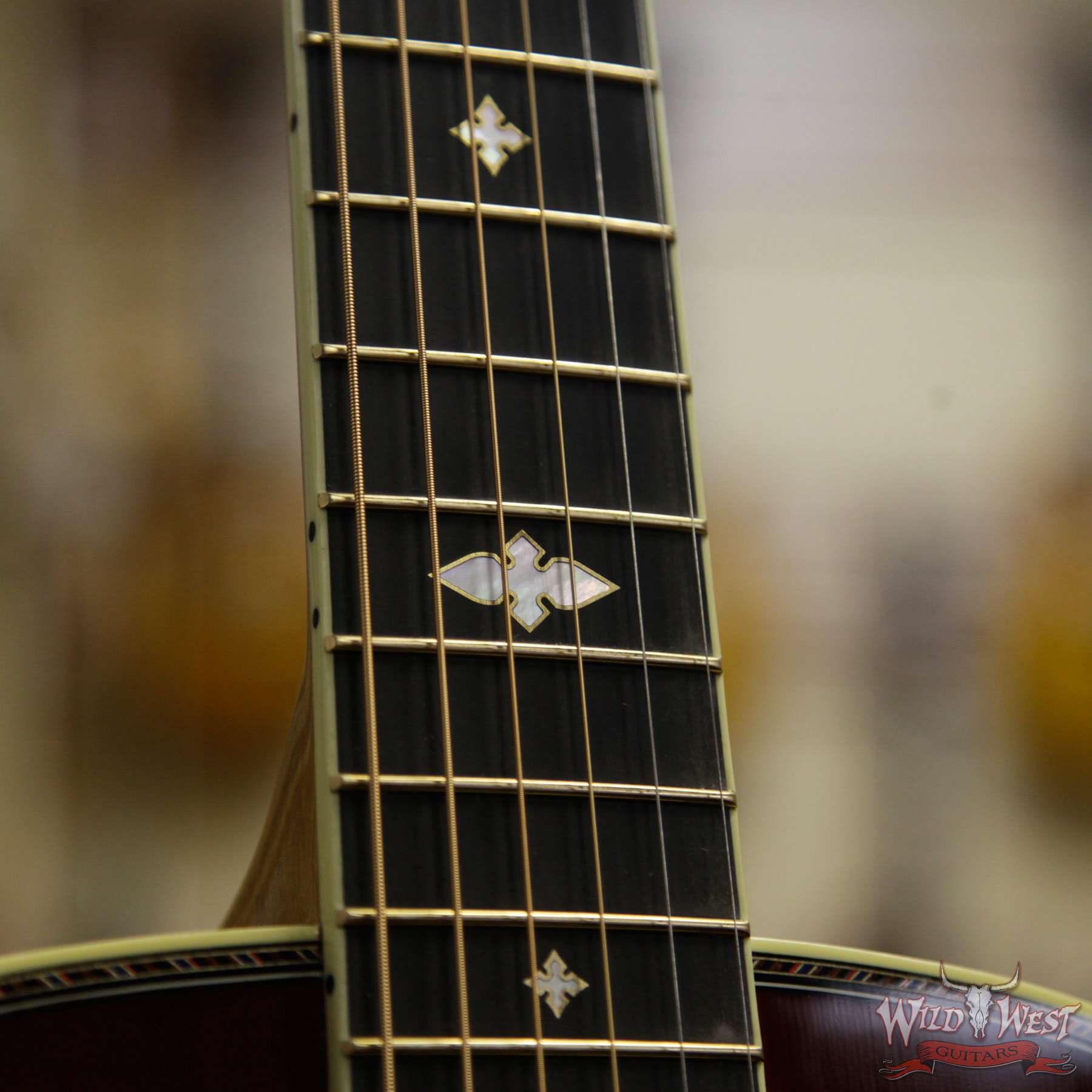 Built upon the famous J-45 platform this J-45 Deluxe offers custom features throughout. Beautiful multi-ply top trim with added multi-colored rope binding, rosewood back and sides, Mother-of-pearl split diamond inlay, hand sprayed Rosewood Burst finish, and bound peghead. Finished with an LR Baggsâ„¢ VTC pickup.