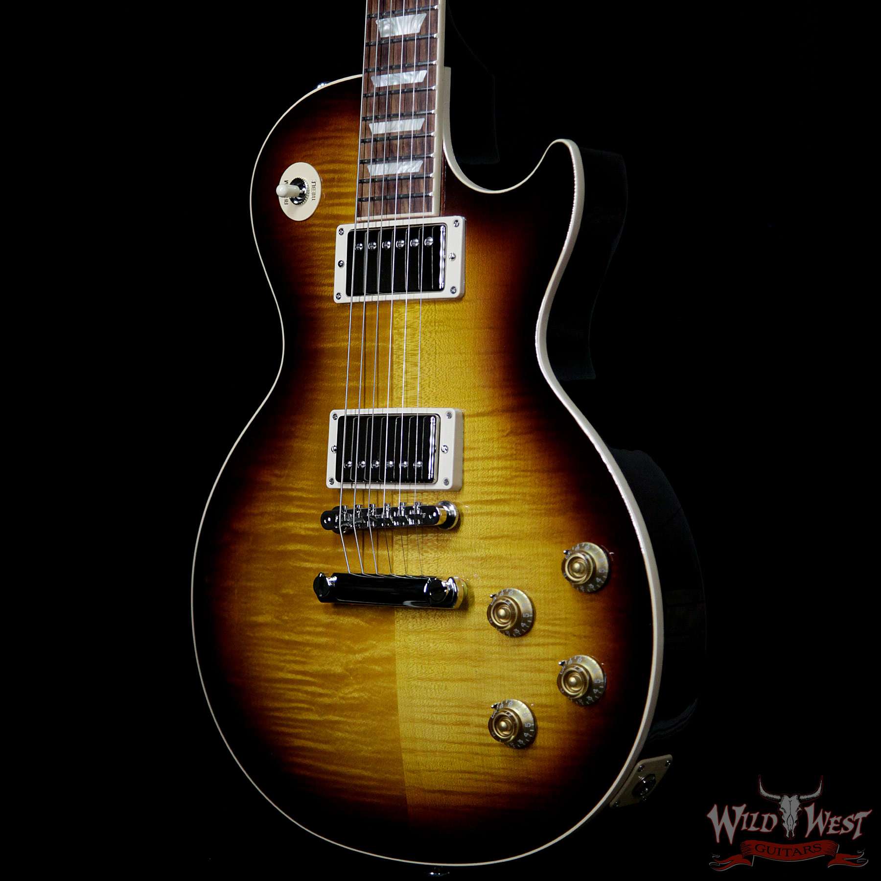 Traditional looks are complemented by the legendary tonewood combination of a mahogany body and AA figured maple top, vintage style tuners and ABR bridge and nickel-plated hardware. Classic PAF tones are enhanced by hand-wired electronics including Orange Drop capacitors.