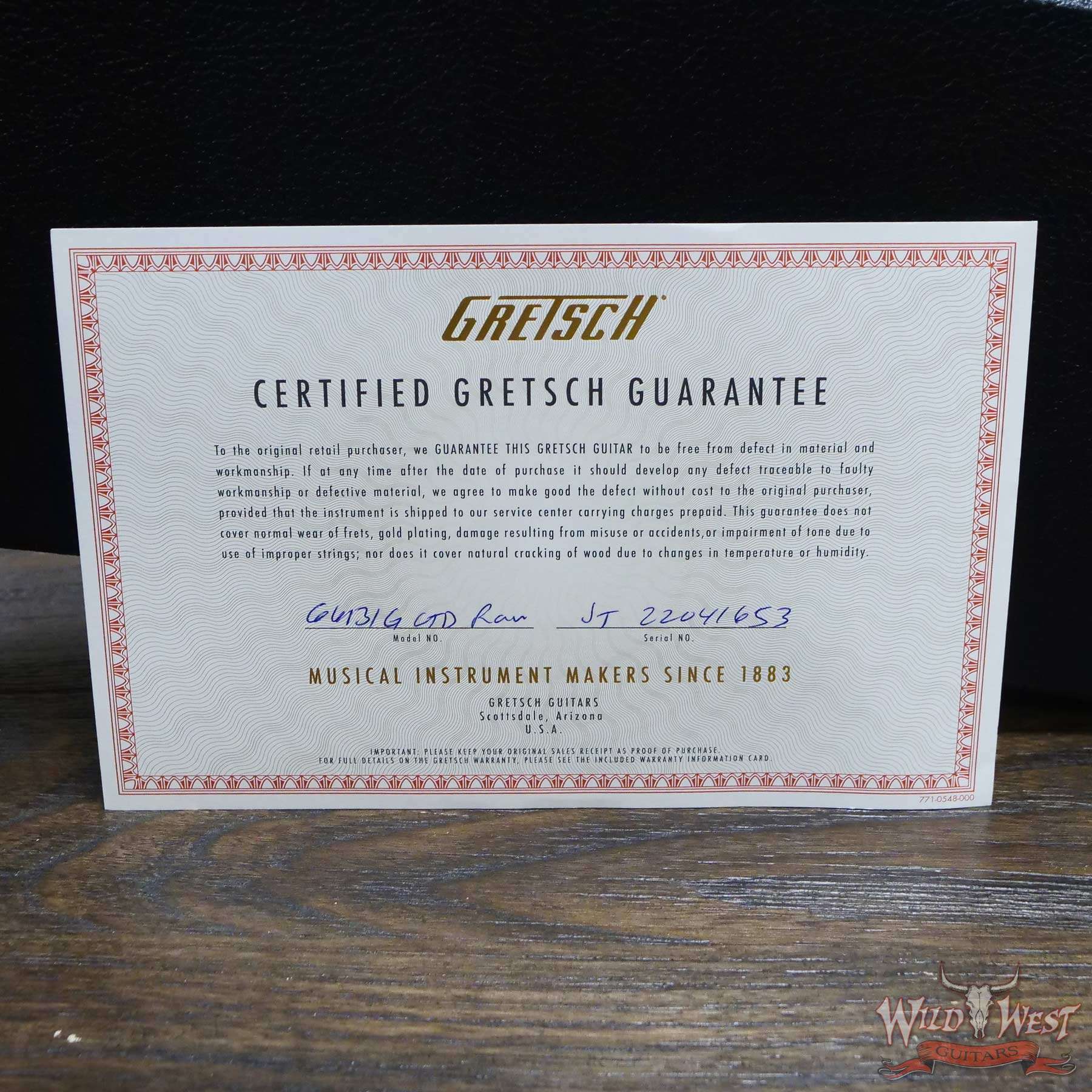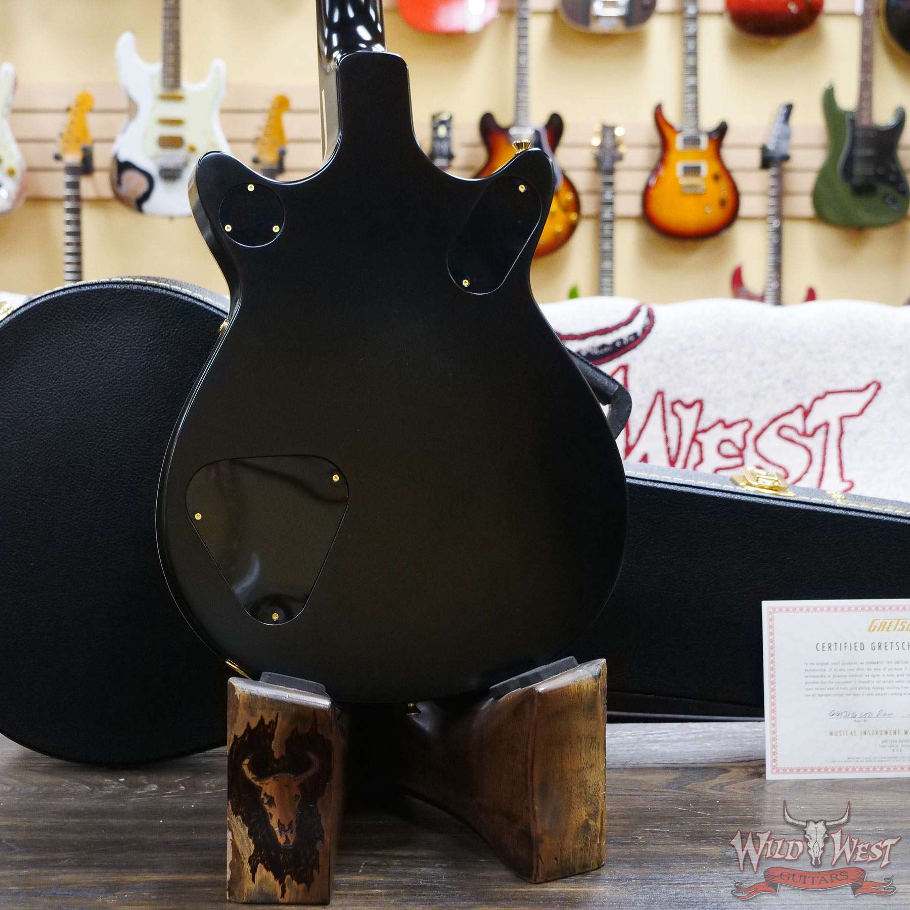 Built to rattle foundations in true Malcolm fashion, the G6131G-MY-RB Limited Malcolm Young Signature Jet also features a lightly aged finish, 12”-radius bound ebony fingerboard with 22 jumbo frets (plus zero fret), aged pearloid Neo-Classic™ thumbnail inlays, bone nut, harmonica-style Adjusto-Matic™ bridge with pinned ebony base, ‘60s Jet vibrato tailpiece, Schaller® die-cast tuners, black pickguard, G-arrow control knobs and aged gold hardware.