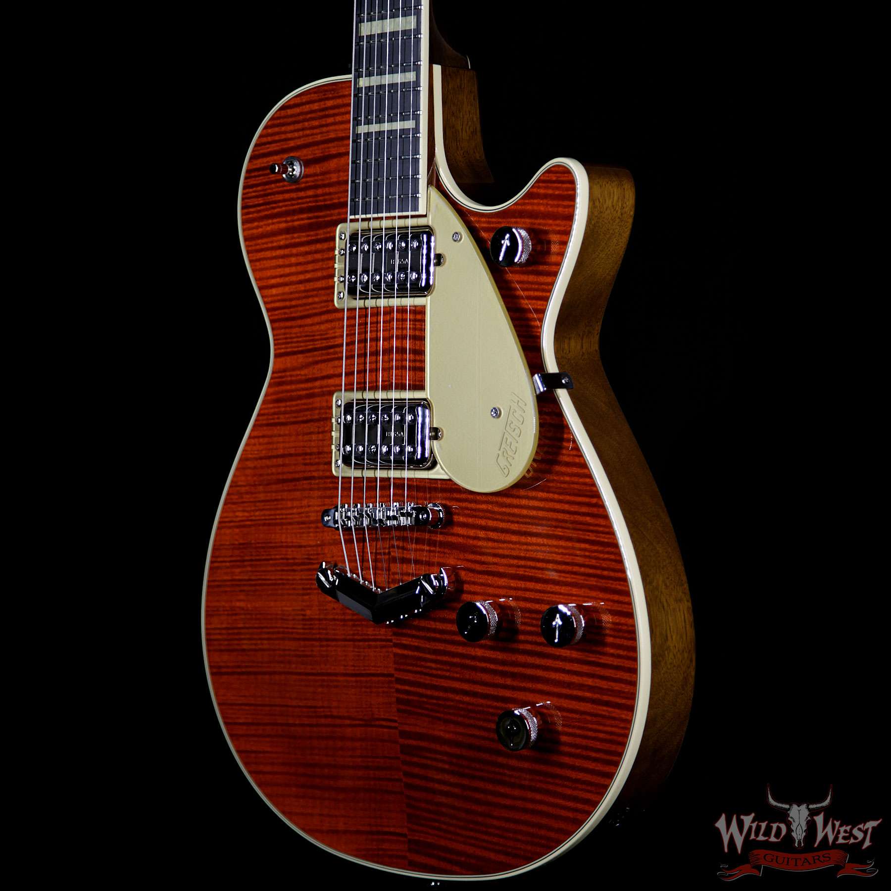 The all-new G6228FM Players Edition Jet™ BT Single-Cut with V-Stoptail and Flame Maple gives you powerful overdrive and shimmering cleans at the stomp of a switch.