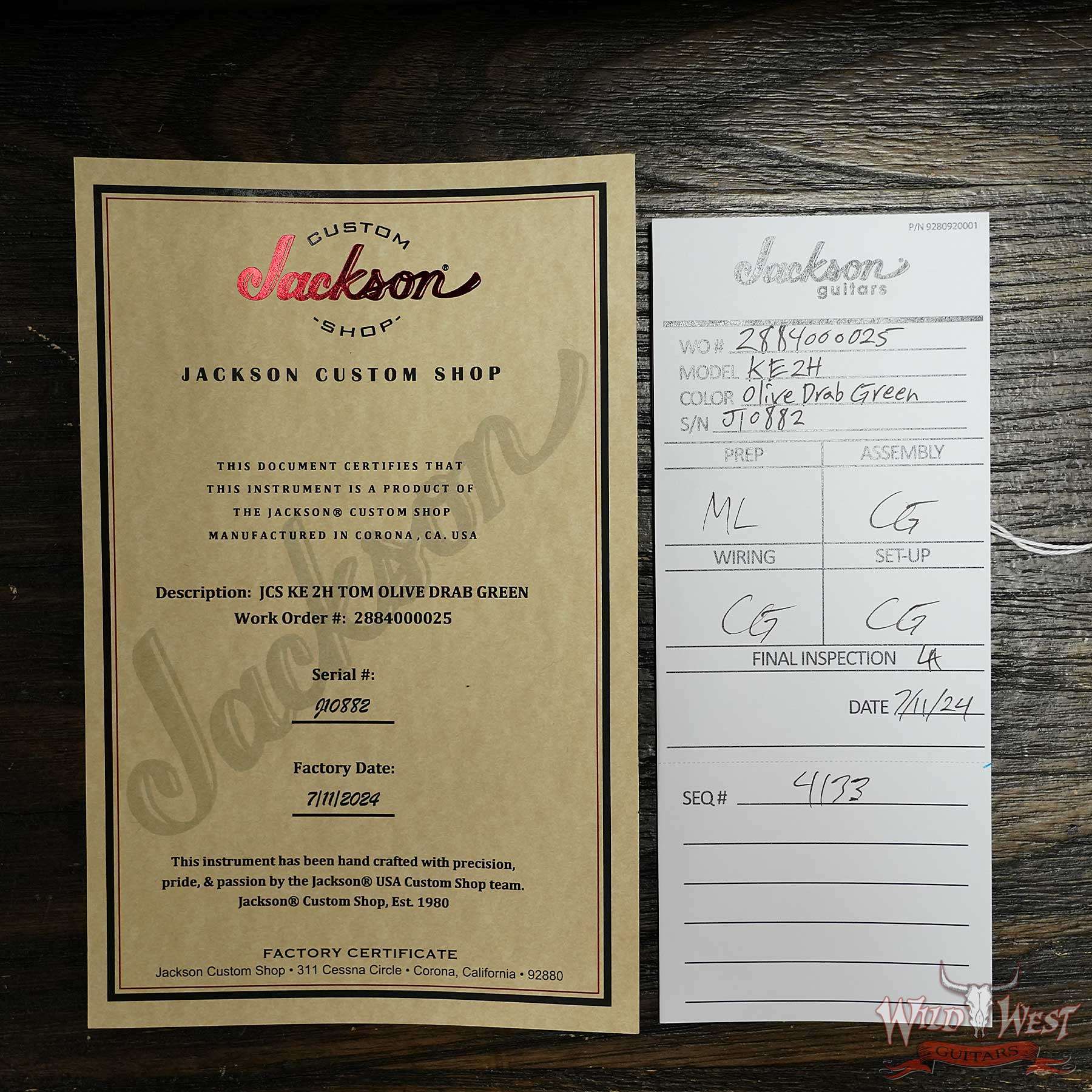 Jackson Custom Shop Limited Edition Kelly KE2H TOM Adjust-o-Matic Bridge Bare Knuckle Pickups Olive Drab Green 8.00 LBS