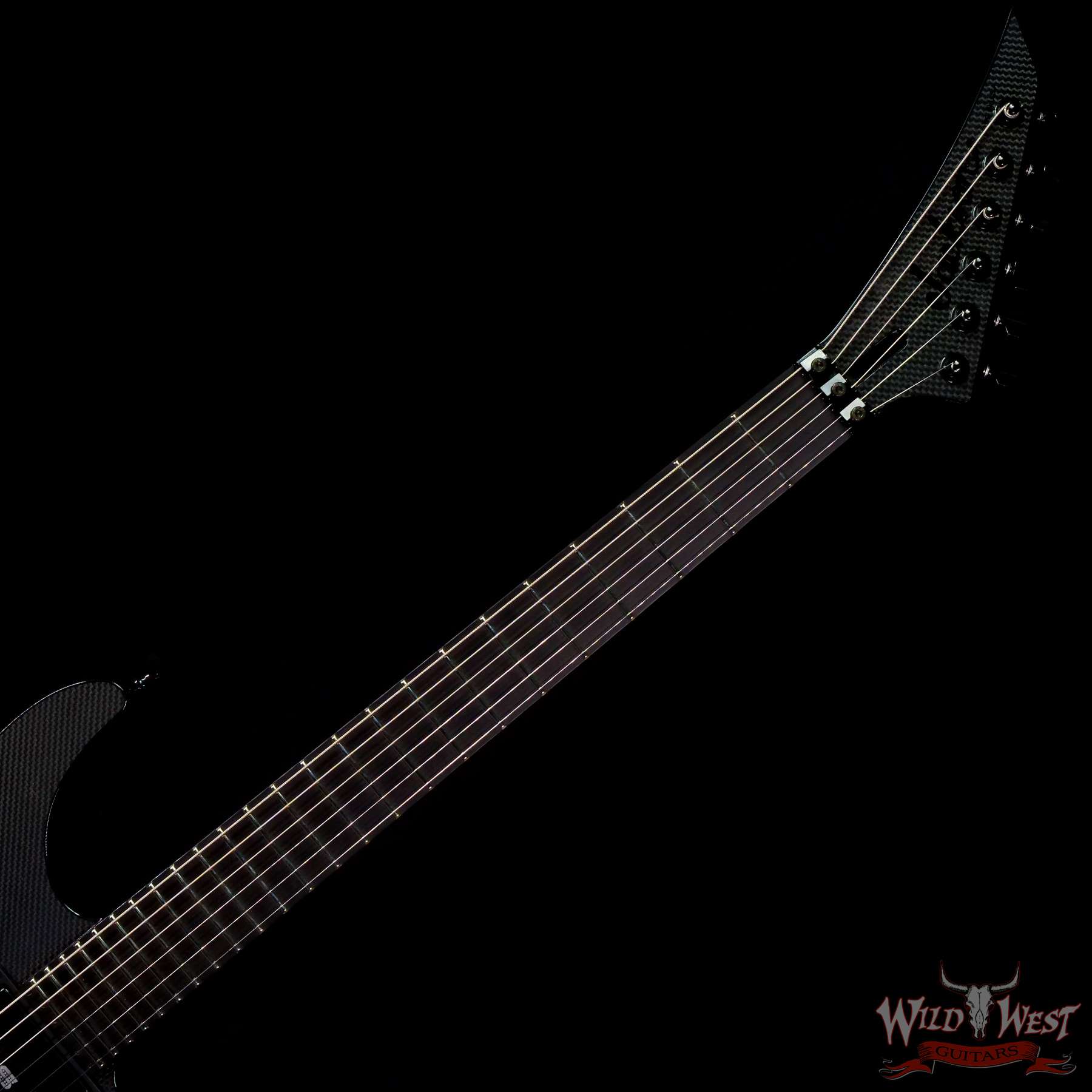 The USA Signature Limited Edition Mick Thomson Carbon Fiber Soloist is available in Black with a matching reverse Jackson pointed headstock and black hardware.