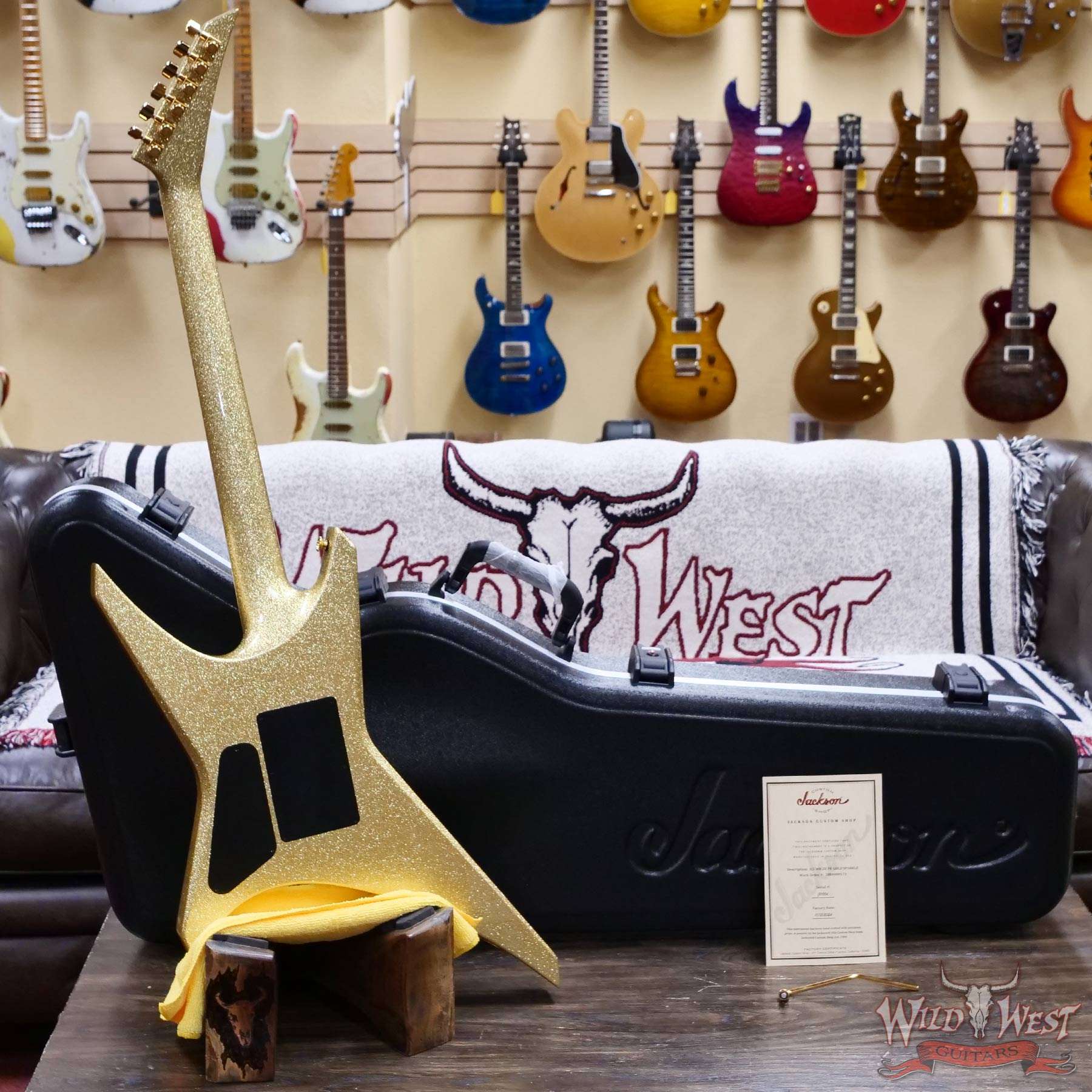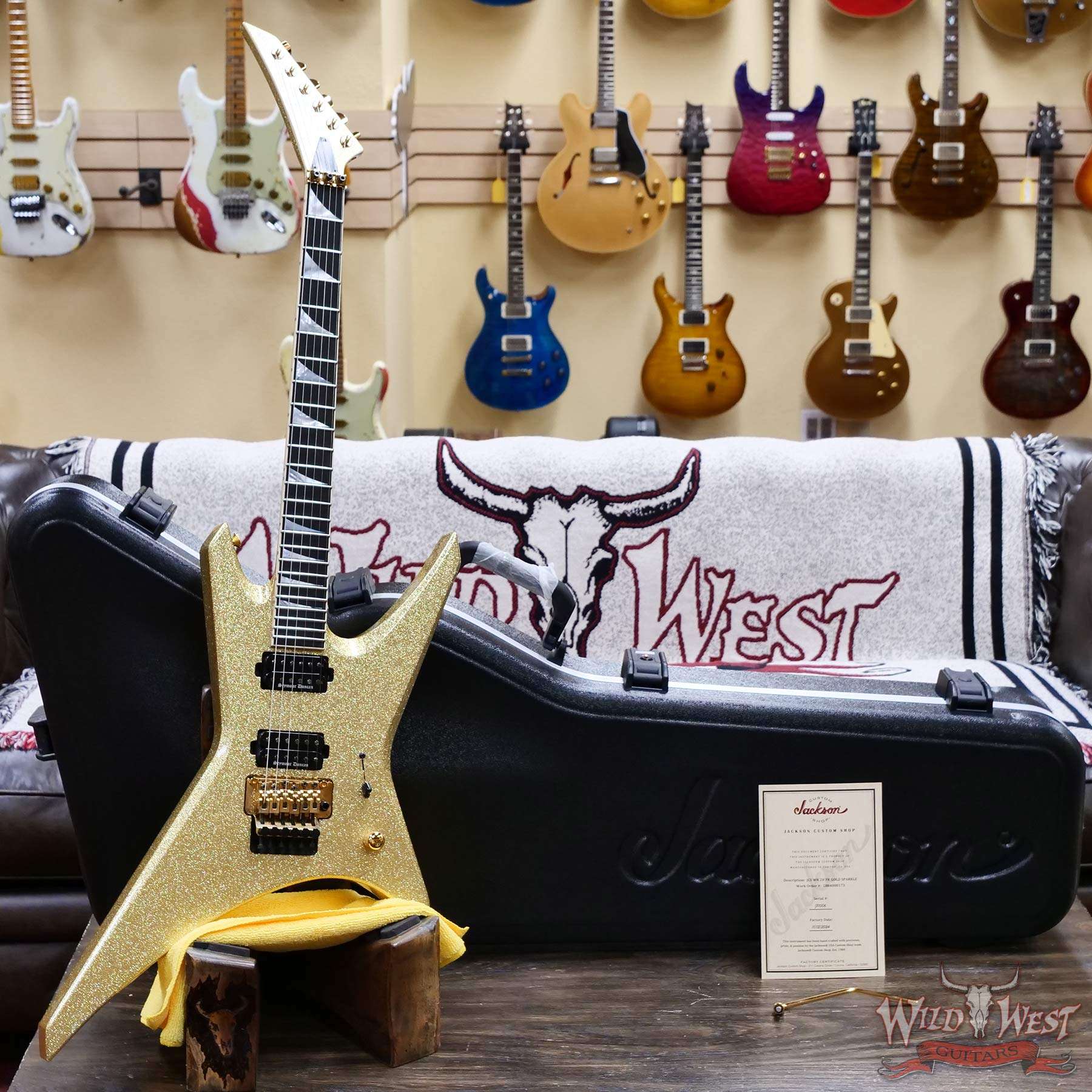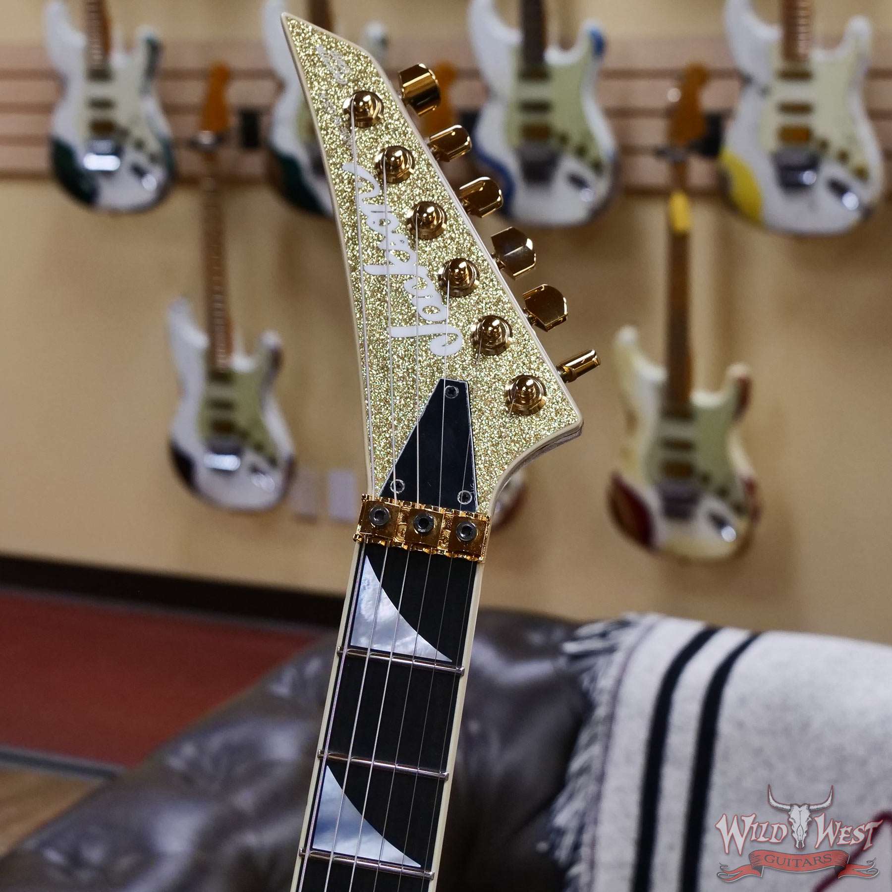 Jackson Custom Shop Warrior Dual Humbucker Floyd Rose Ebony Fingerboard NOS Gold Sparkle with Gold Hardware 8.10 LBS