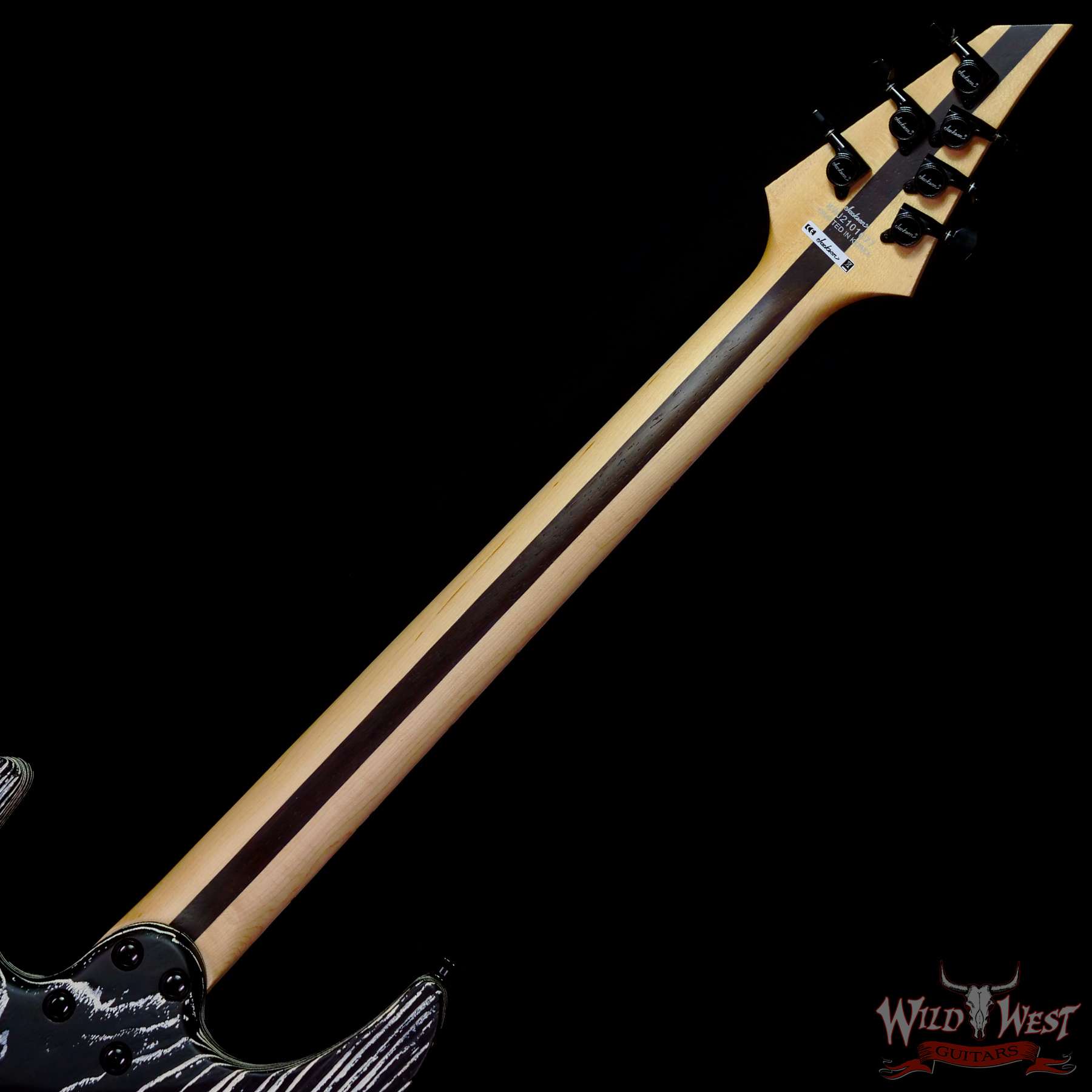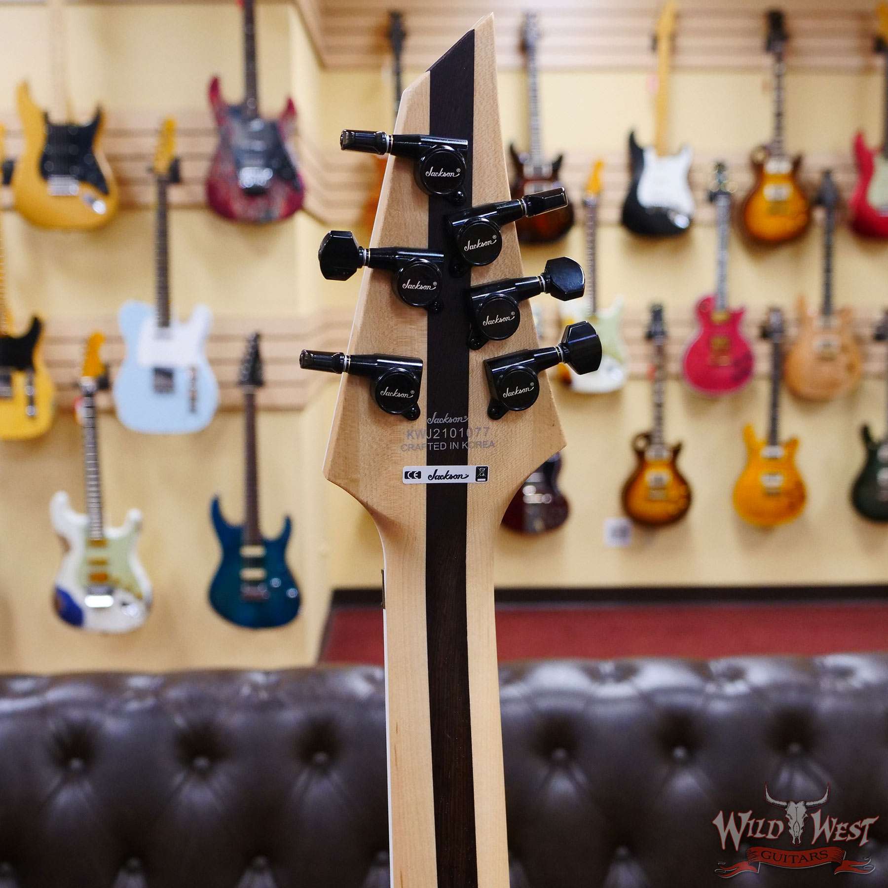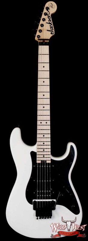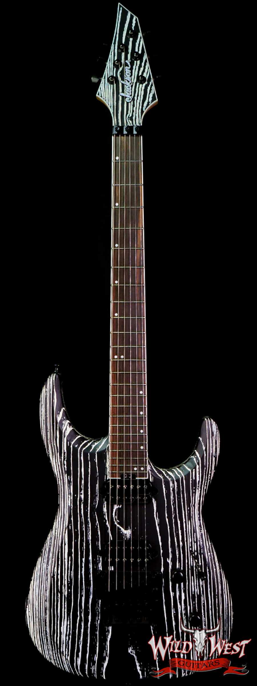 This modernized guitar also boasts unparalleled style with a sandblasted surface that highlights the ash wood grain and distinctive Baked White finish, complete with a reverse 3×3 AT-1 matching headstock with white Jackson badge logo and black hardware.