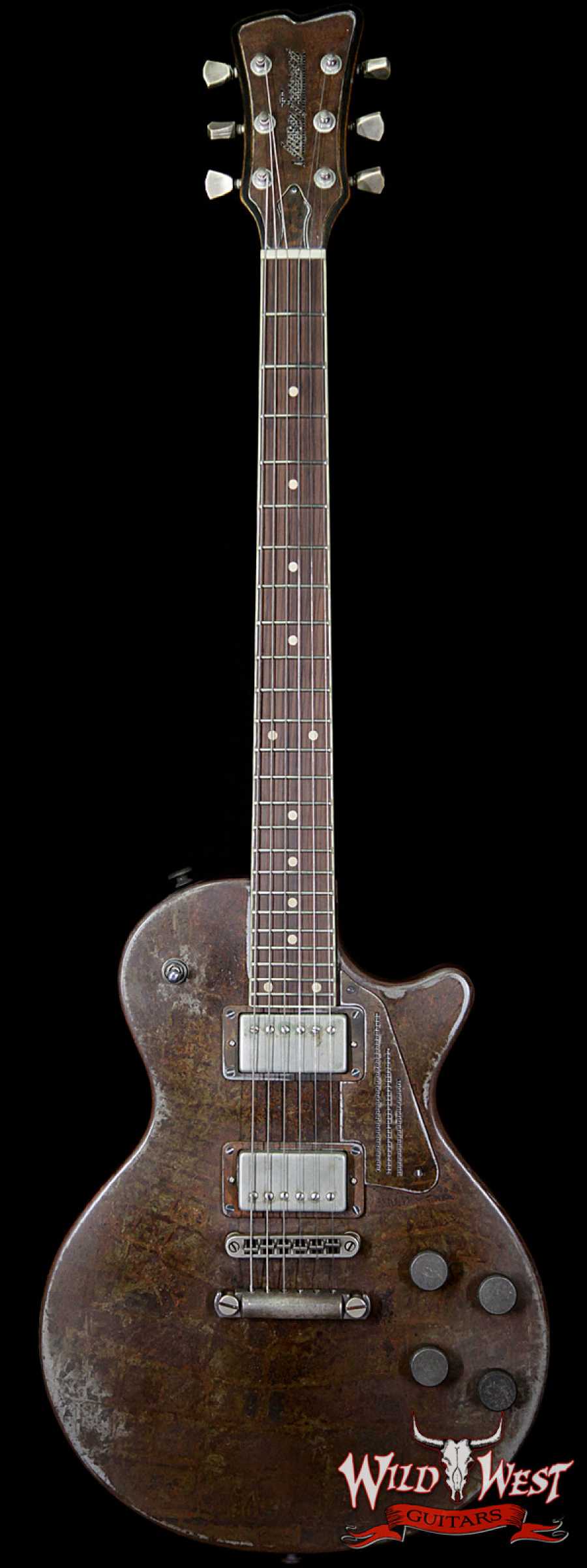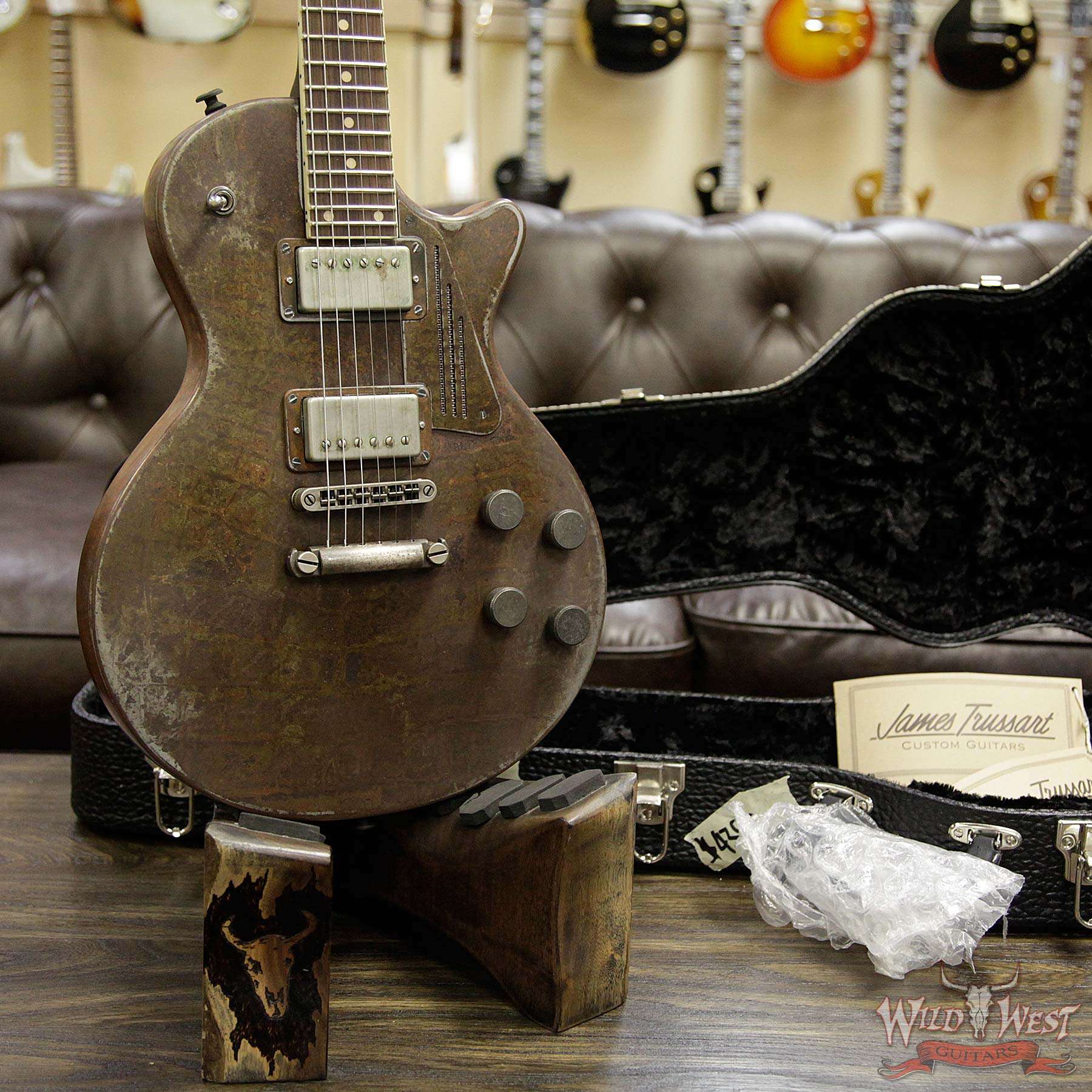 The SteelDeville features our exclusive hollow steel body and custom metal appointments, like the recessed steel head cap that is beautiful to look at and functional, by adding mass to the headstock it increases sustain. The steel body while also being the perfect medium to display the beautiful Trussart custom finishes and engravings also has tonal advantages. The Trussart SteelDeville tone is a uniquely classic, thick and resonant tone combined with an edge that cuts through. The construction of these instruments is only half of the story, the other half is the finish, every instrument comes with a history and a slight element of neglect, of decay, so it has a personality of it’s own.