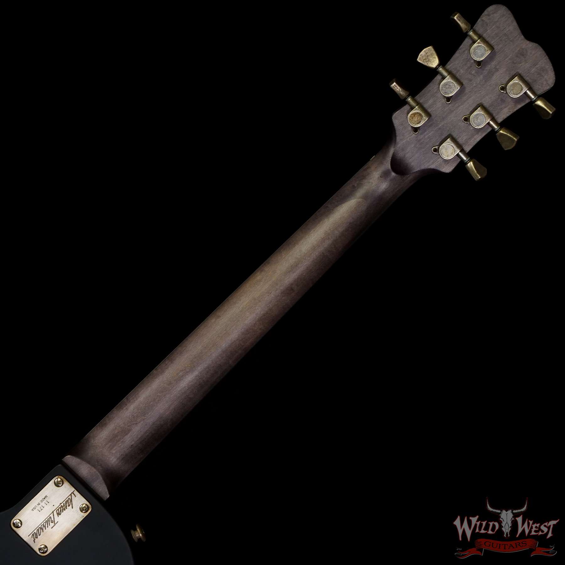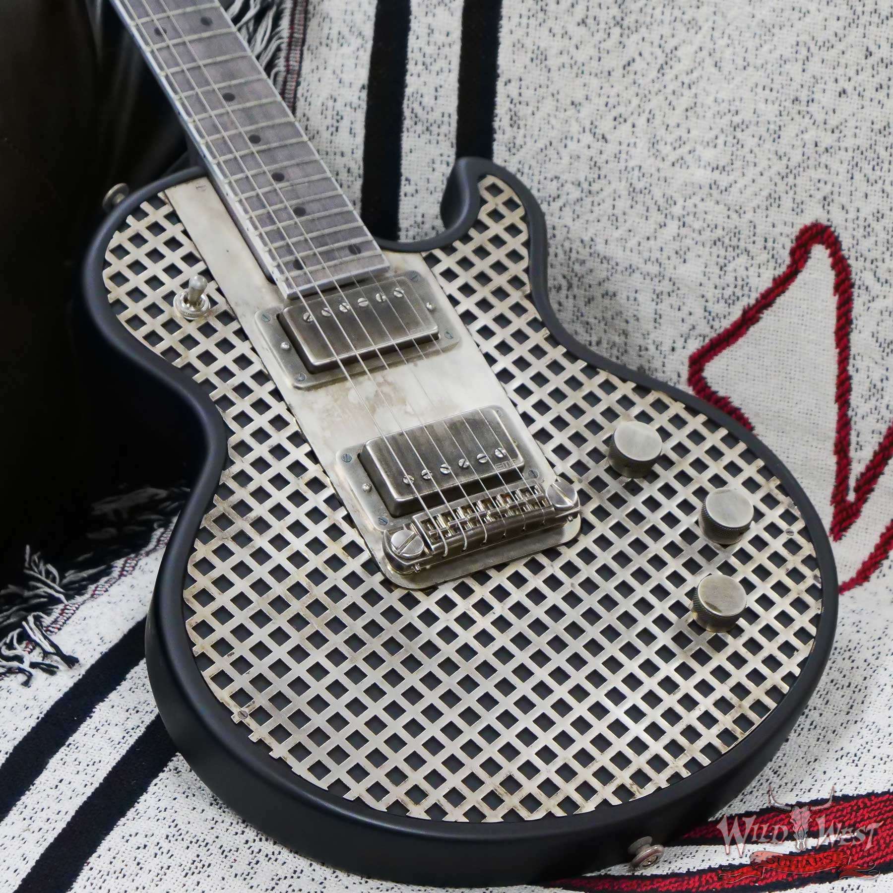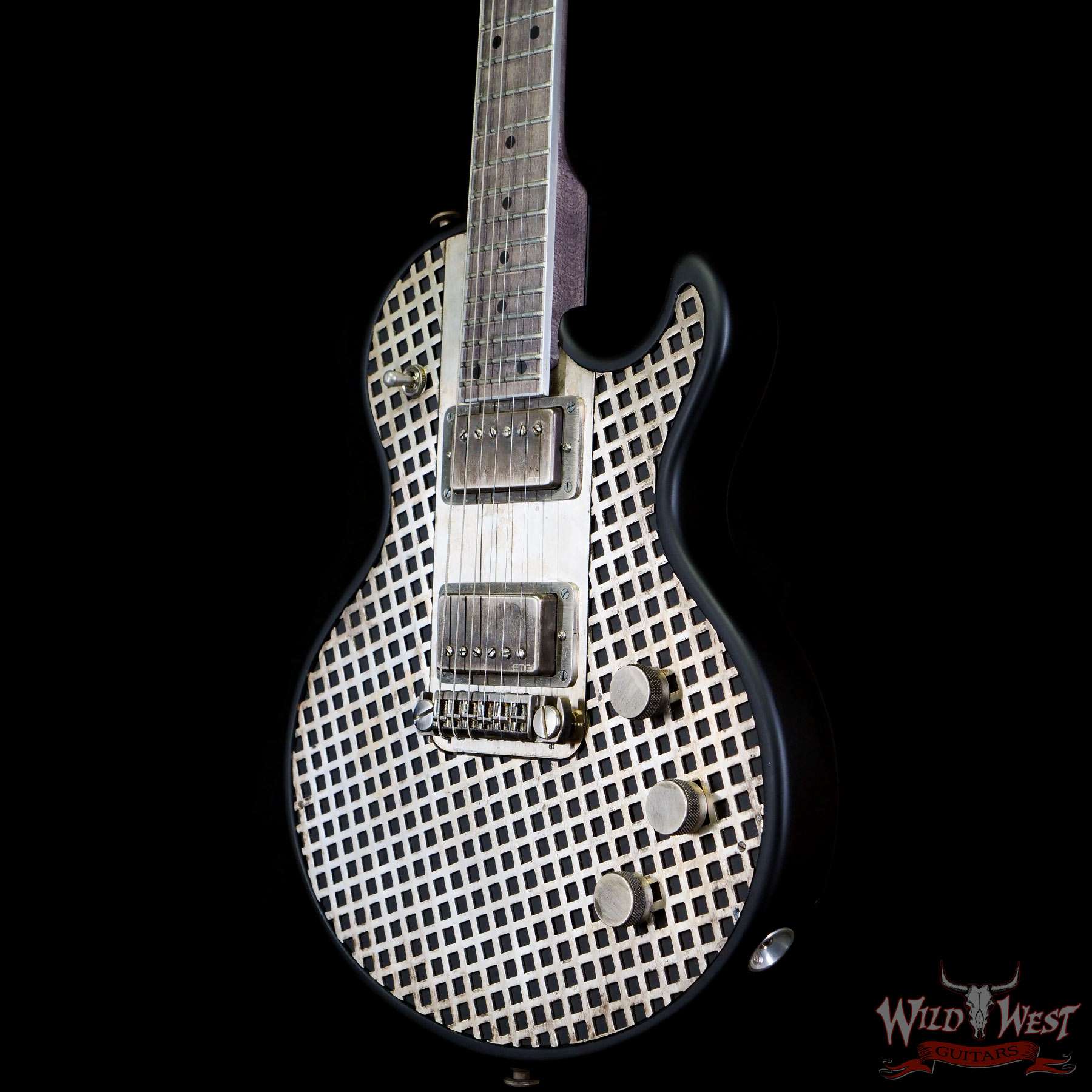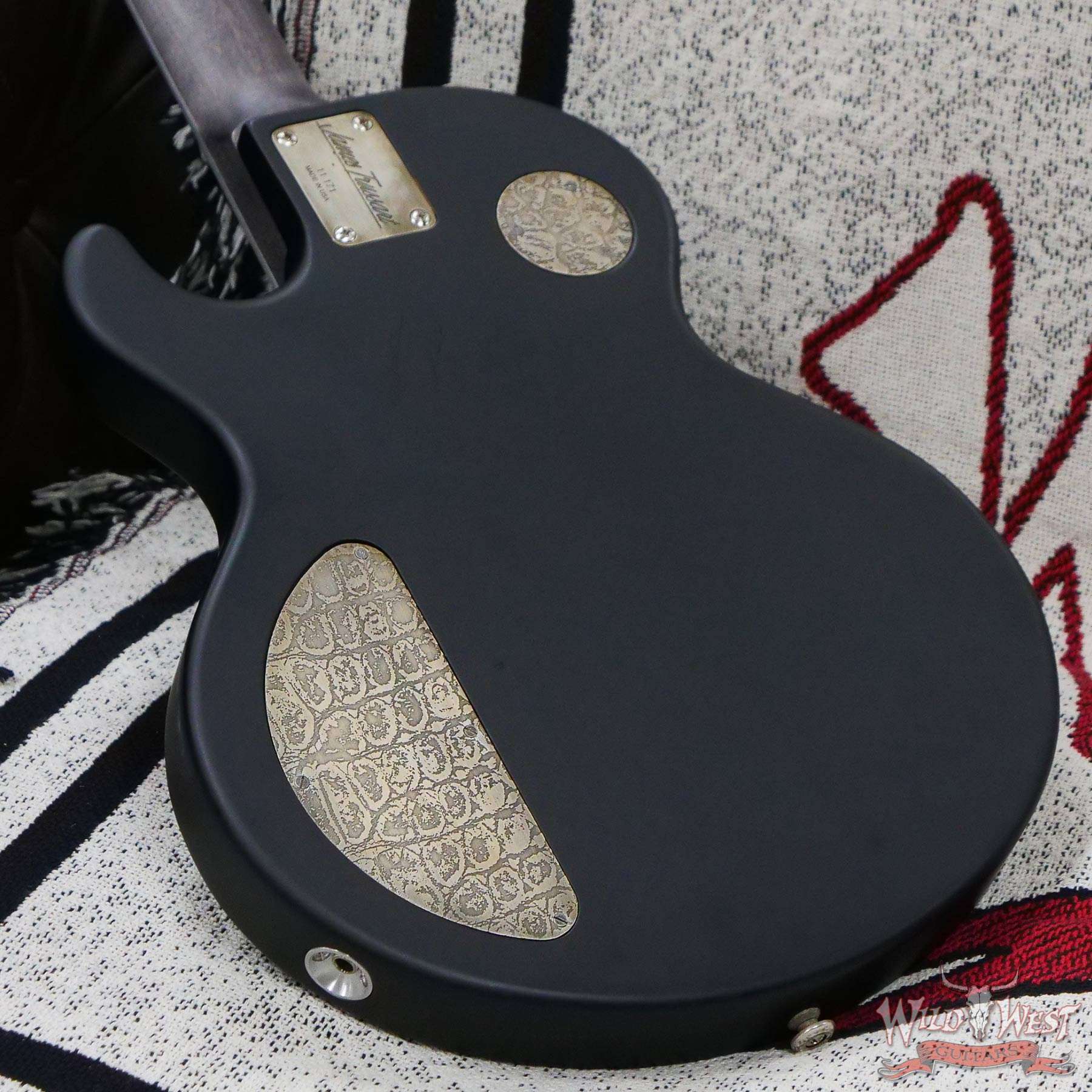 Serial #11171 Antique Silver Caged SteelTop Caged Front Alder Body with Satin Black Finish Gator Engraved Back Plate 59 Grey Stained Maple Neck with a Maple Fingerboard Aluminum Binding