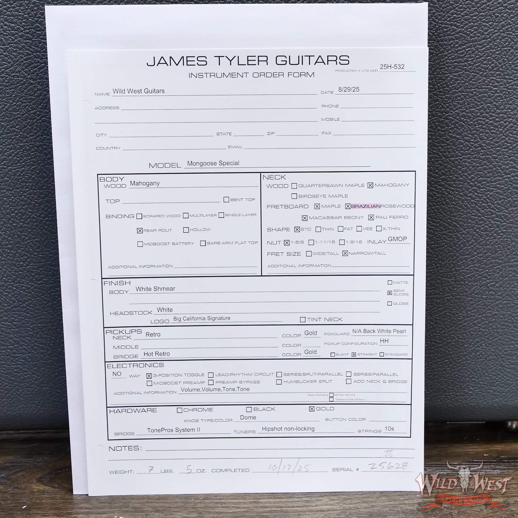 James Tyler USA Mongoose Special Brazilian Rosewood Fingerboard White Shmear 7.45 LBS