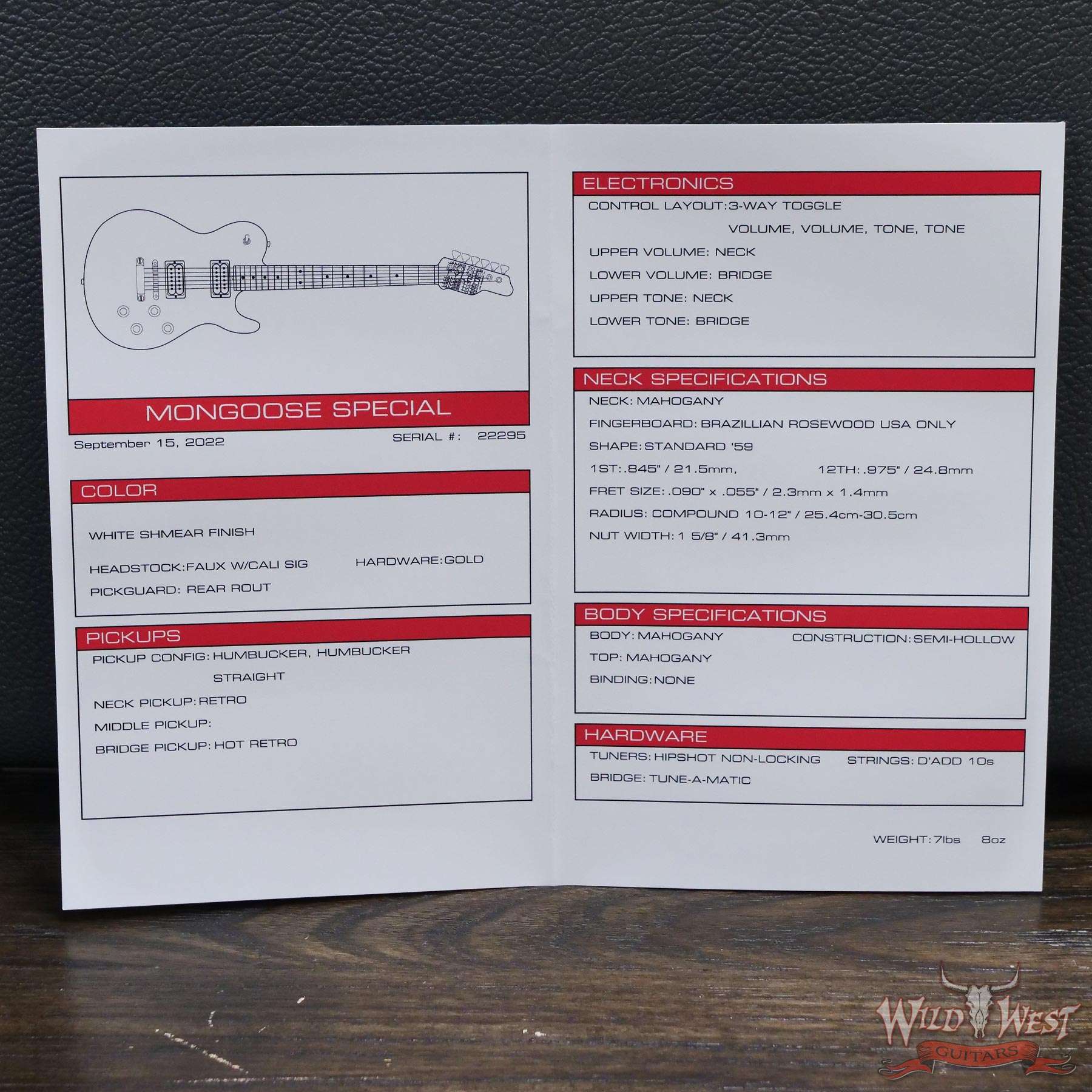 James Tyler USA Mongoose Special Brazilian Rosewood Fingerboard White Shmear 7.45 LBS