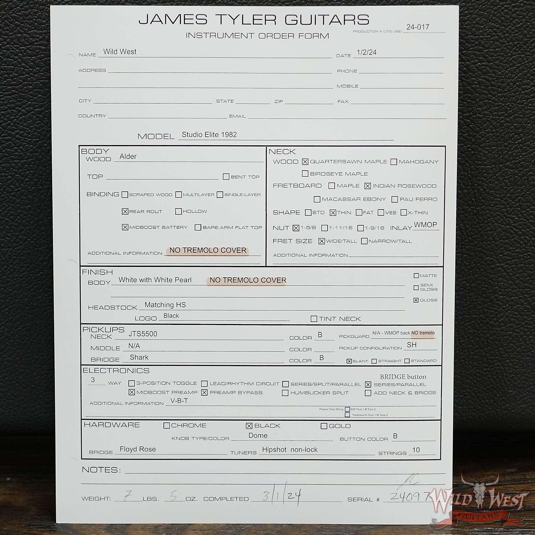 James Tyler USA Studio Elite “1982” Floyd Rose Maple Neck Rosewood Fingerboard White Pearl 7.30 LBS