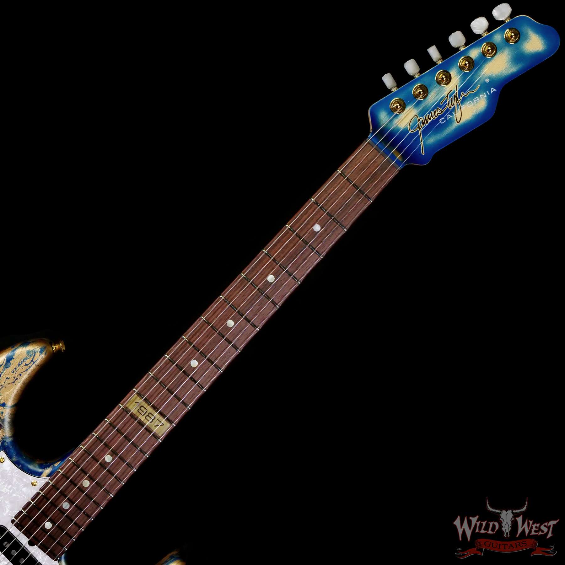 On 2024 NAMM, James Tyler Guitars announced the Studio Elite 1987. The design was a idea of Sarah Tyler (James Tyler’s Daughter) to celebrate the 35th anniversary of the Studio Elite. The official birth year for the Studio Elite with Jim’s headstock design was 1987. It was also the year that Jim went full time building only and no more mods and repairs. So in 2022 it was 35 years old. So to celebrate, everything on the guitar is California and the sounds are a throwback to those early Tylers which were all Mamywo (Jelutong) and had lead/rhythm circuits in them with midboost preamps. Also, to keep it as modern as possible too, we are using Stingray 500 with the new cancelling coil circuit.
