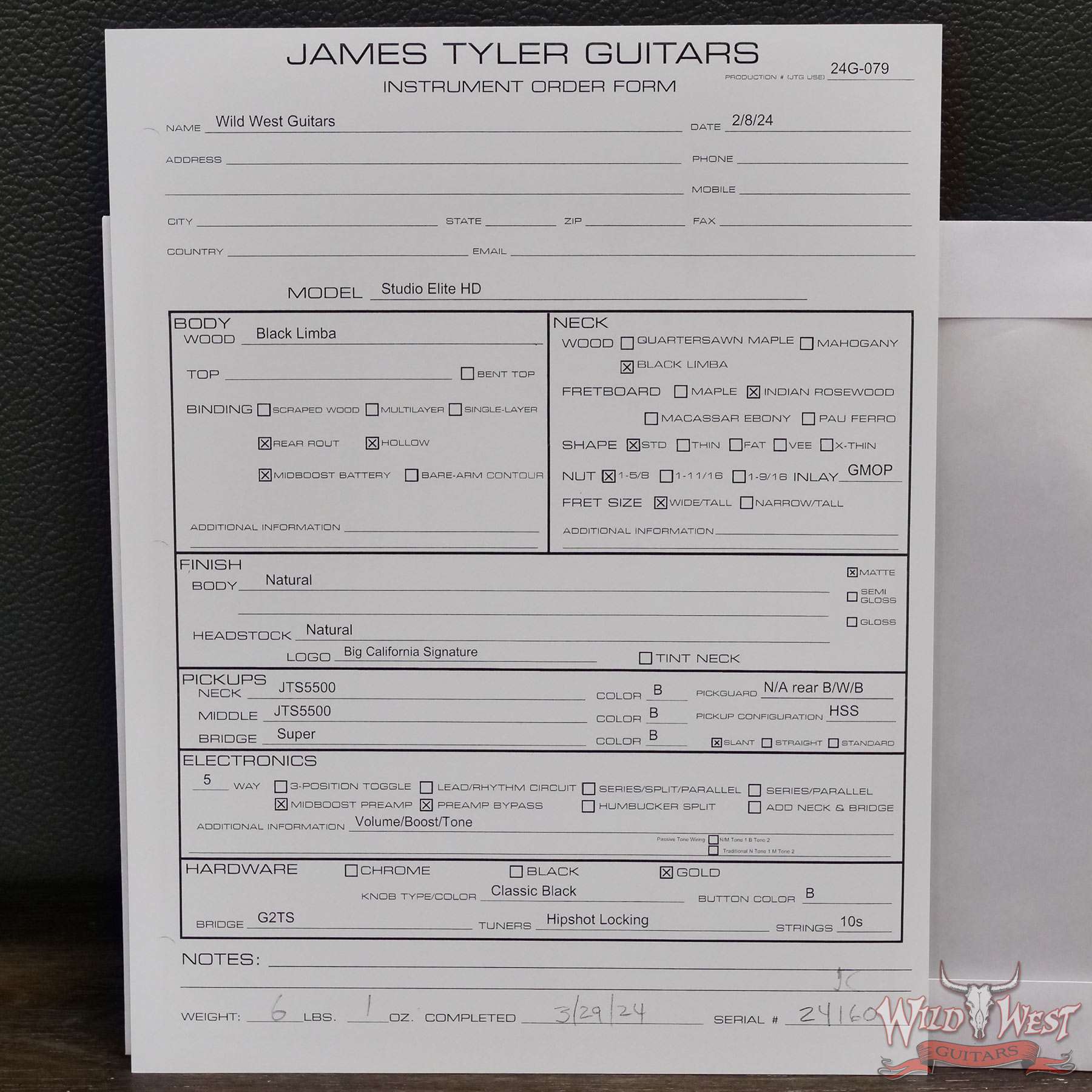 James Tyler USA Studio Elite HD Black Limba Body & Neck Matte Natural 6.05 LBS