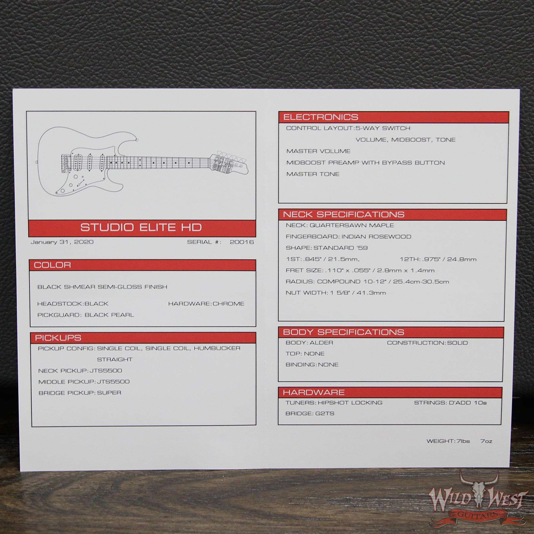 James Tyler USA Studio Elite HD HSS Rosewood Fingerboard Black Shmear with Midboost Preamp