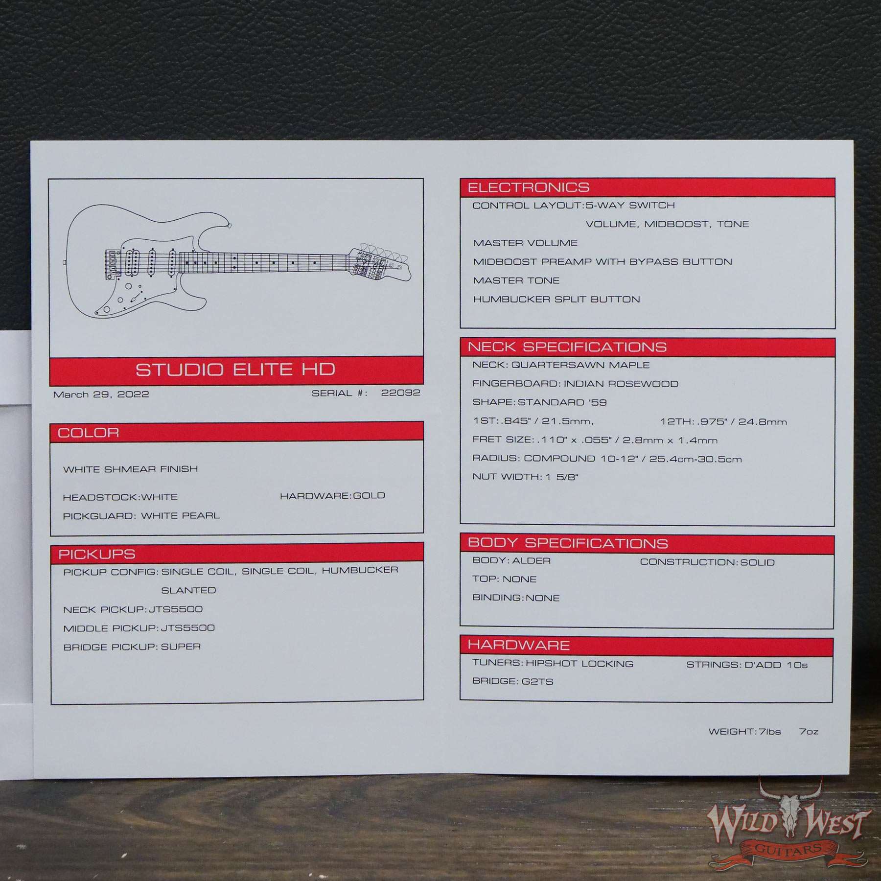 James Tyler USA Studio Elite HD Slanted Pickups Rosewood Fingerboard Midboost Preamp Humbucker Split White Shmear