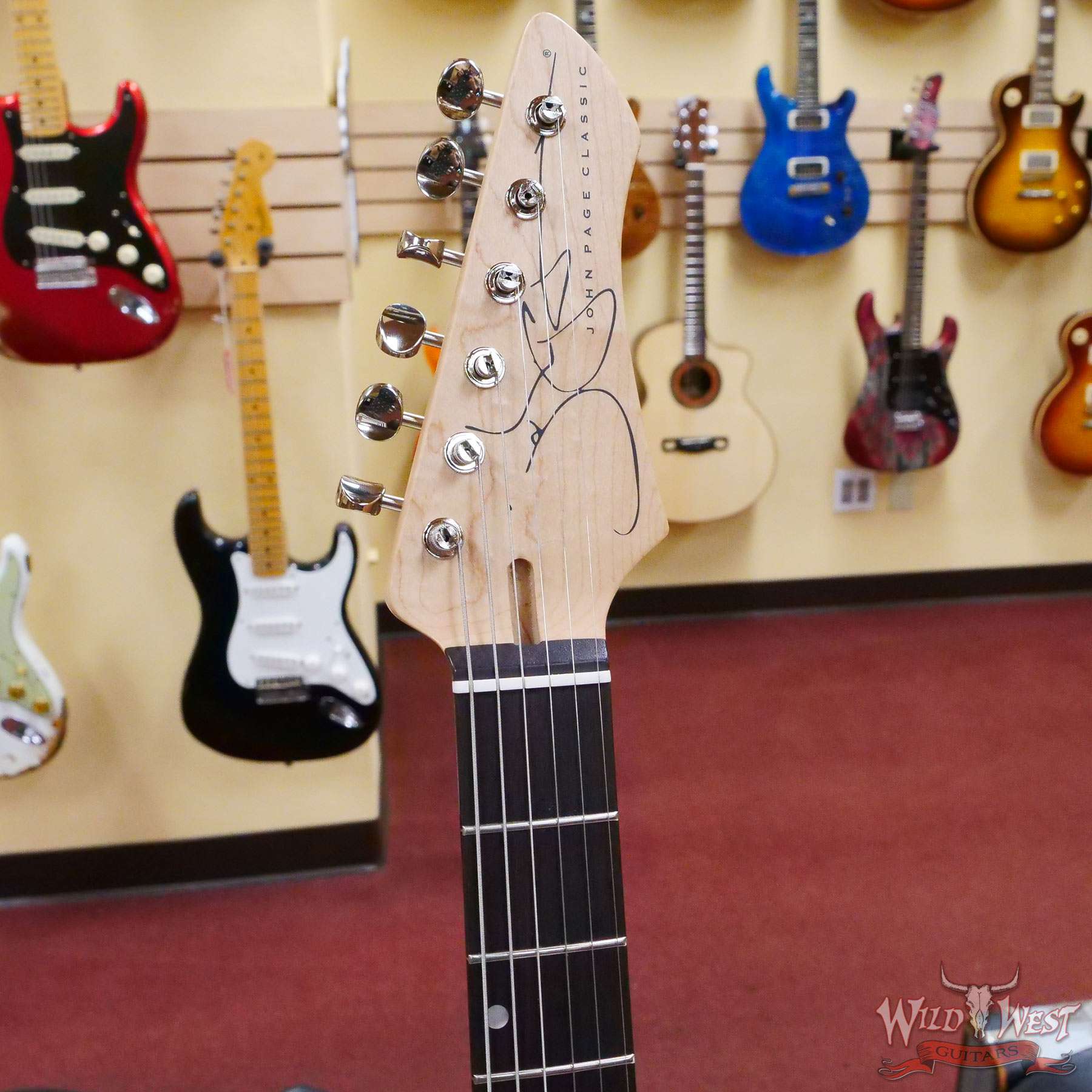 Soon, my fiery passion for guitars, which a few years earlier had burned out, started to smolder again. In mid 2006 I sat down at my drawing table and designed a new guitar… the P-1. It was a combination of all the things I had wanted to do in prior years but hadn’t gotten to, and since it was “my” guitar, I could design it my way, not Fender’s or any other companies way. That day John Page Guitars was born. Since then the line has grown to seven guitar models, two bass models, and a line of handmade wood and stainless steel bridge saddles… JP Woodtone. In addition to that, John Page Classic was born, finely crafted production versions of my hand-made designs, the brain-child of my business partner, founder and CEO of HRS Unlimited, Howard Swimmer. Oh, and I figured why not throw my art smack dab in the middle of the guitars too. So I have created, and am still creating, some very unique art guitars. Some by myself, and some in collaboration with some good artist friends… Pamelina Hovnatanian, John “CRASH” Matos, and Vince Carl.