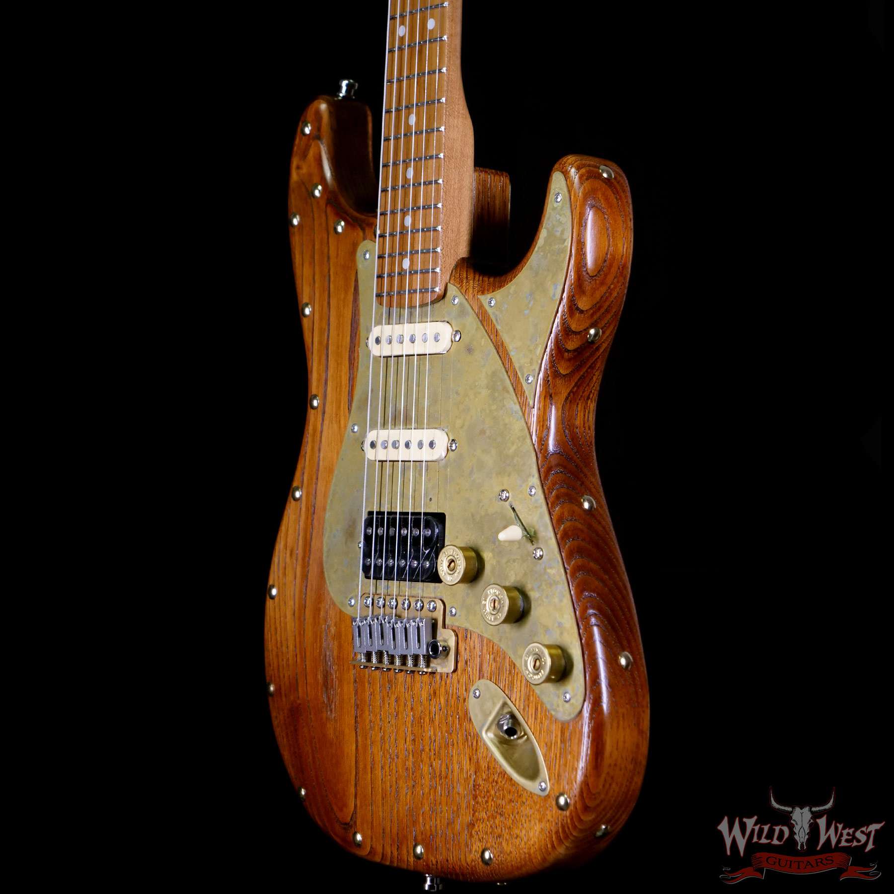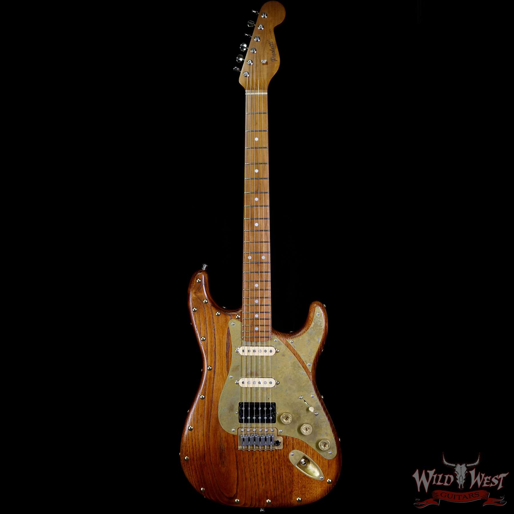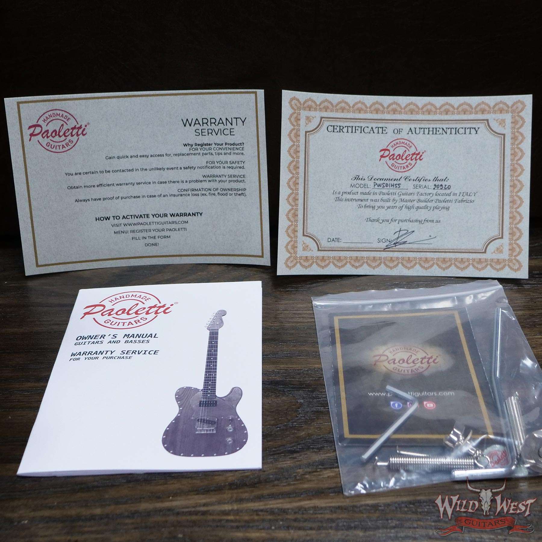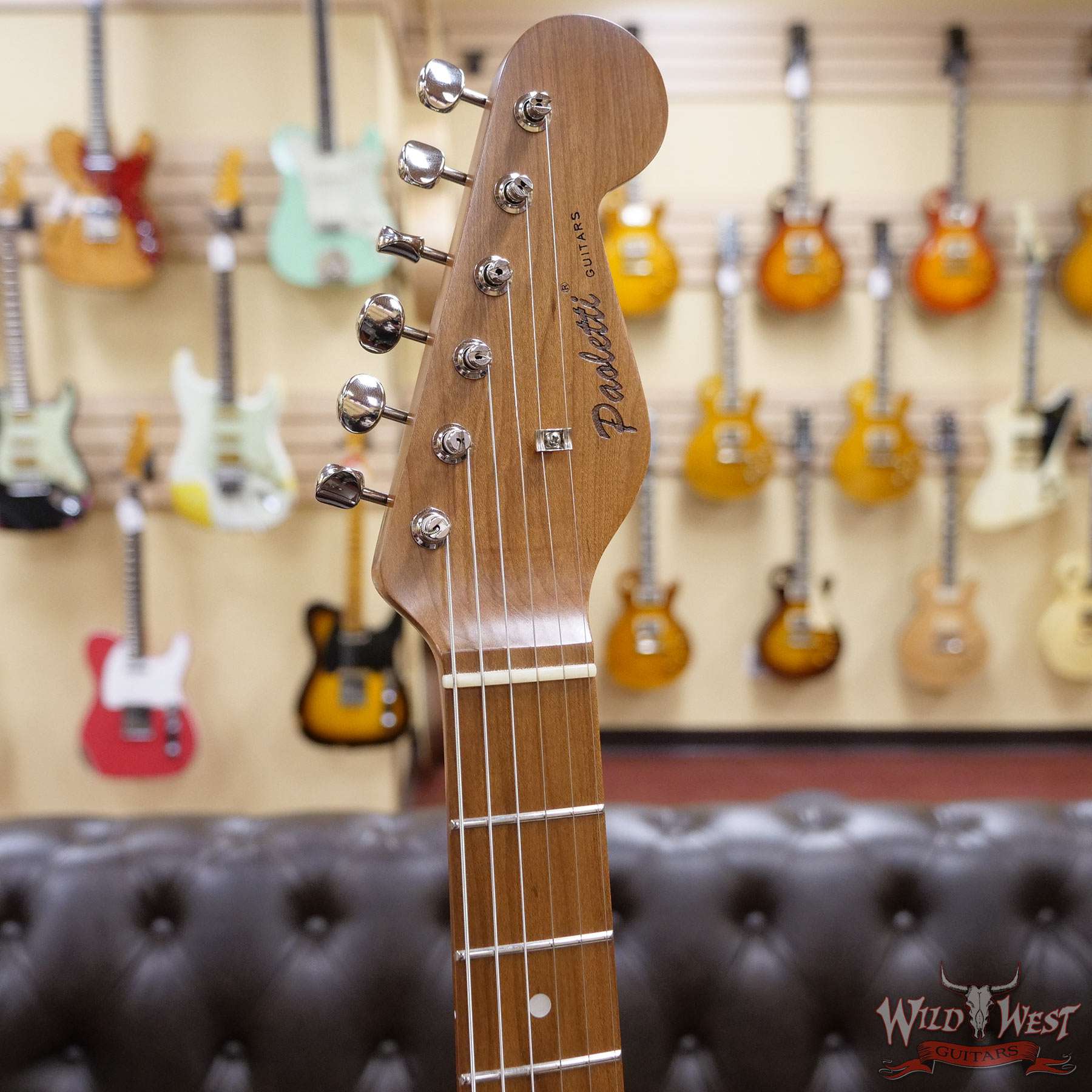 Here is a Paoletti® Stratopheric Wine Series which features their signature 130-150 year old reclaimed Chestnut body, Roasted Maple neck, Teak fretboard, Brass pick guard 2020 design, and Paoletti Strato 60s and Rock II humbucker.